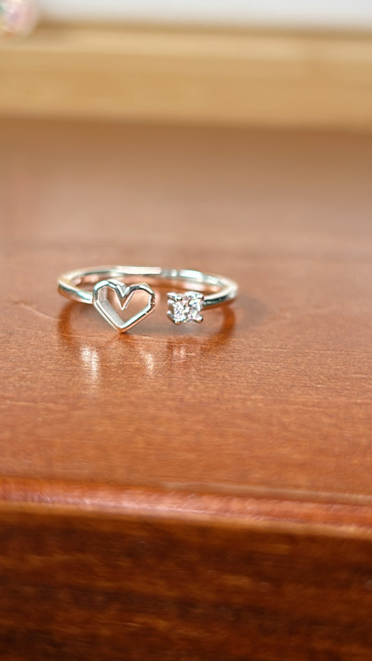 Anillo corazón y circonia