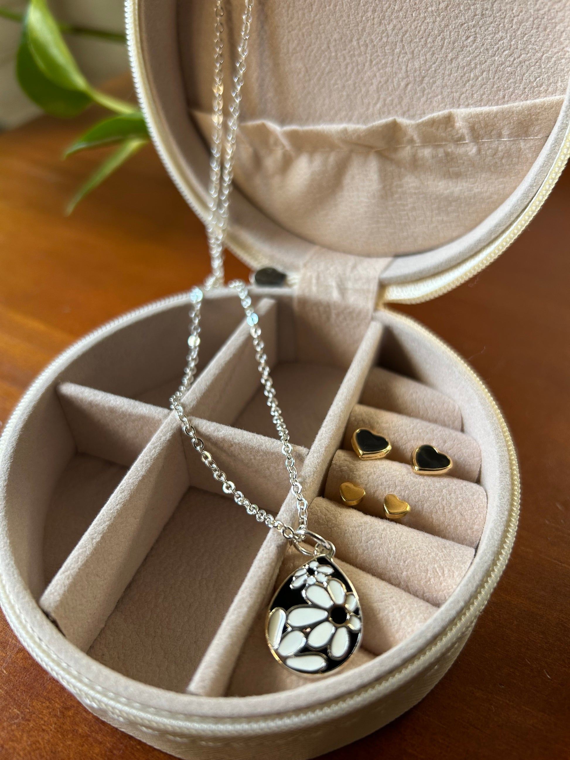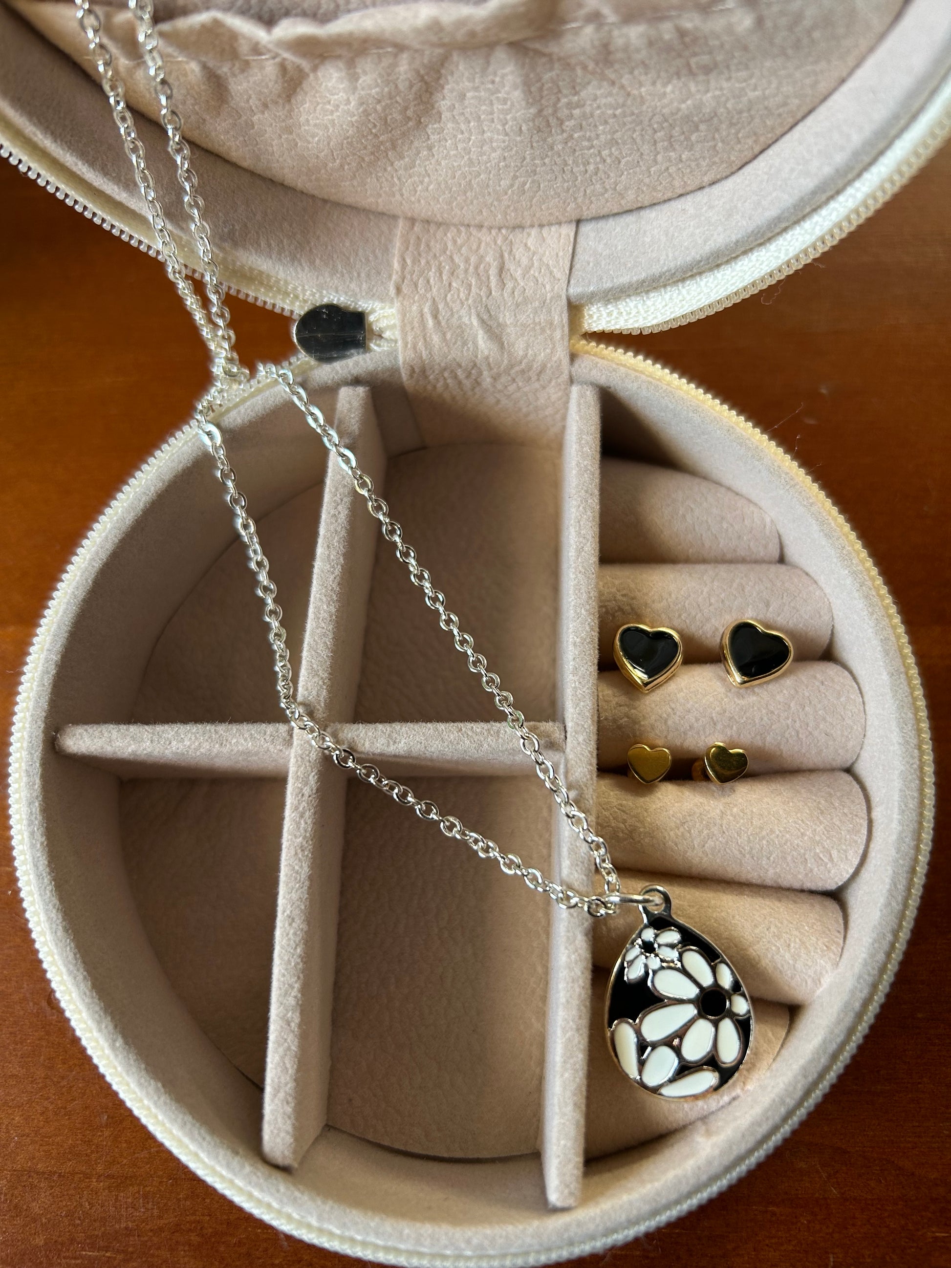 Alhajero con compartimientos varios , con las piezas que se muestran en fotos. En caso de que alguna de las piezas se encuentren agotadas se reemplazará por otras de similares características y mismo valor.