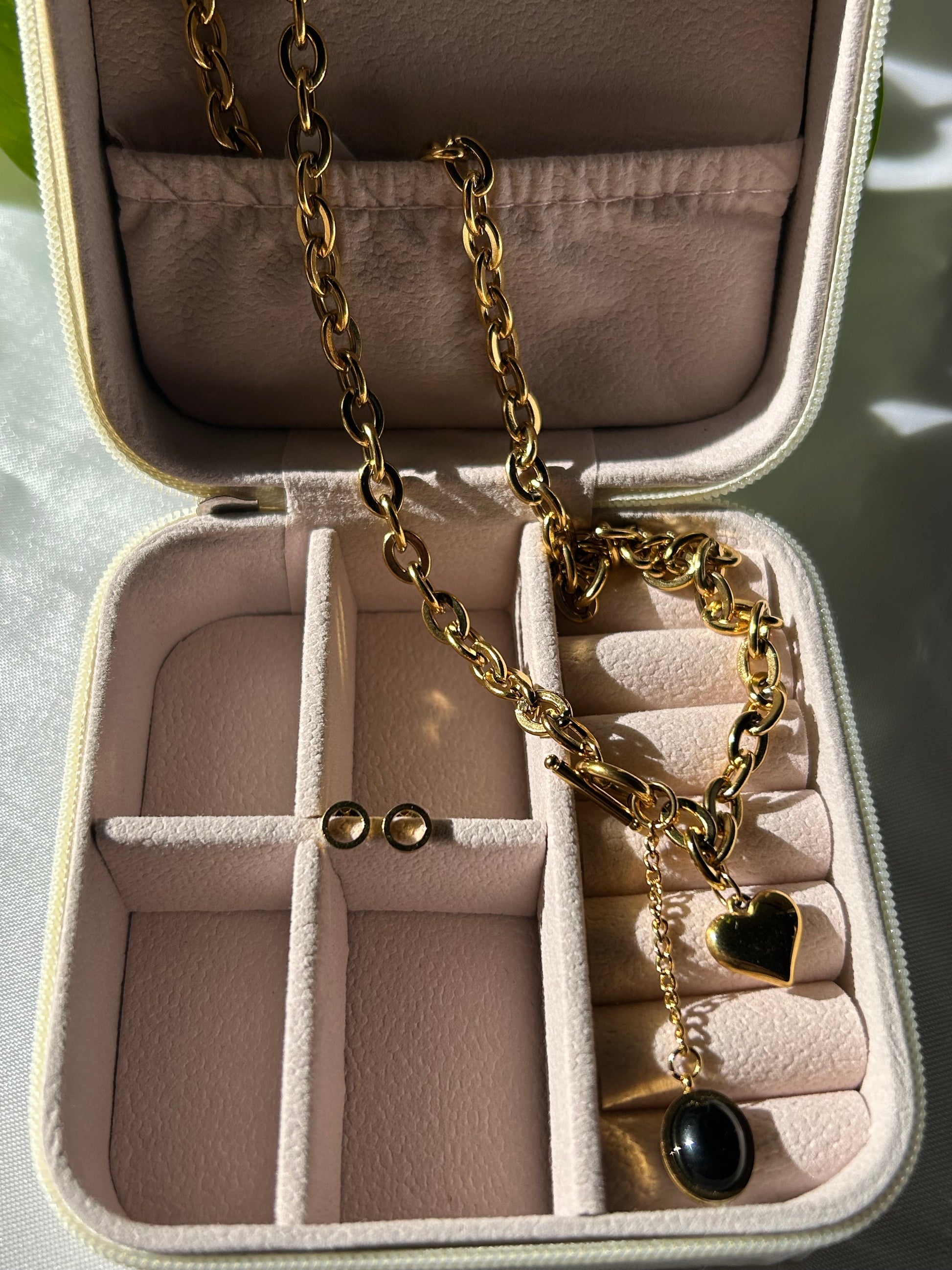 Alhajero con compartimientos varios , con las piezas que se muestran en fotos. En caso de que alguna de las piezas se encuentren agotadas se reemplazará por otras de similares características y mismo valor