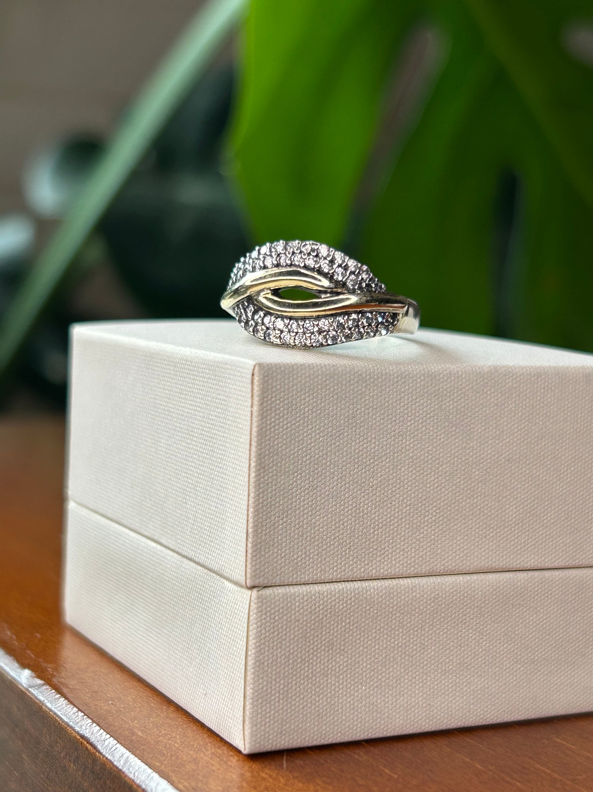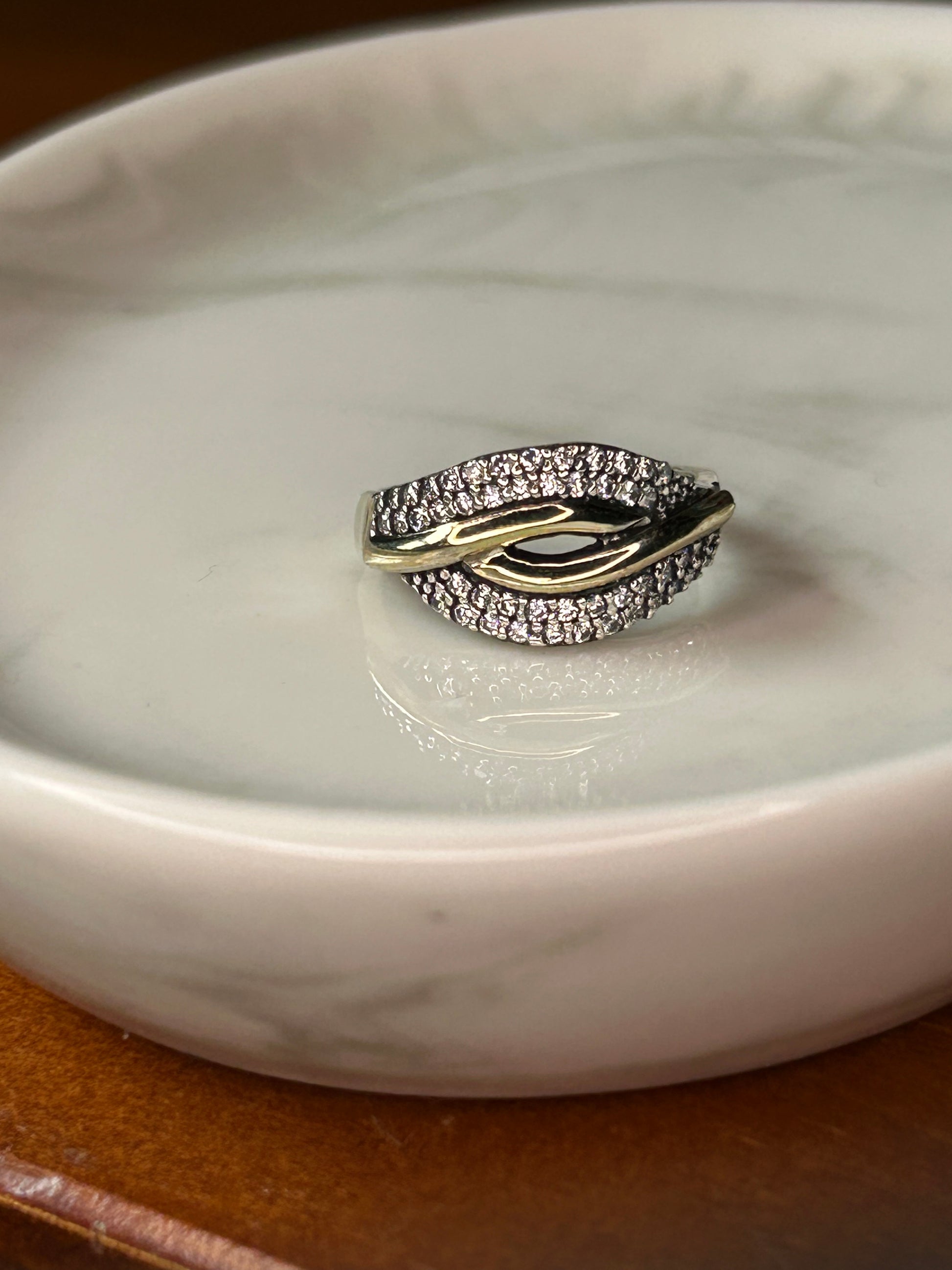 Anillo en plata 925 y double de oro con doble fila de circonias. 17mm de diámetro interno