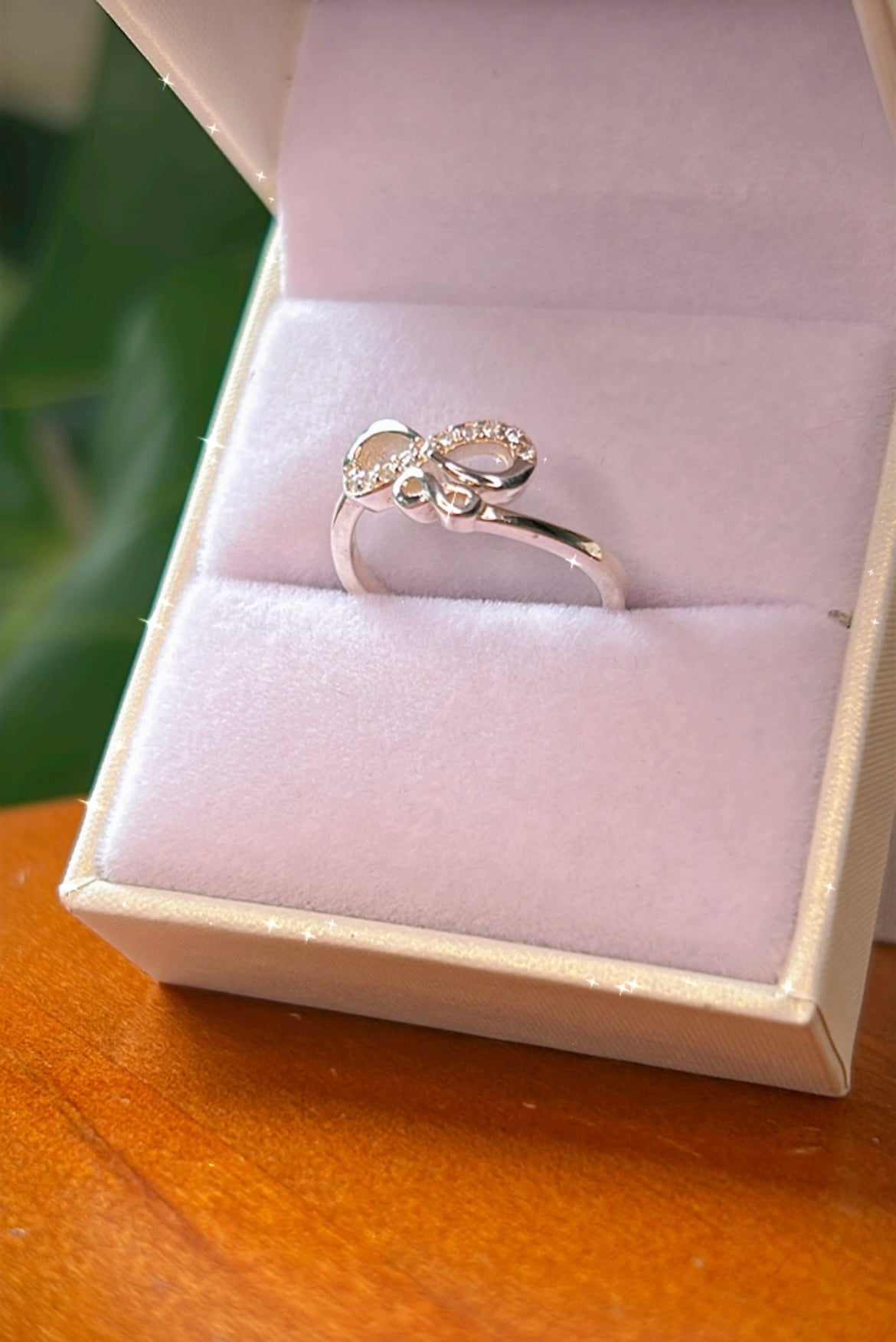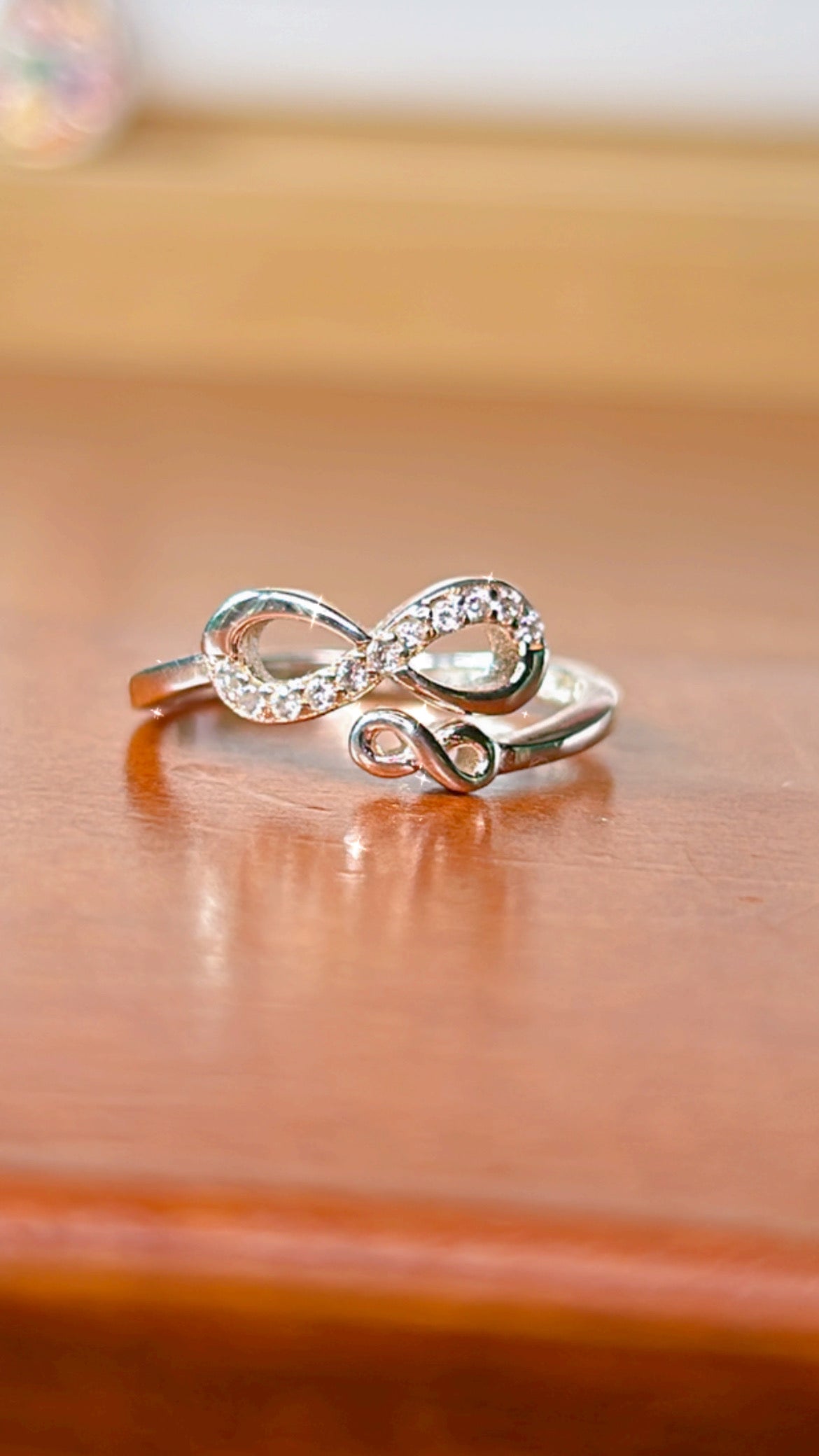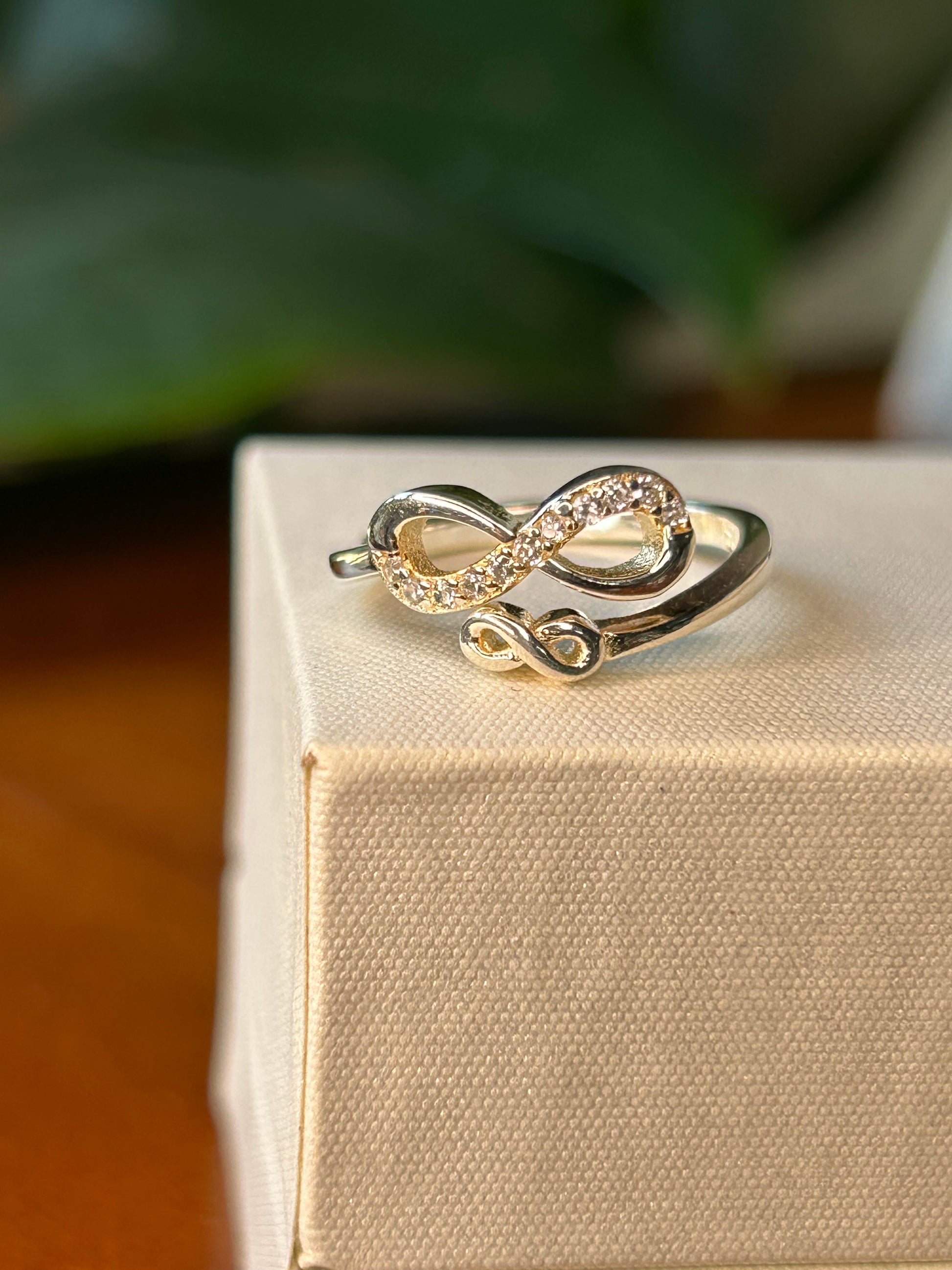 Anillo semi ajustable doble infinito con banda de circonias y doublé de oro