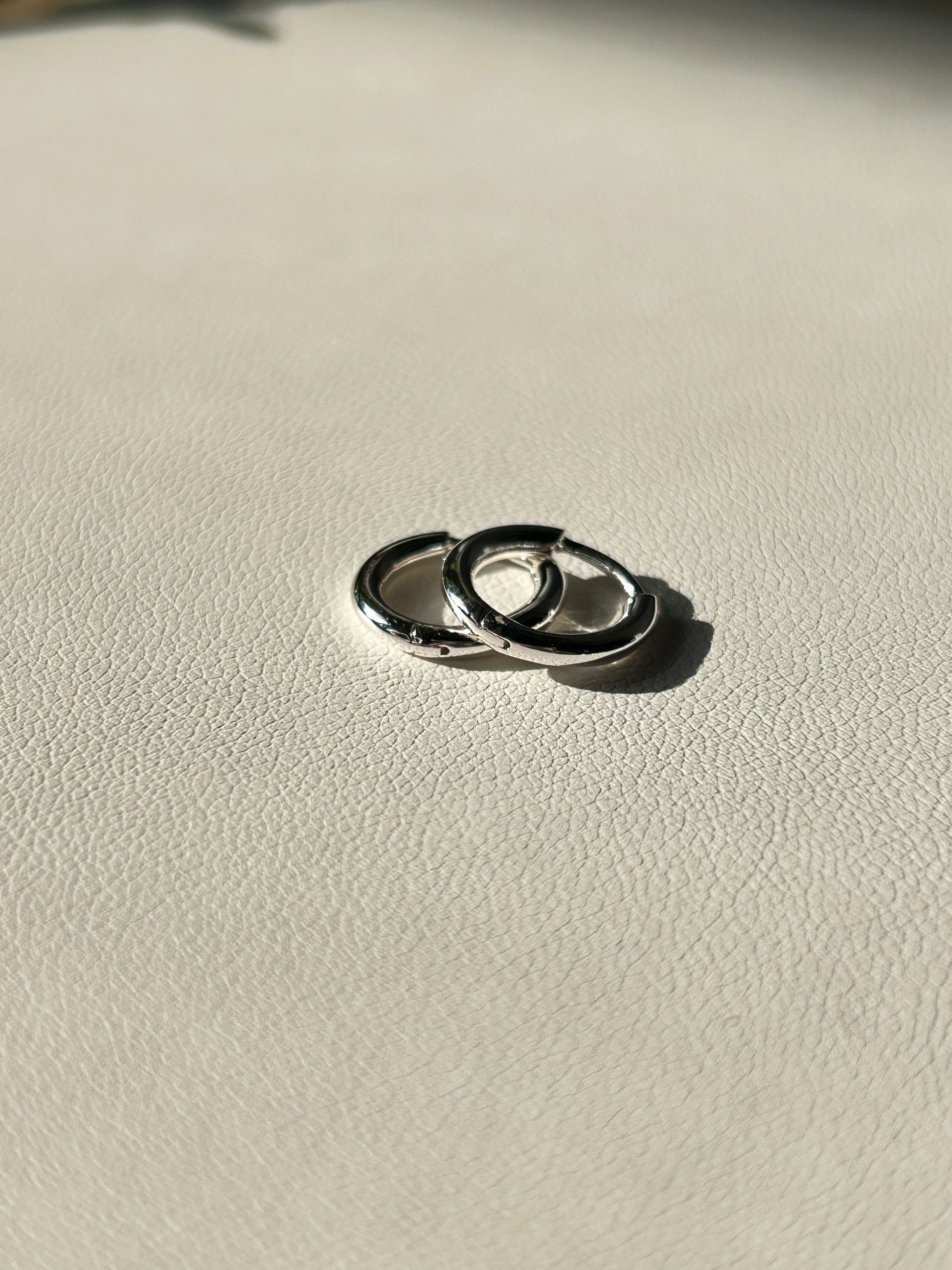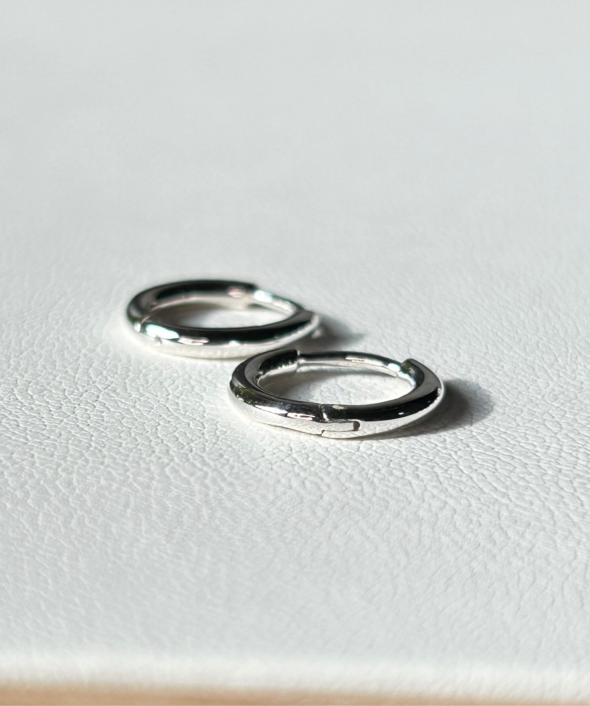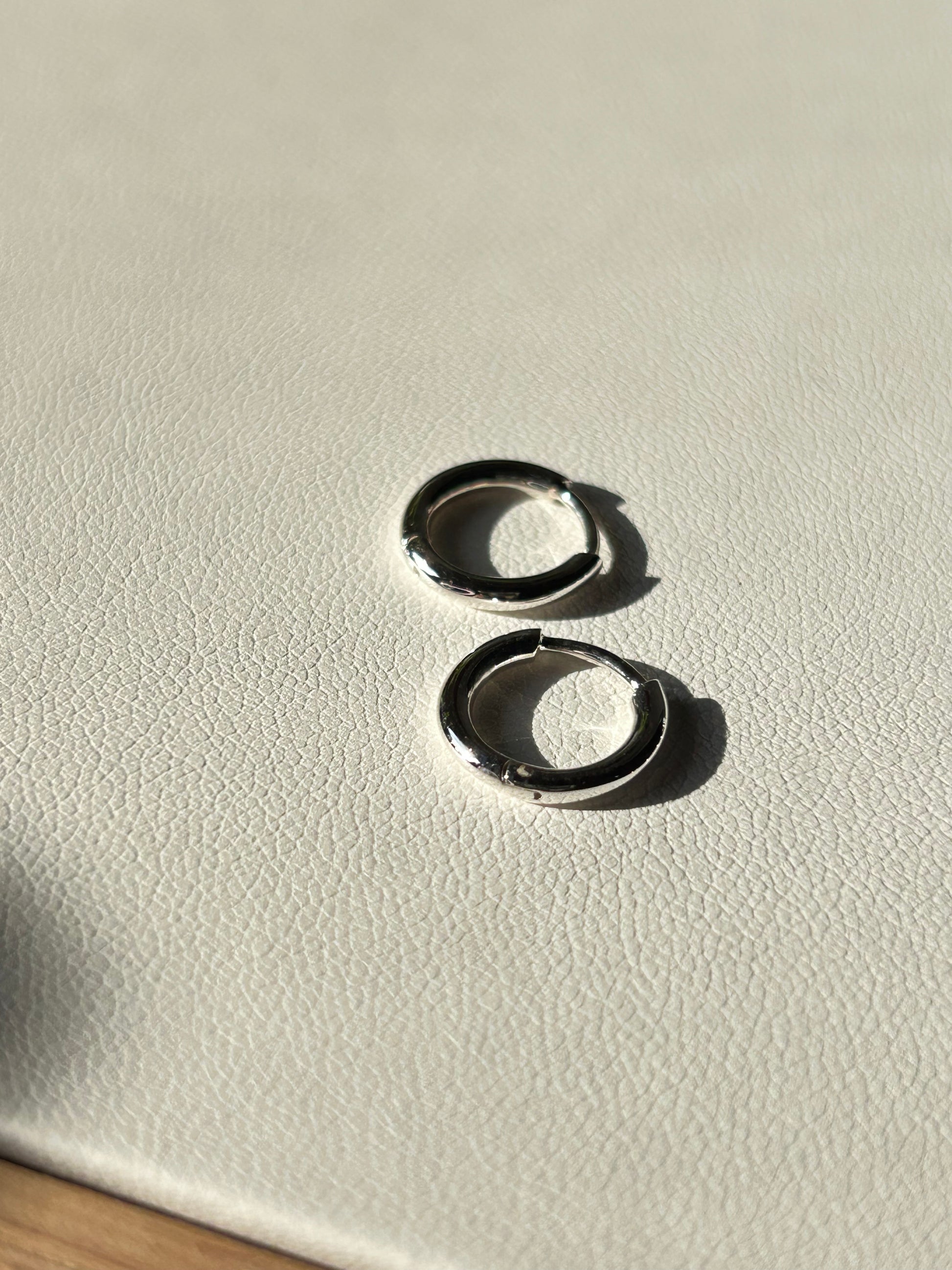 Aritos tipo argollitas con cierre Huggies. Espesor 2mm. Diámetro central 10mm. Plata italiana