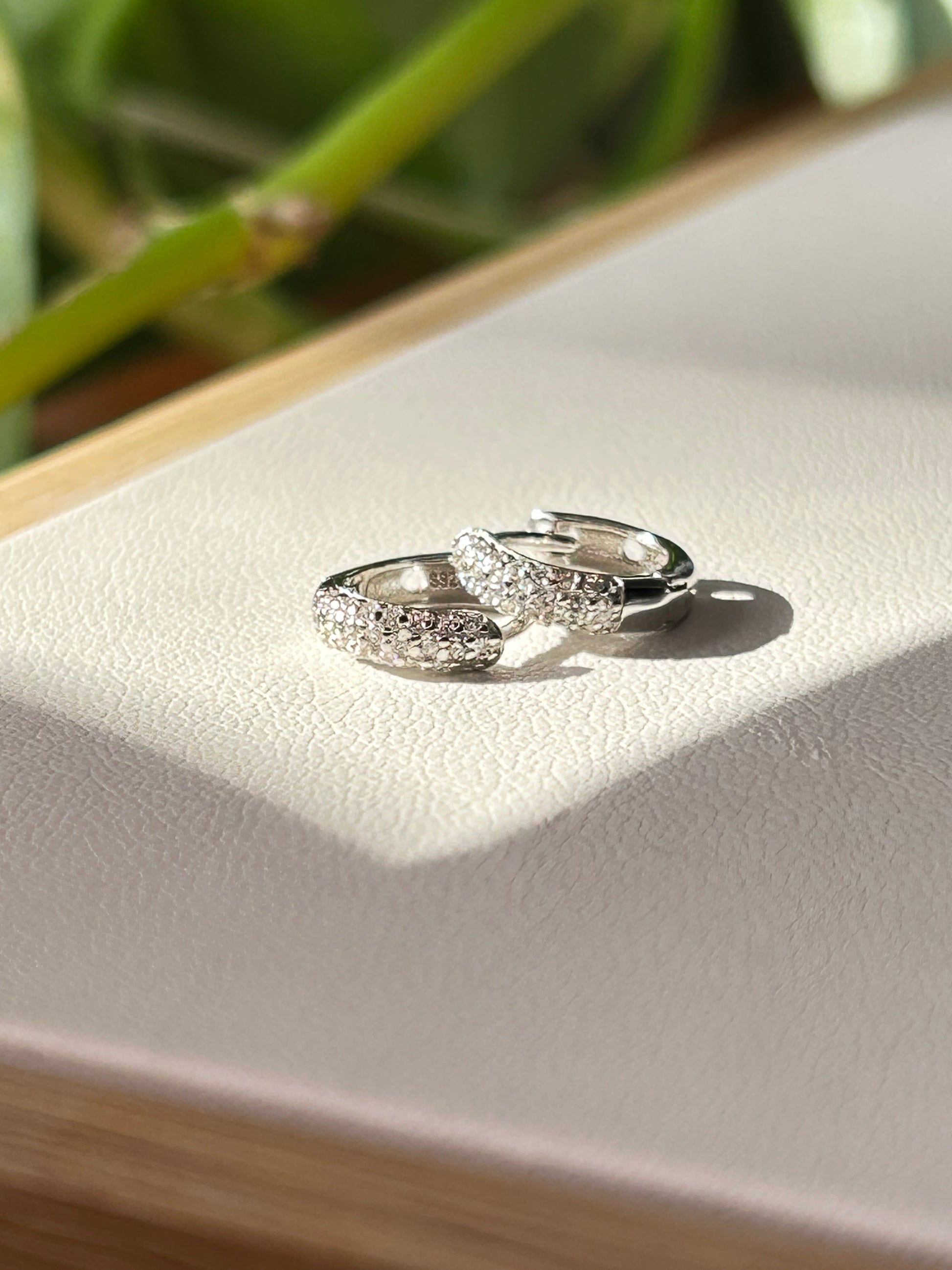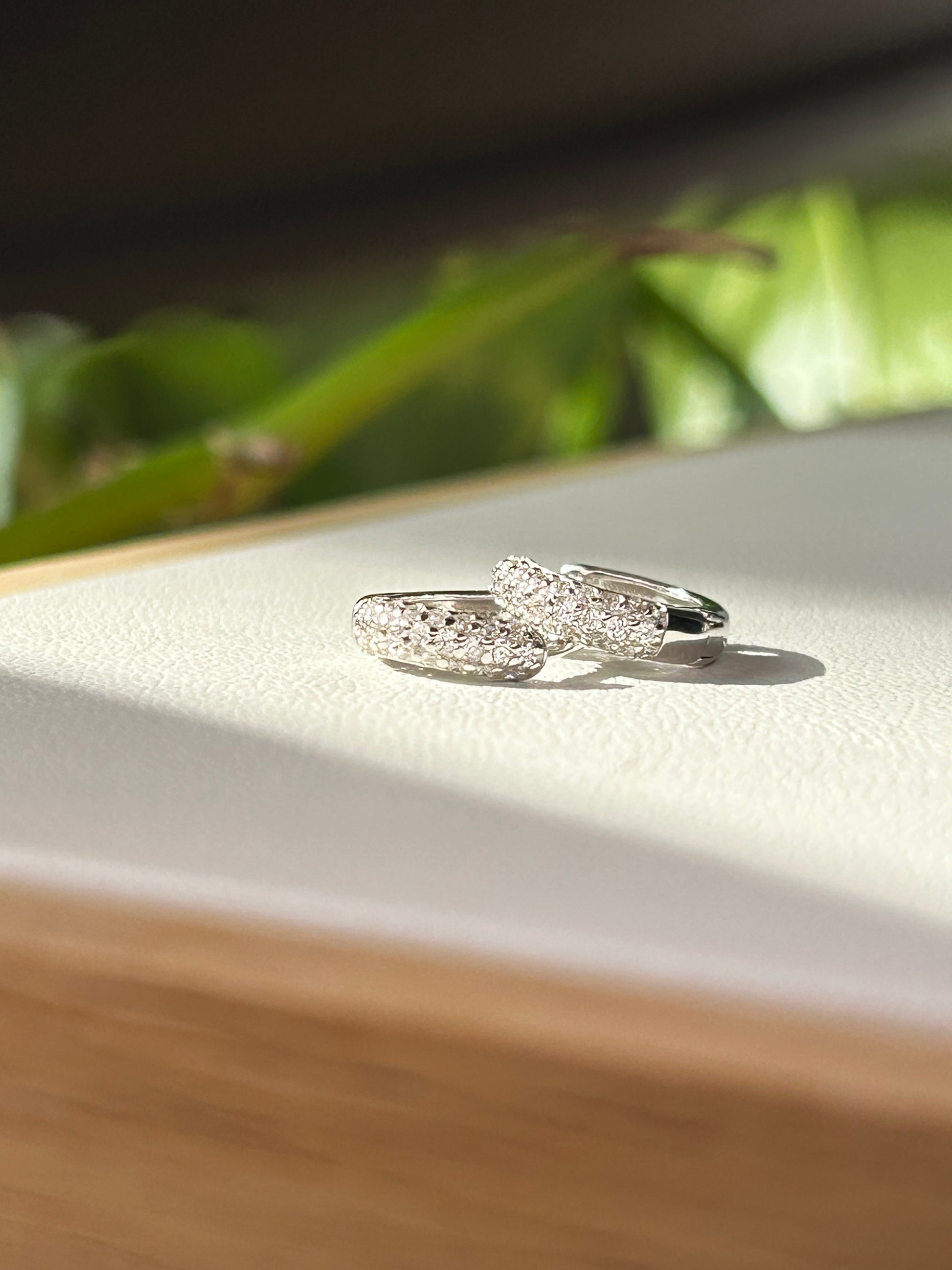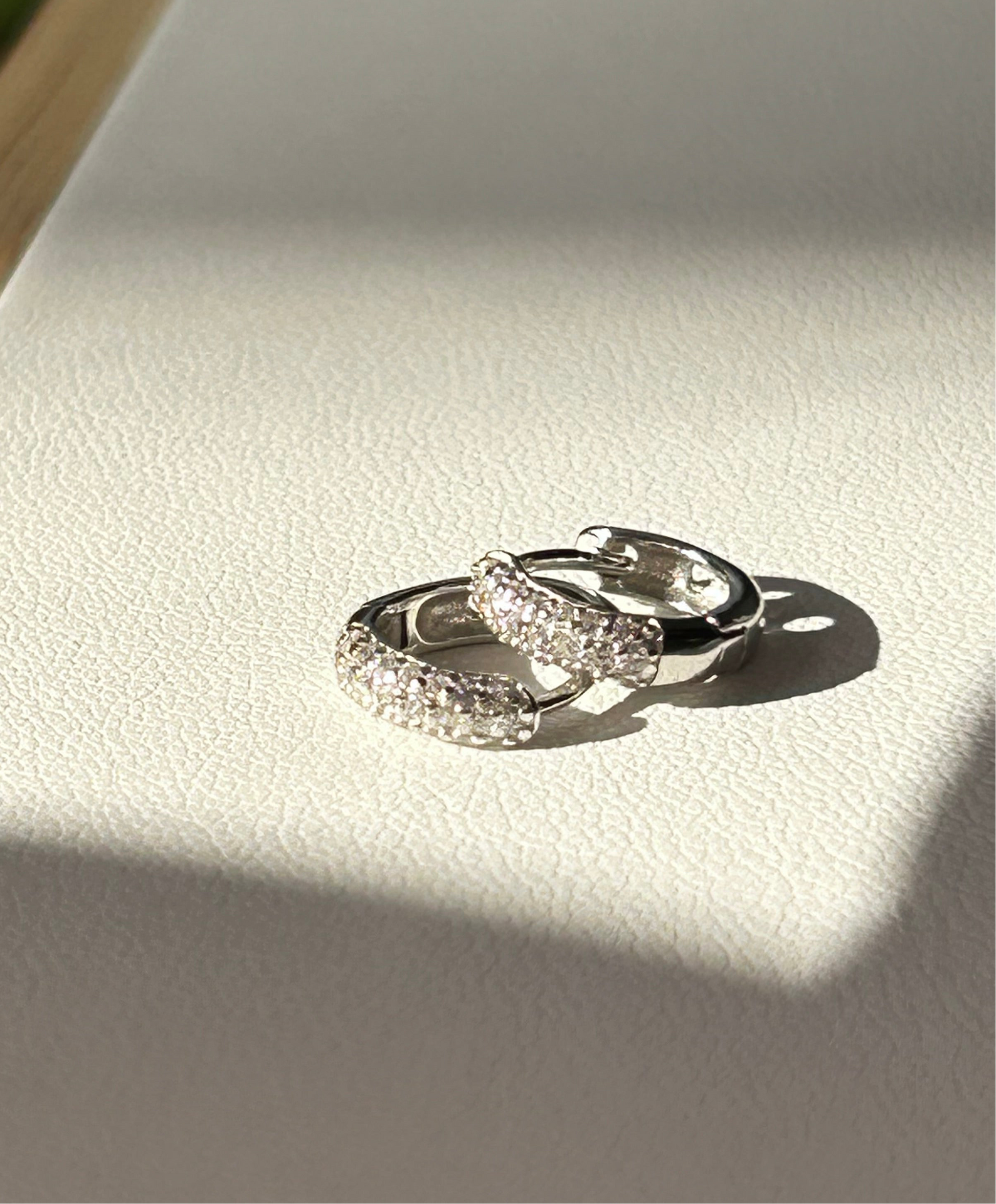 Arito tipo argollita tachonado de circonias . Doble fila, medio aro. Medida de diámetro central 8mm. ¡Mucho brillo!