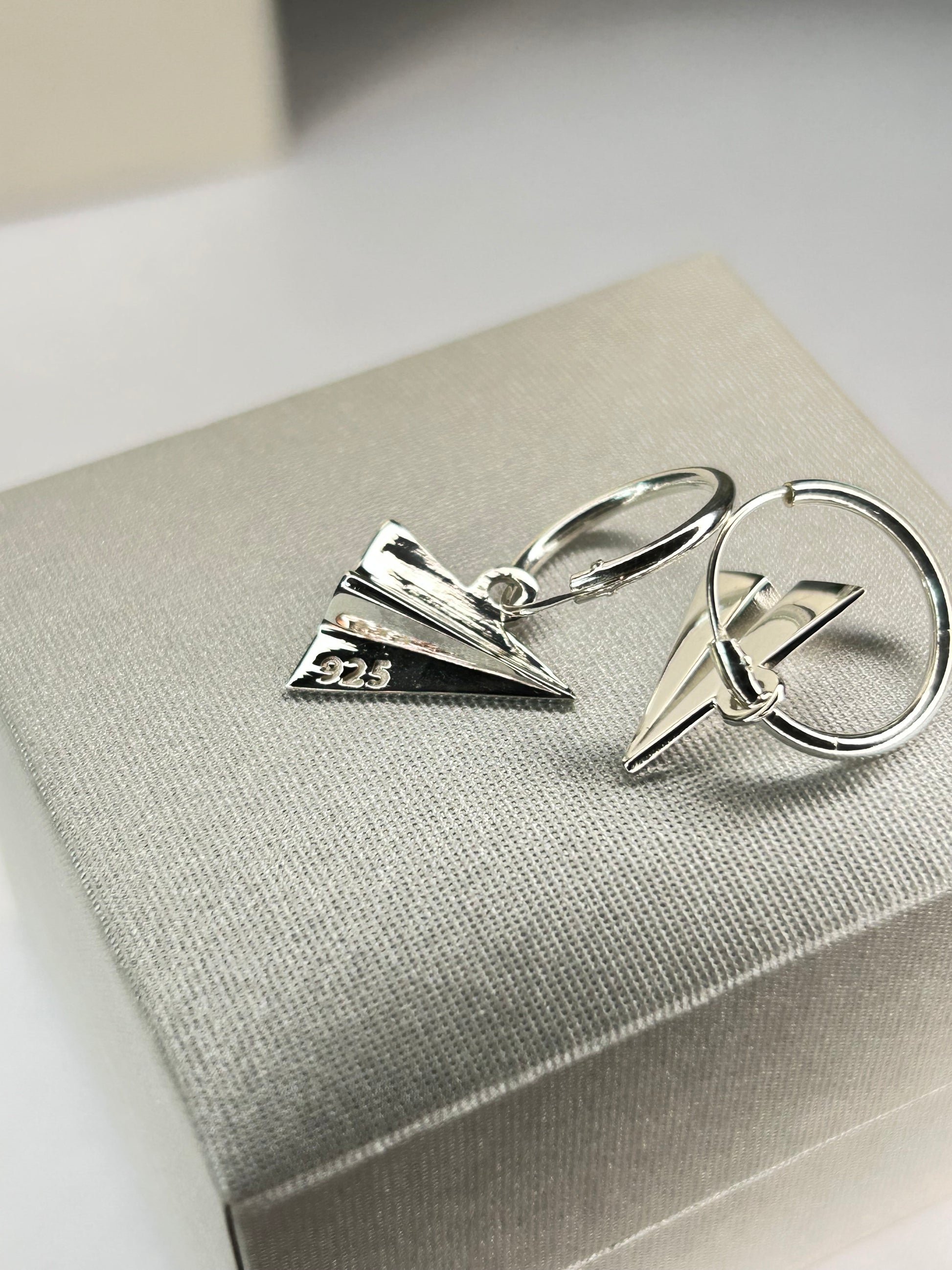 Aros con cierre embutido 13mm. Con dijes de avión origami . ¡Súper originales!