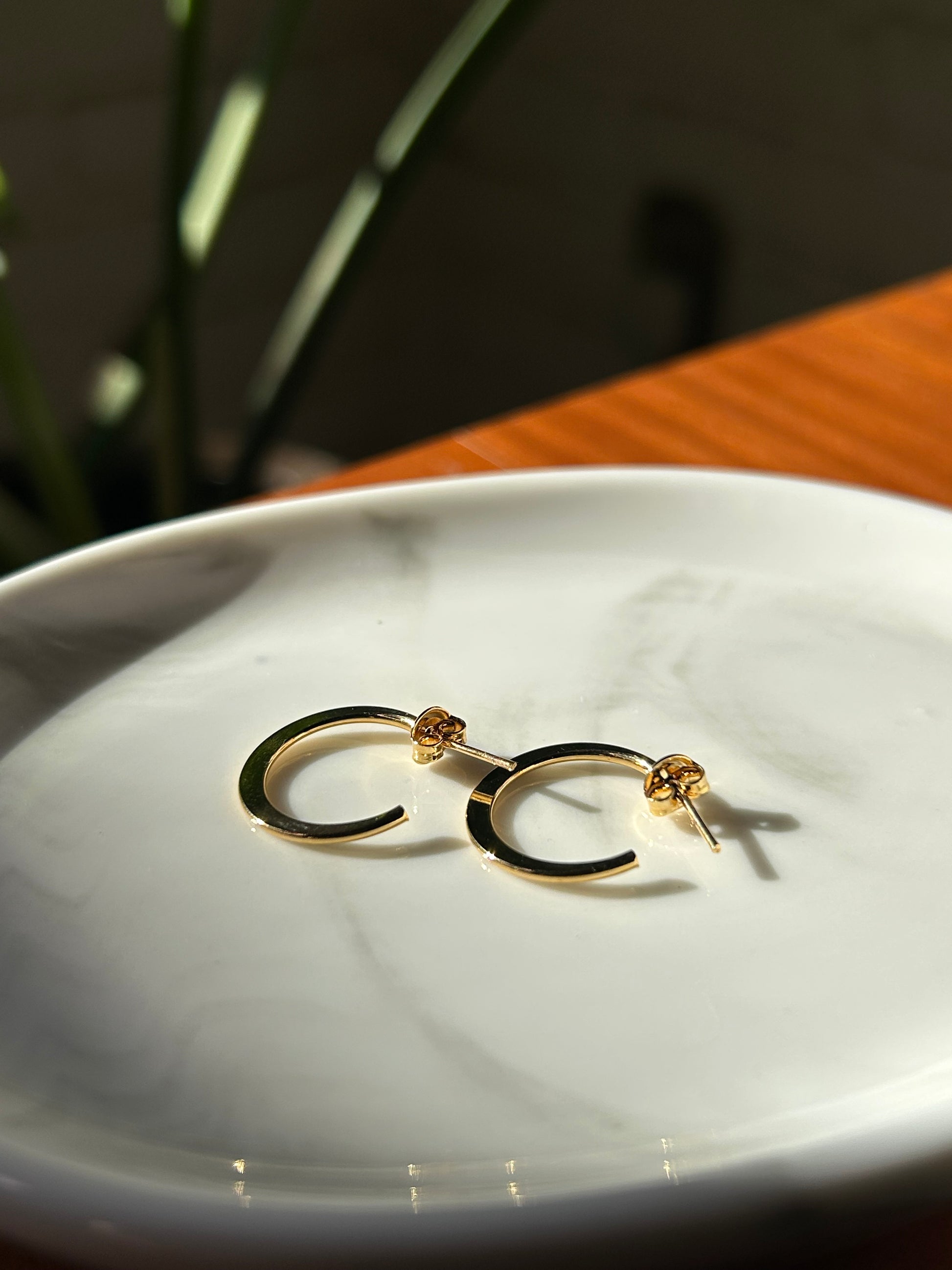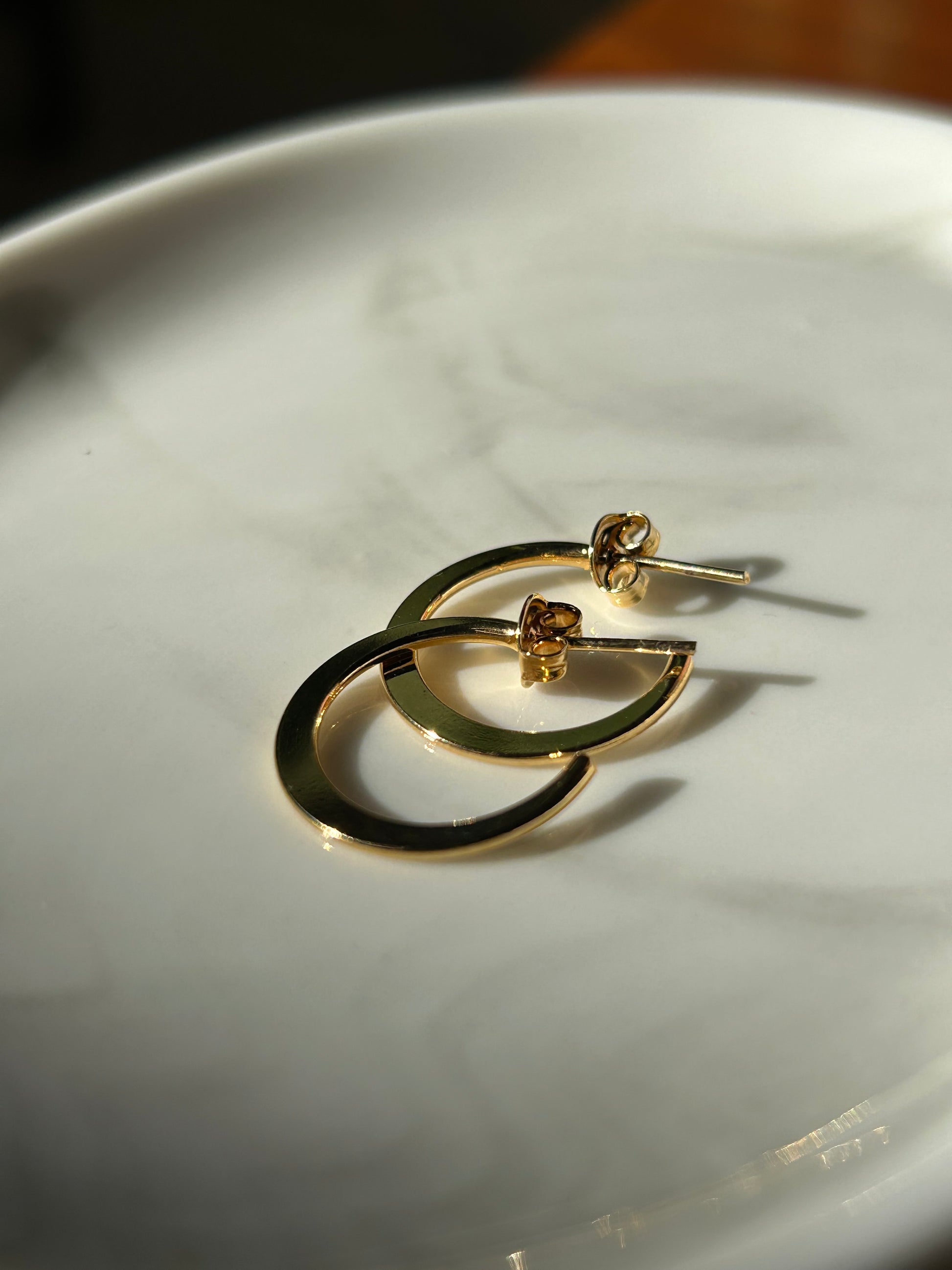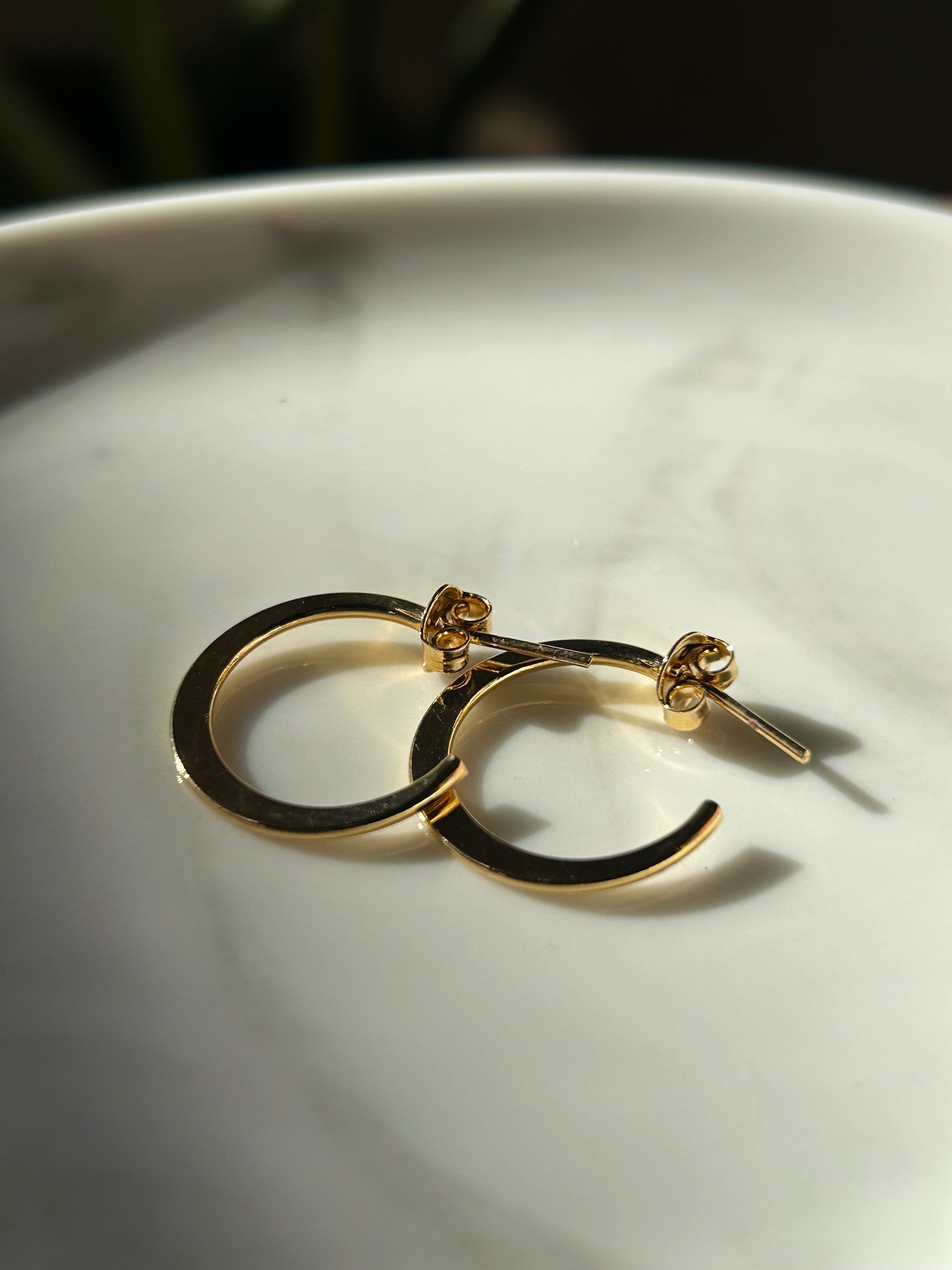 Aros bañados en oro caña chata 18MM cierre mariposa
