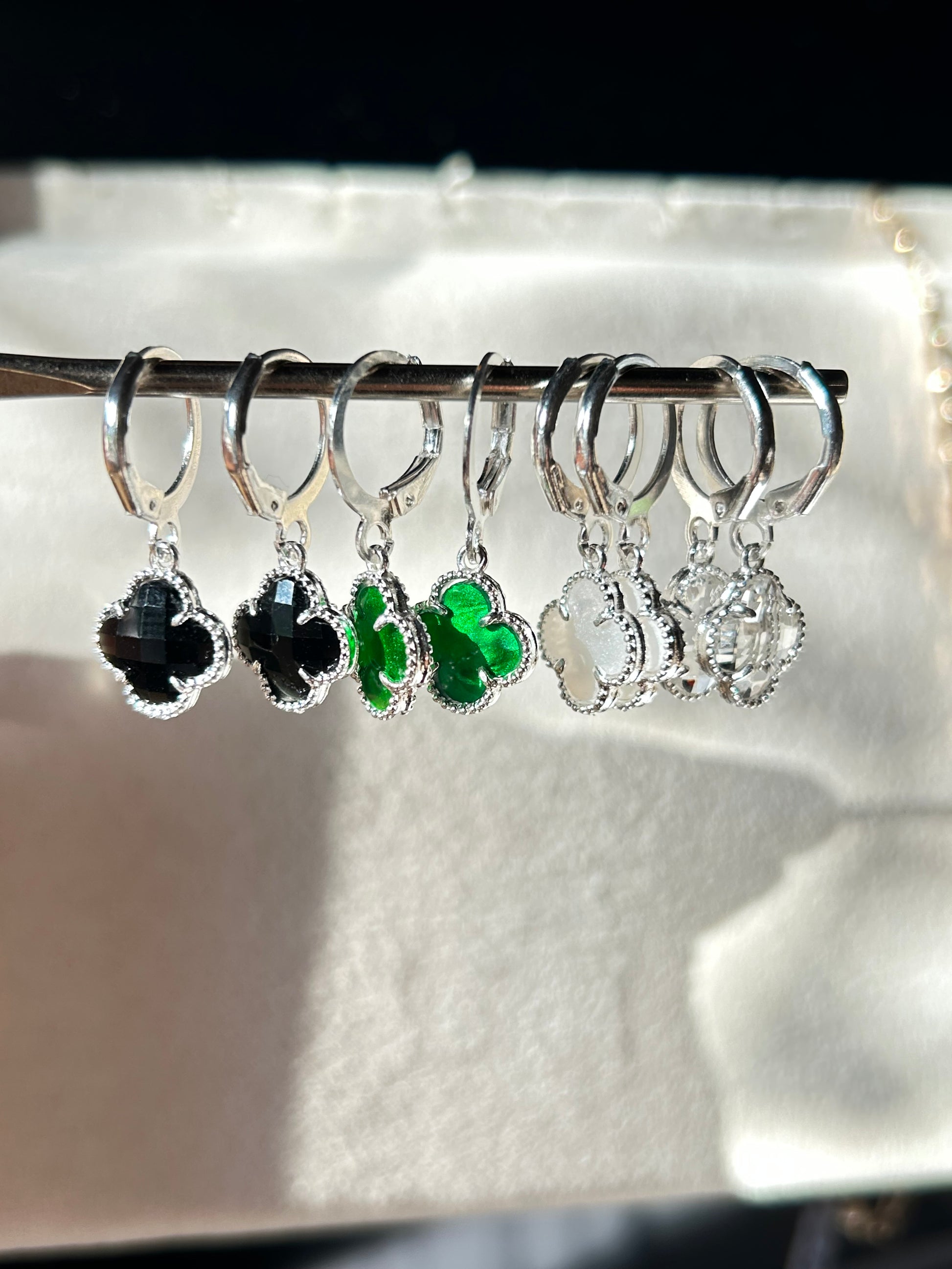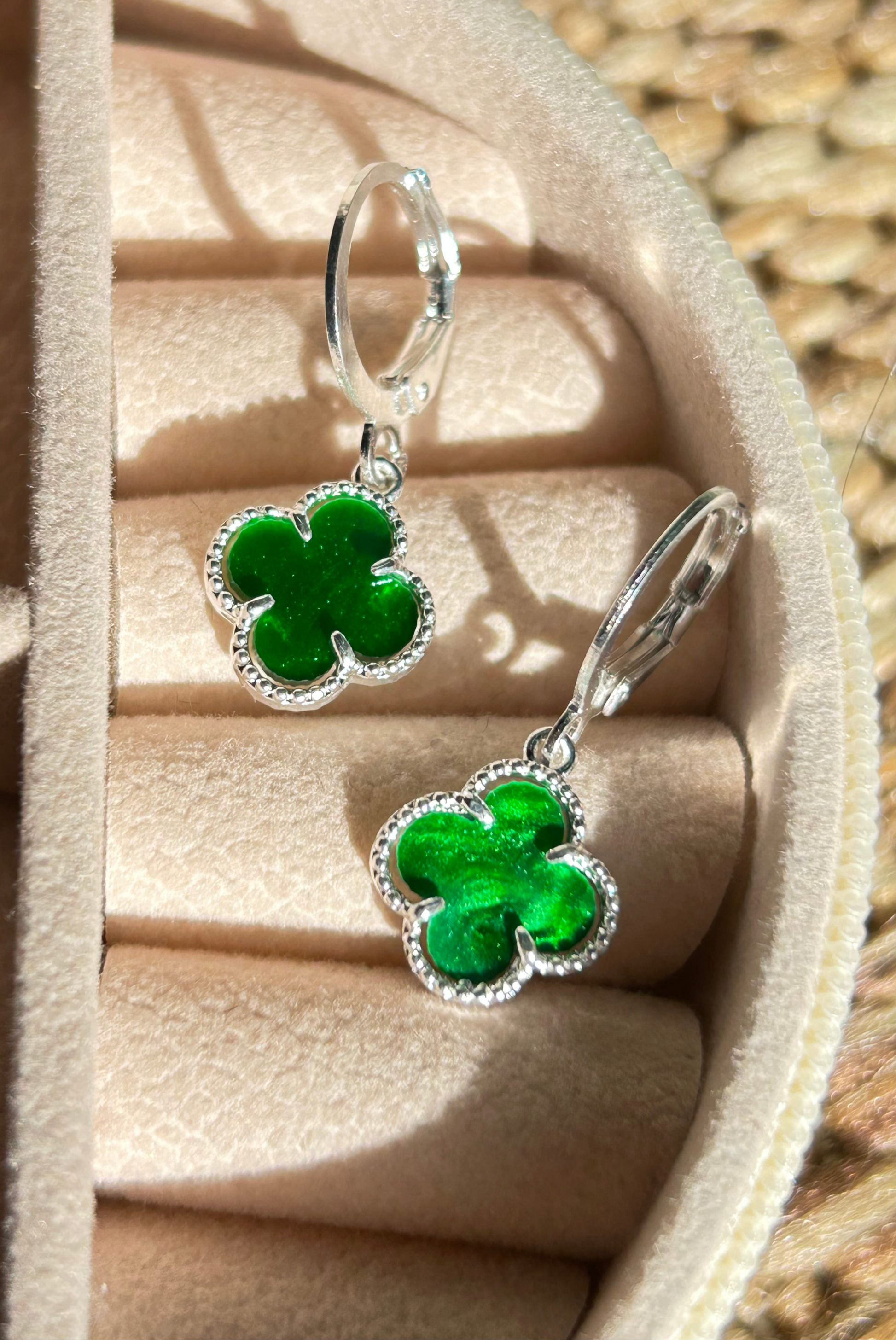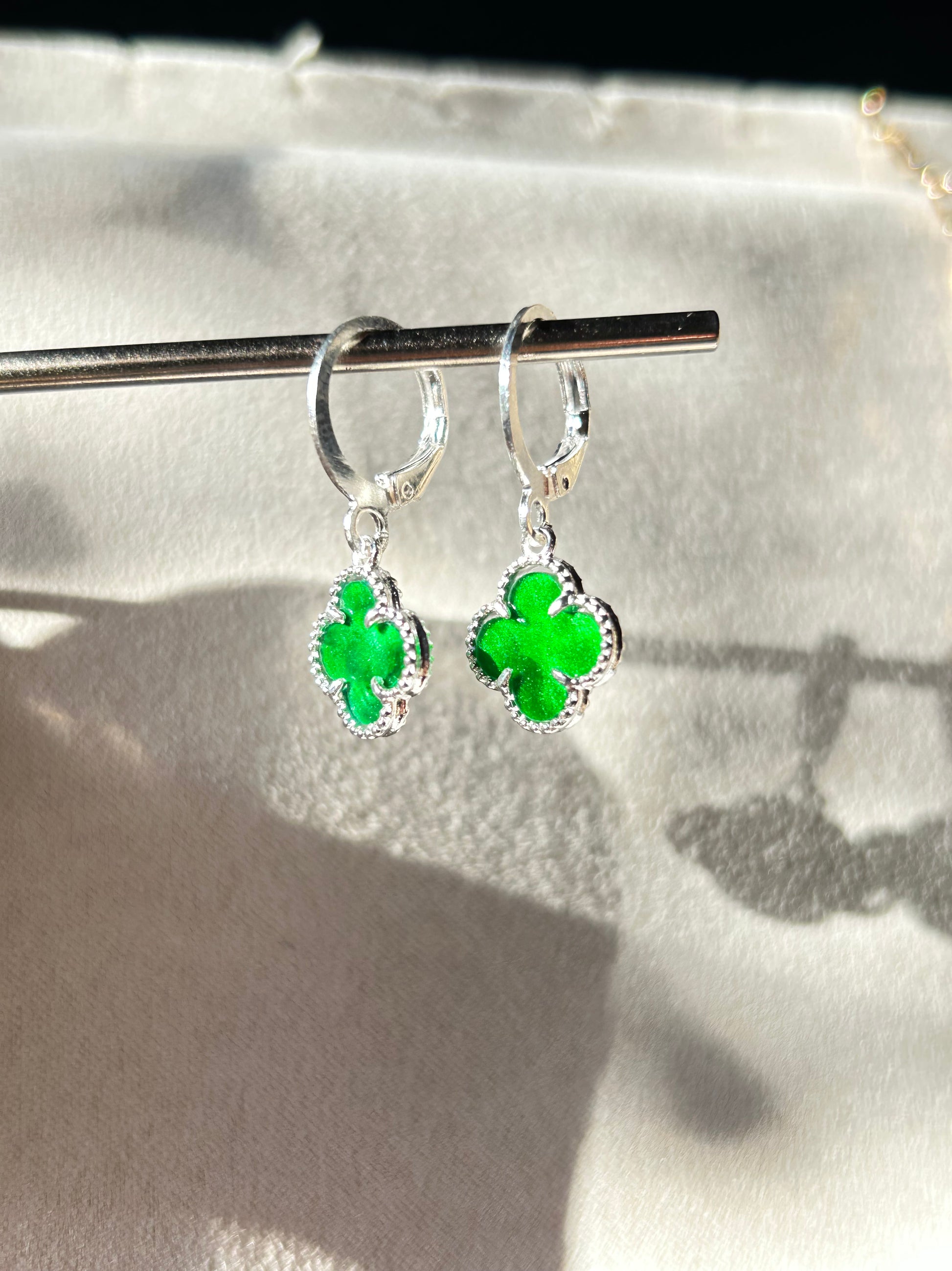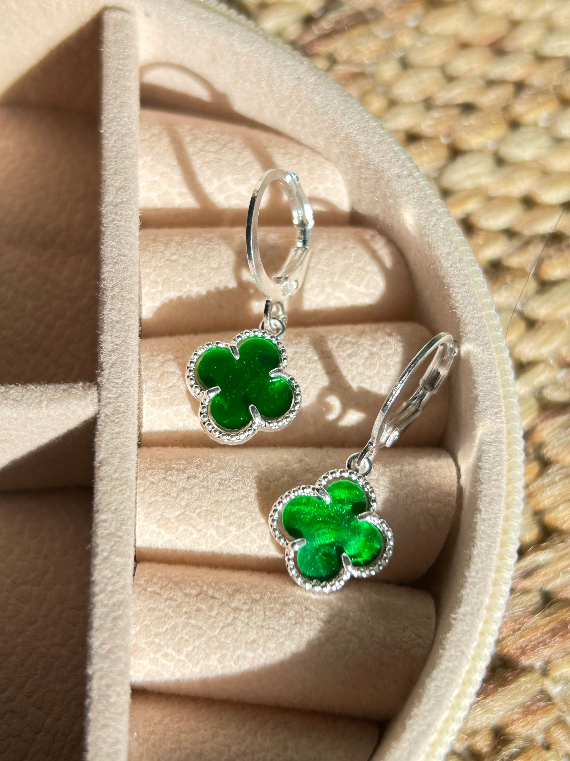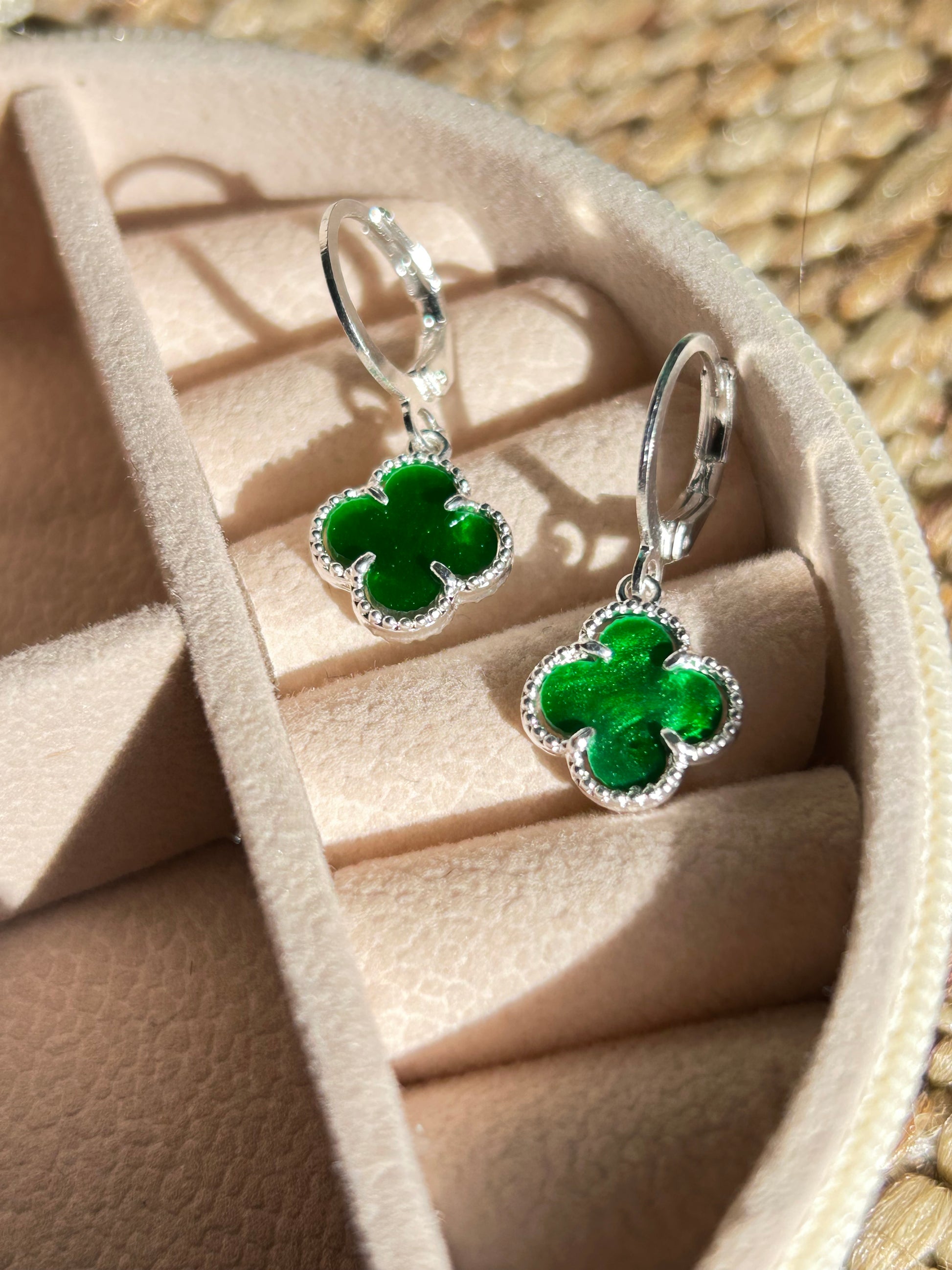 Aros cierre bisura 10mm con dije flor en color verde con brillos