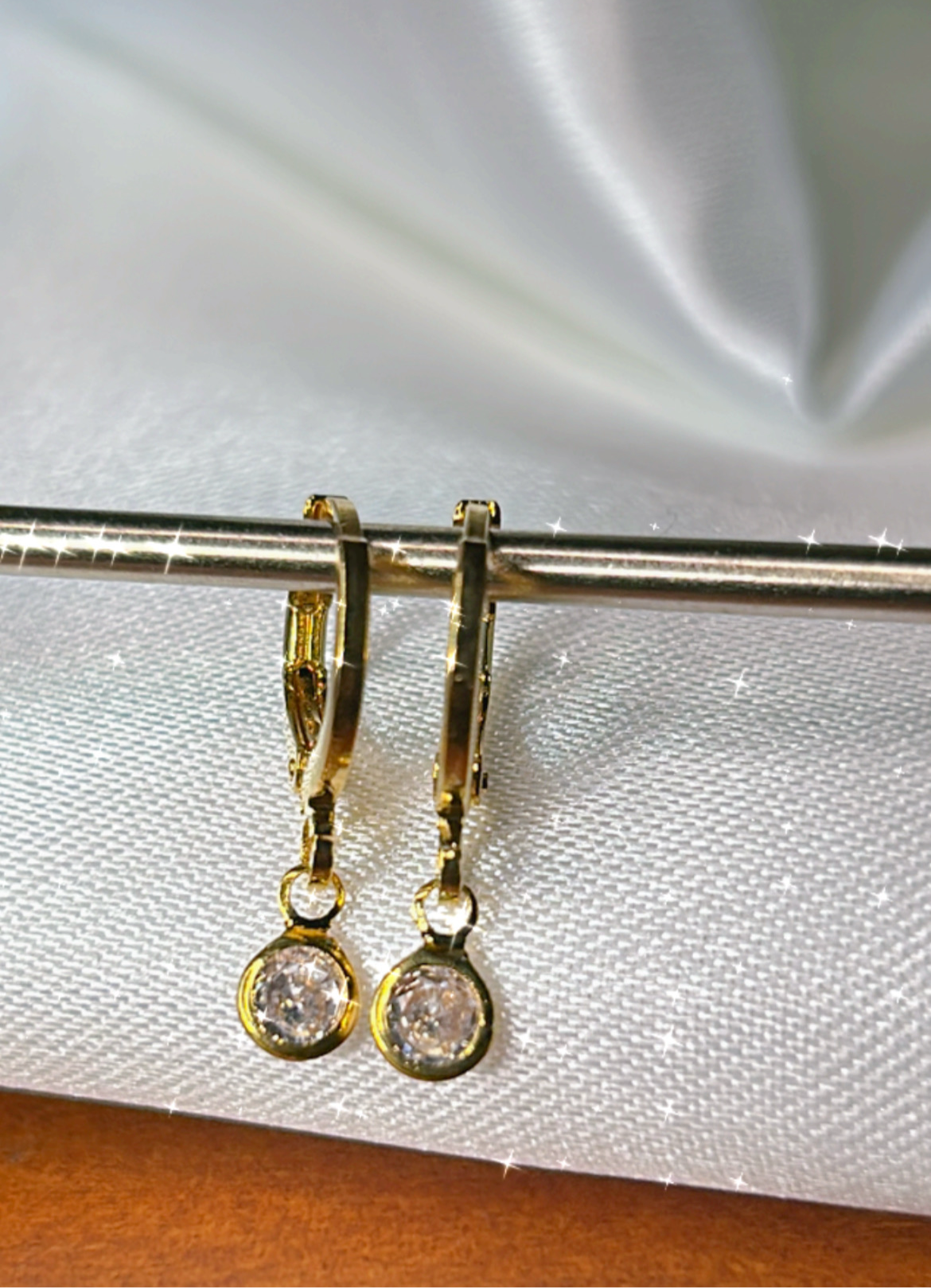 Aros de acero con baño de oro 18k. Dije de punto de luz. 11mm