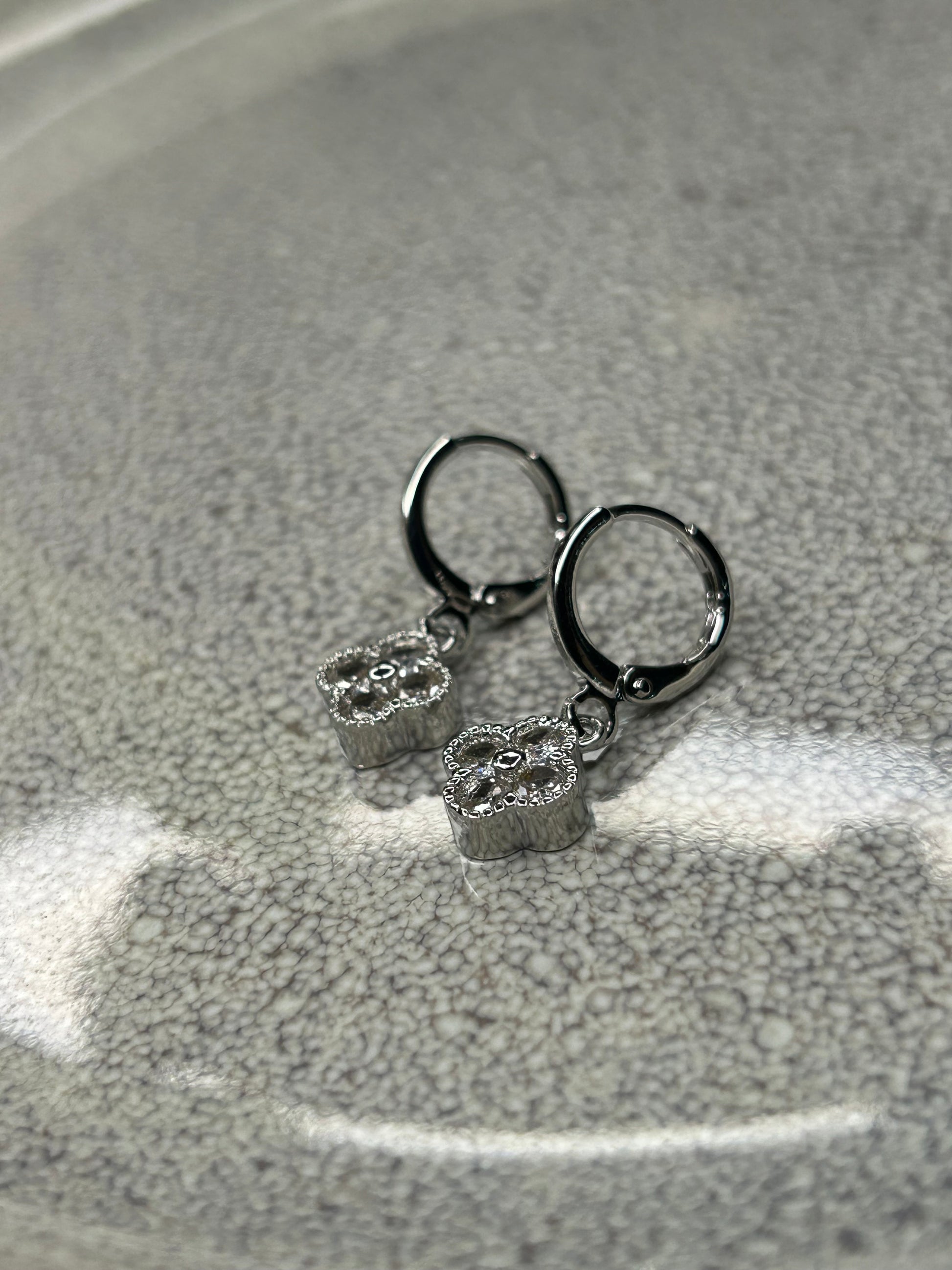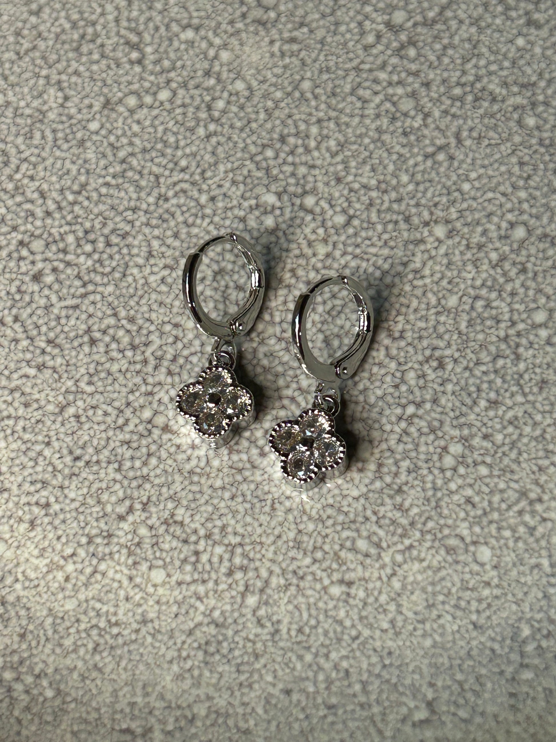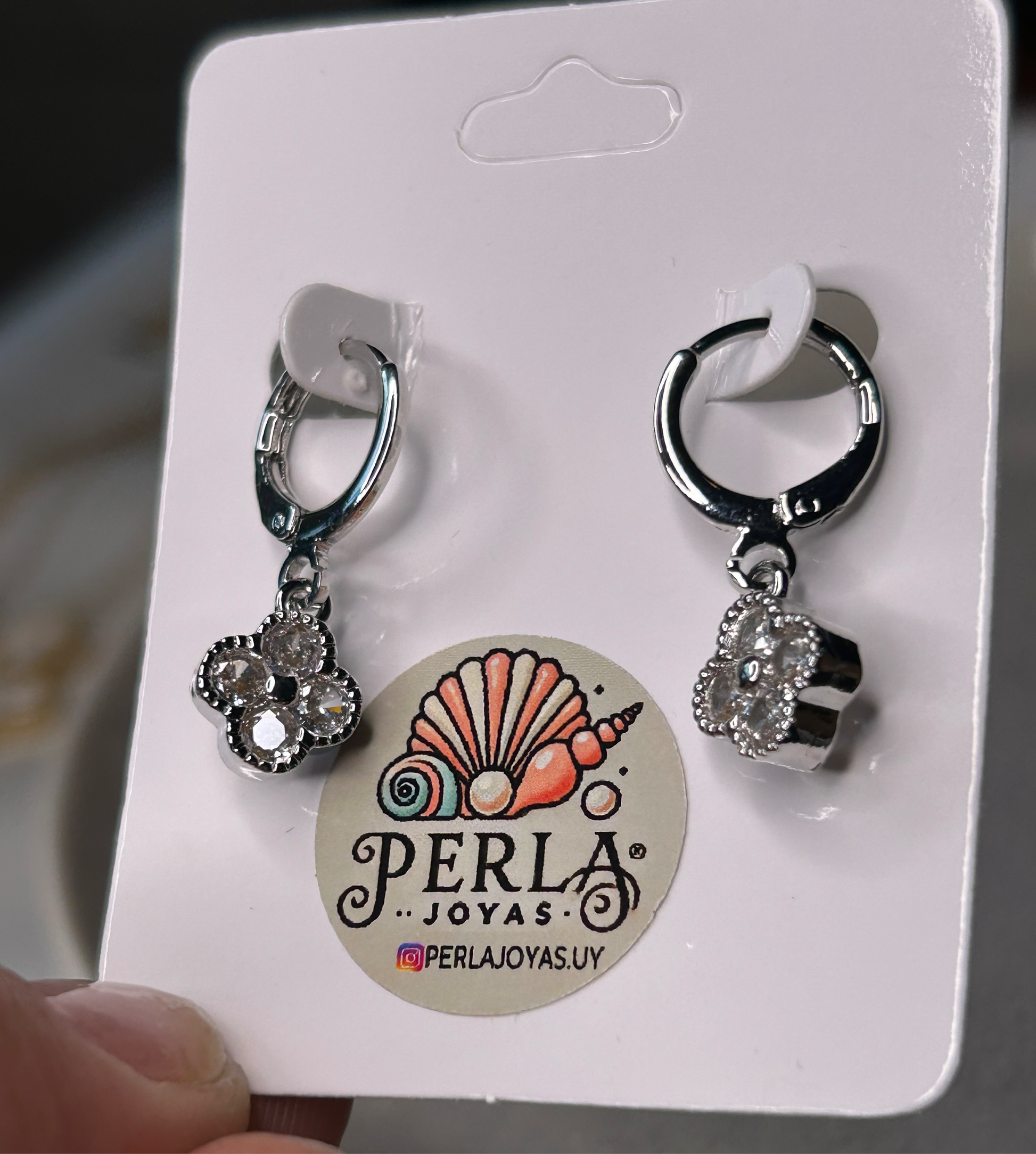 Aros bisura con dije flor 4 circonias 10mm de diámetro.