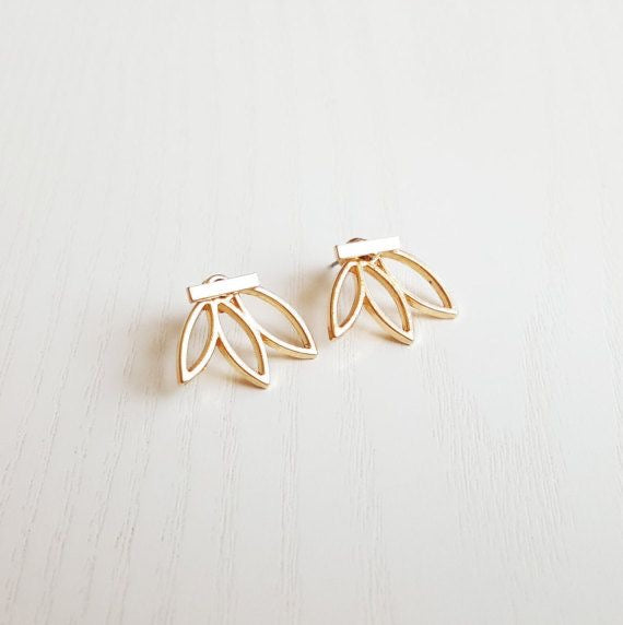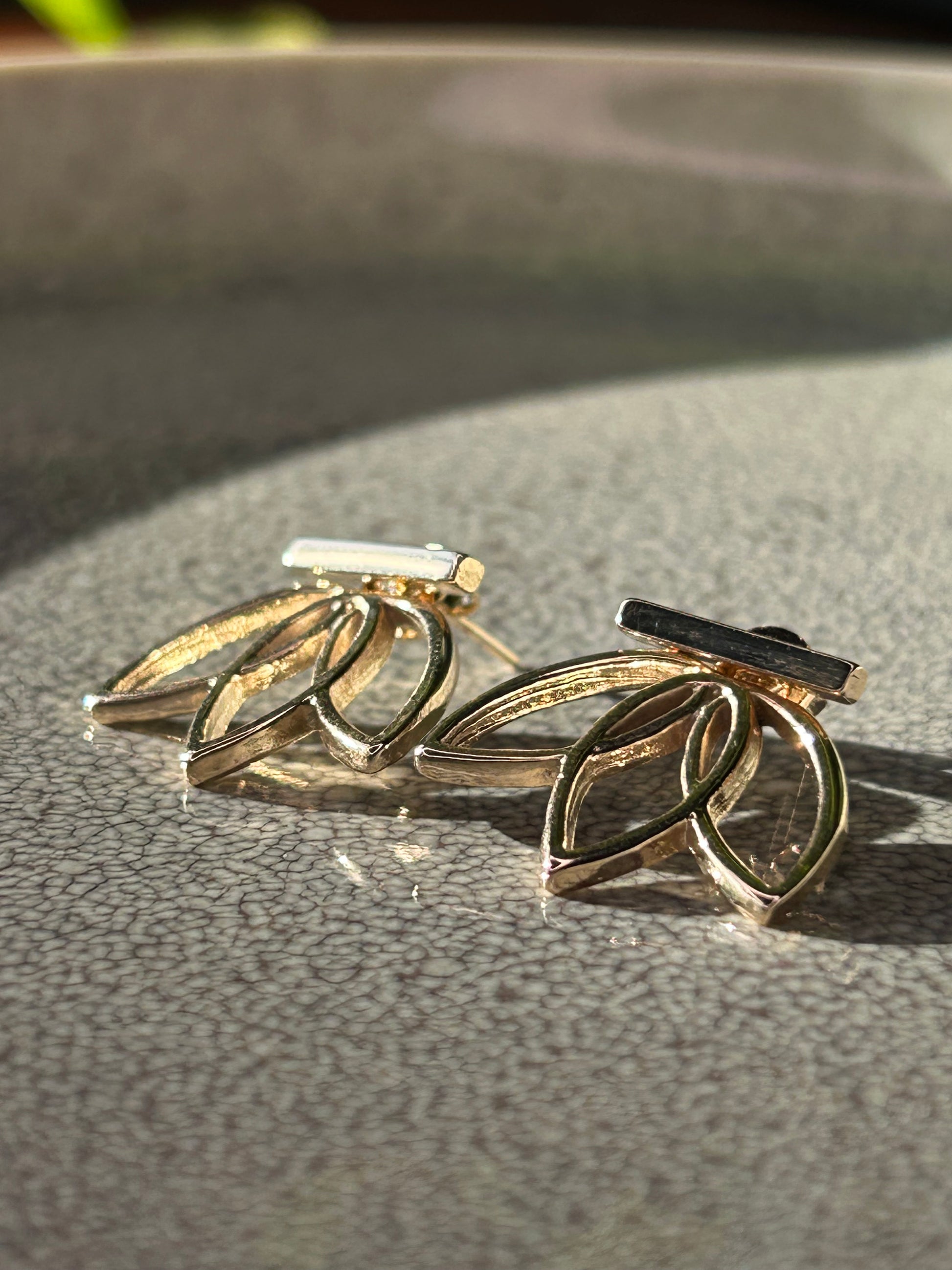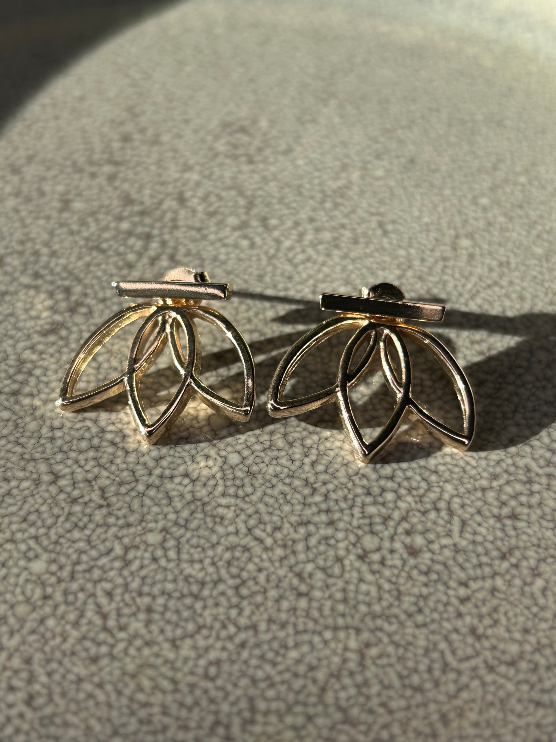 Aros enchapados en oro con diseño flor de loto. Cierre mariposa.