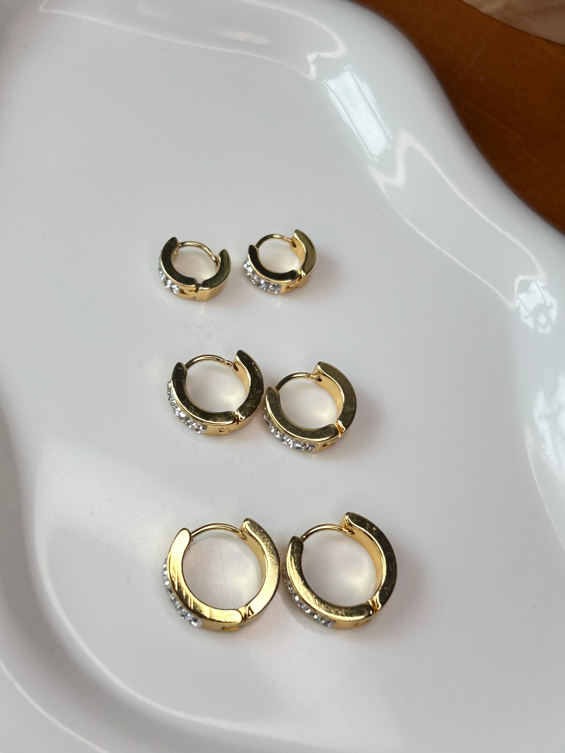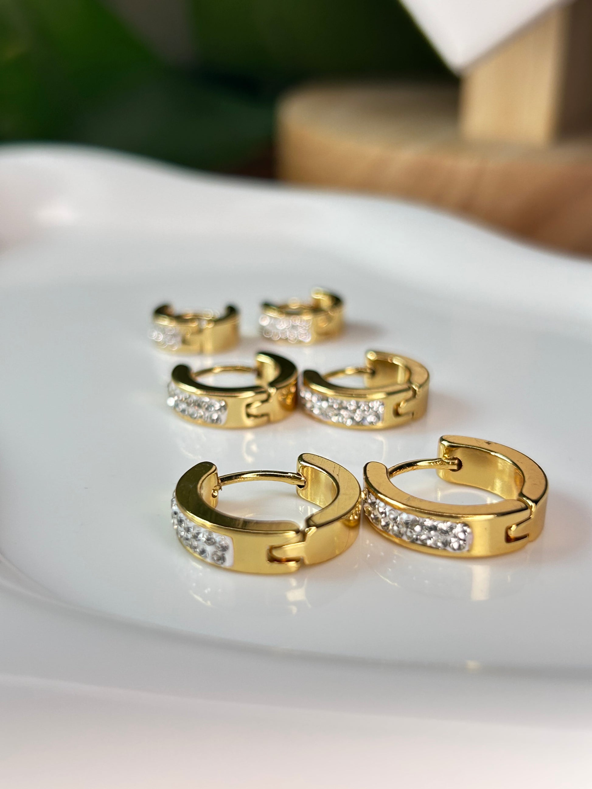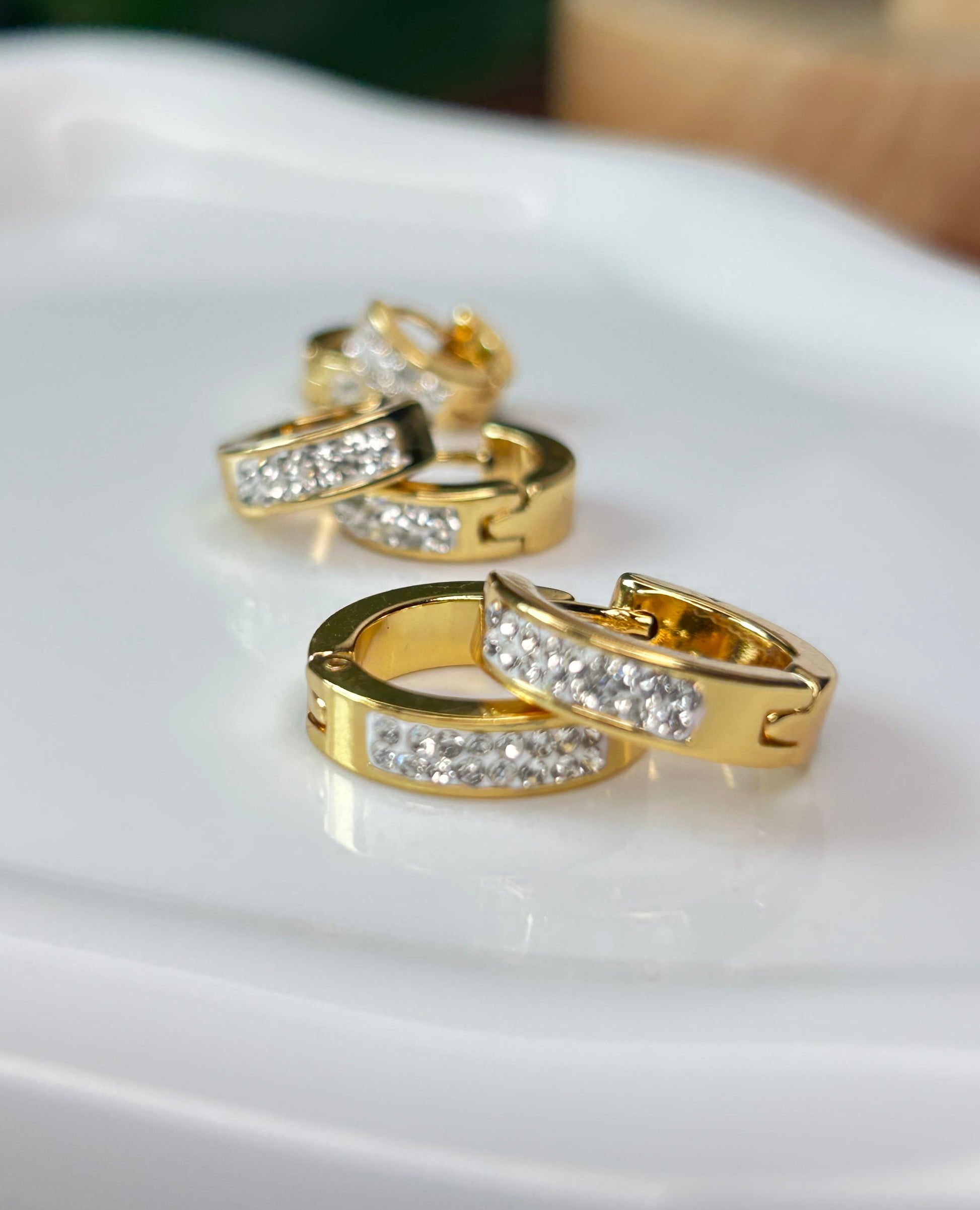 Aros con diseño de cierre Huggies. Tamaño de diámetro 18mm. Con circonias cristal. Fabricados en acero hipo alergénico