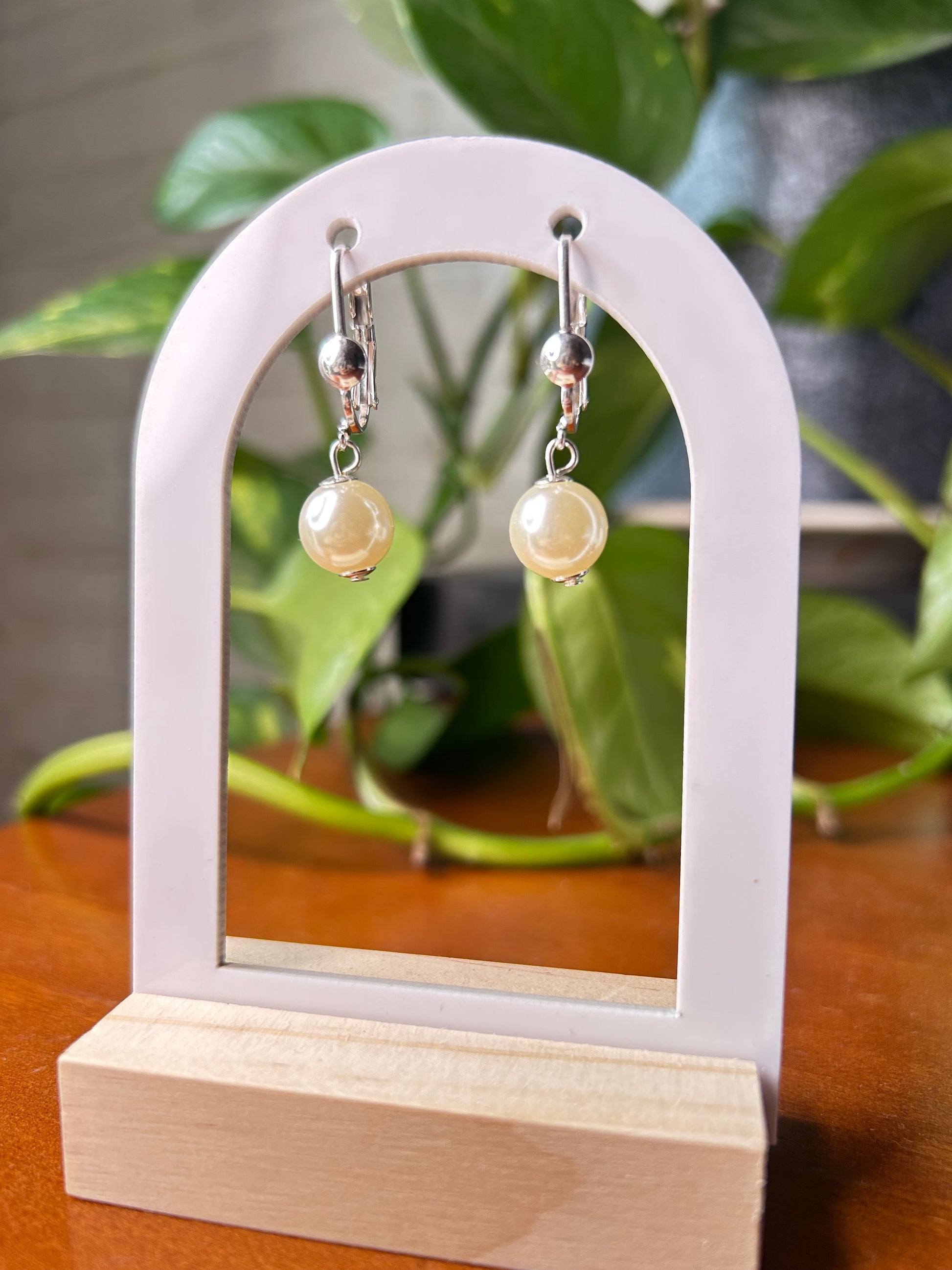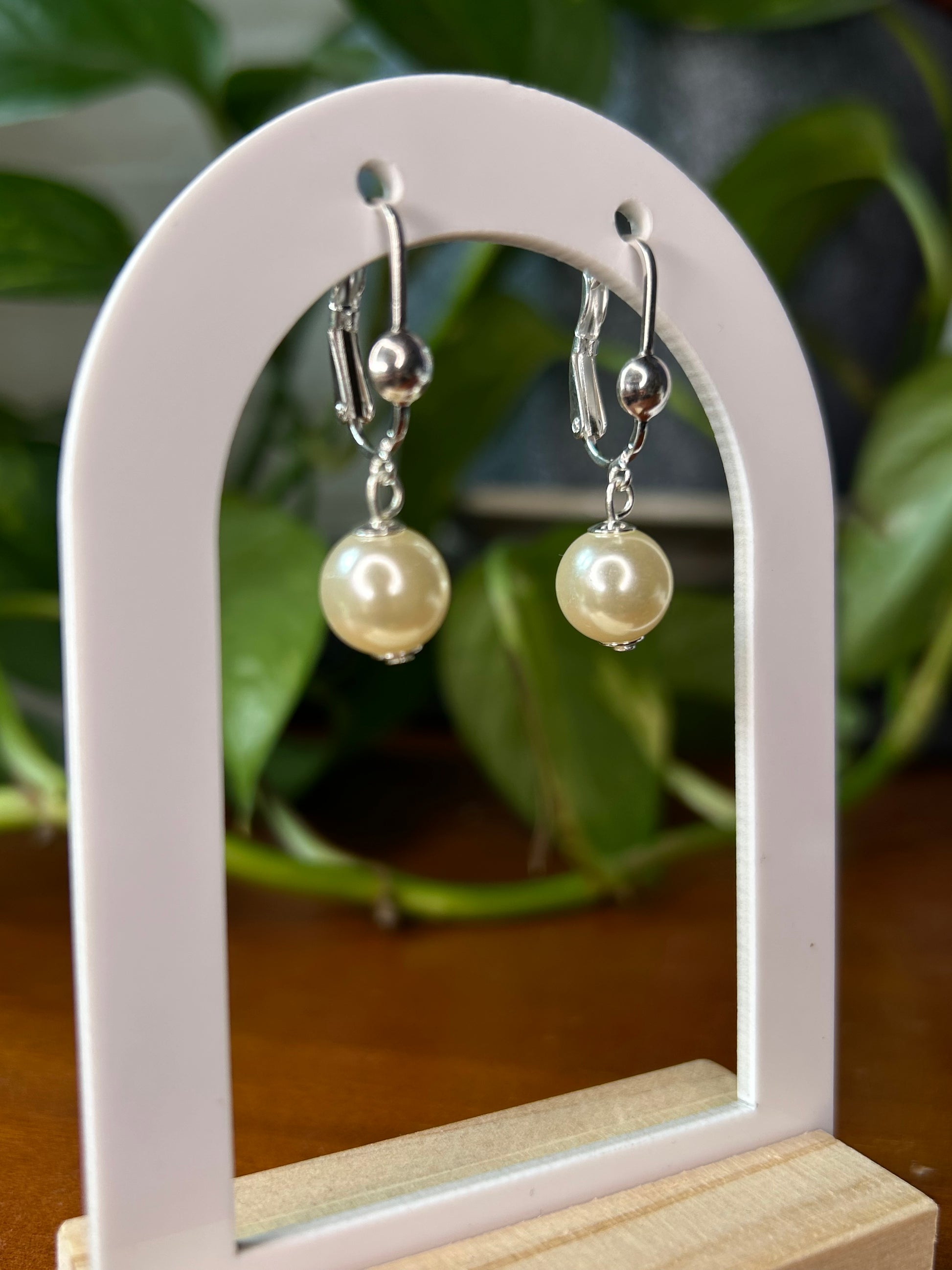 Aritos con perlitas colgantes. Cierre birsura, fáciles de poner y sacar. Medida de las perlas 10mm.