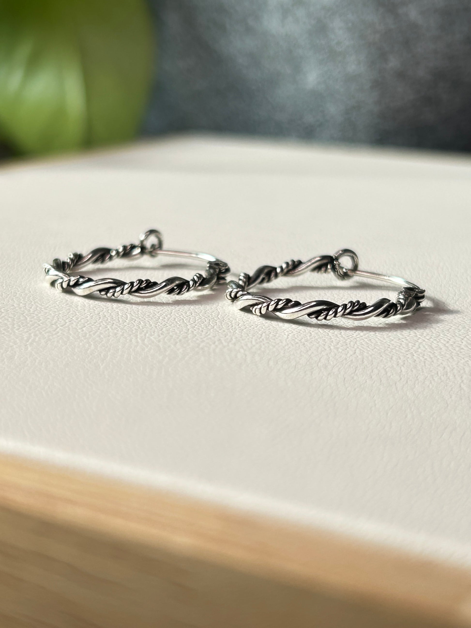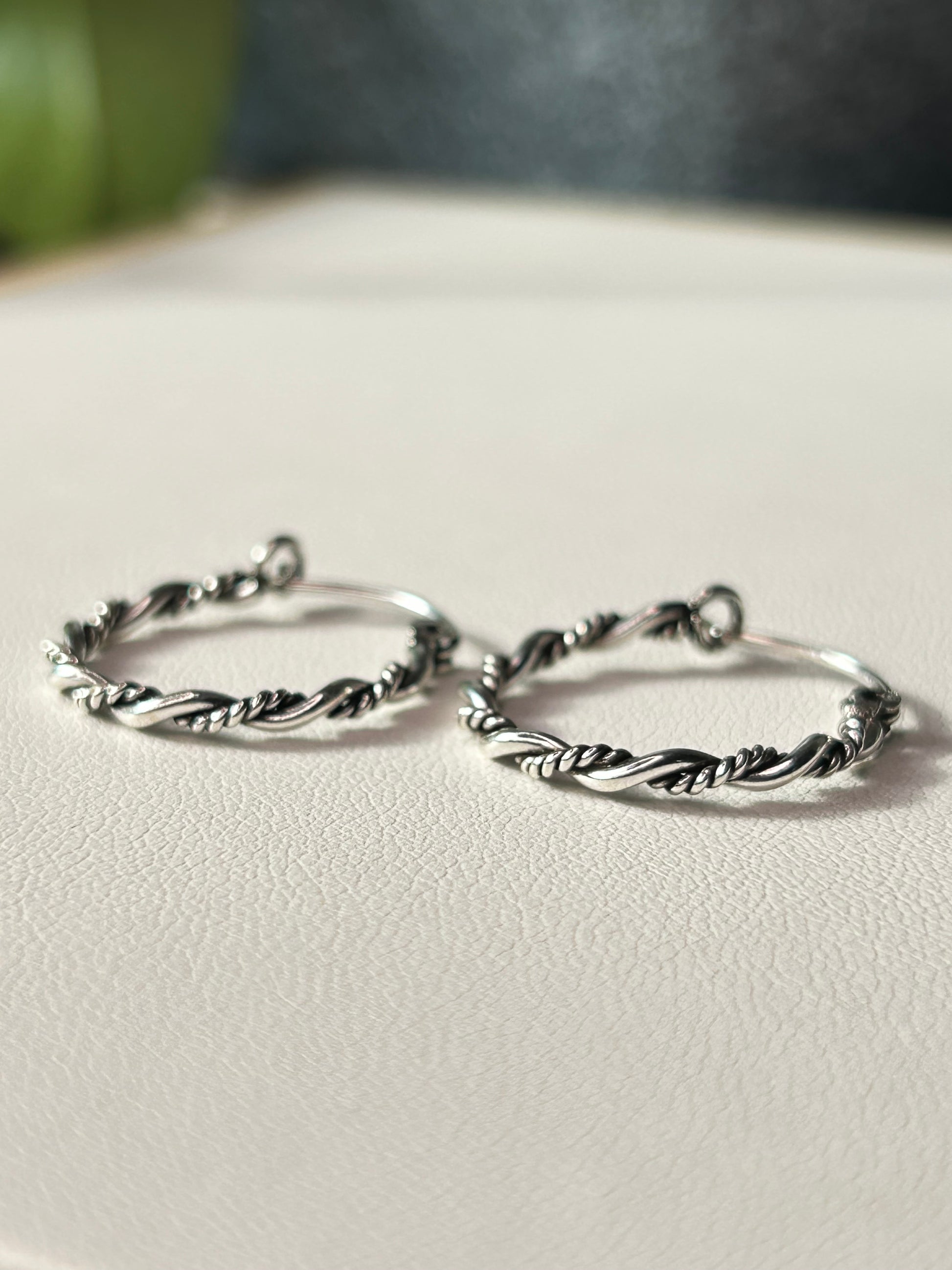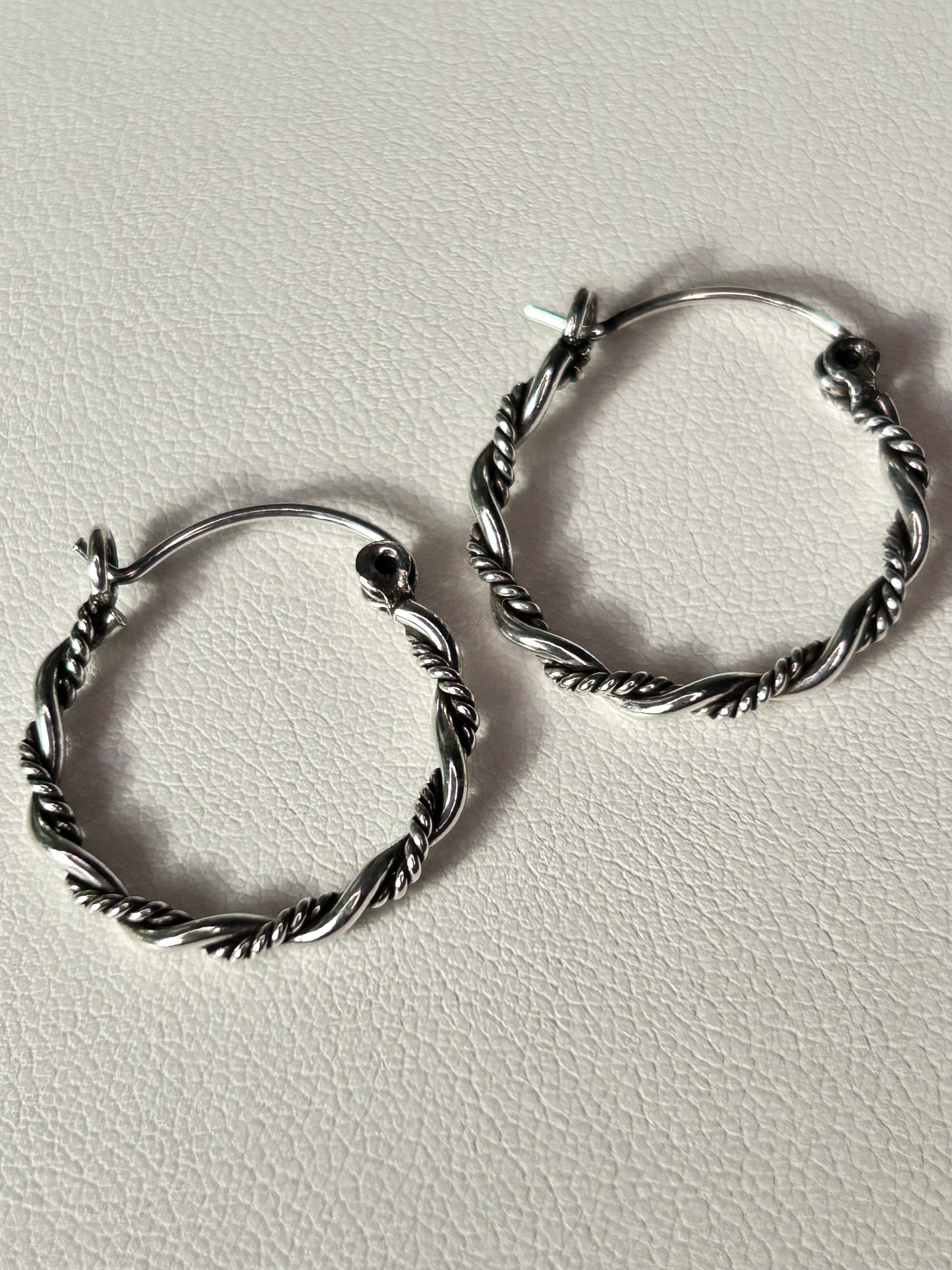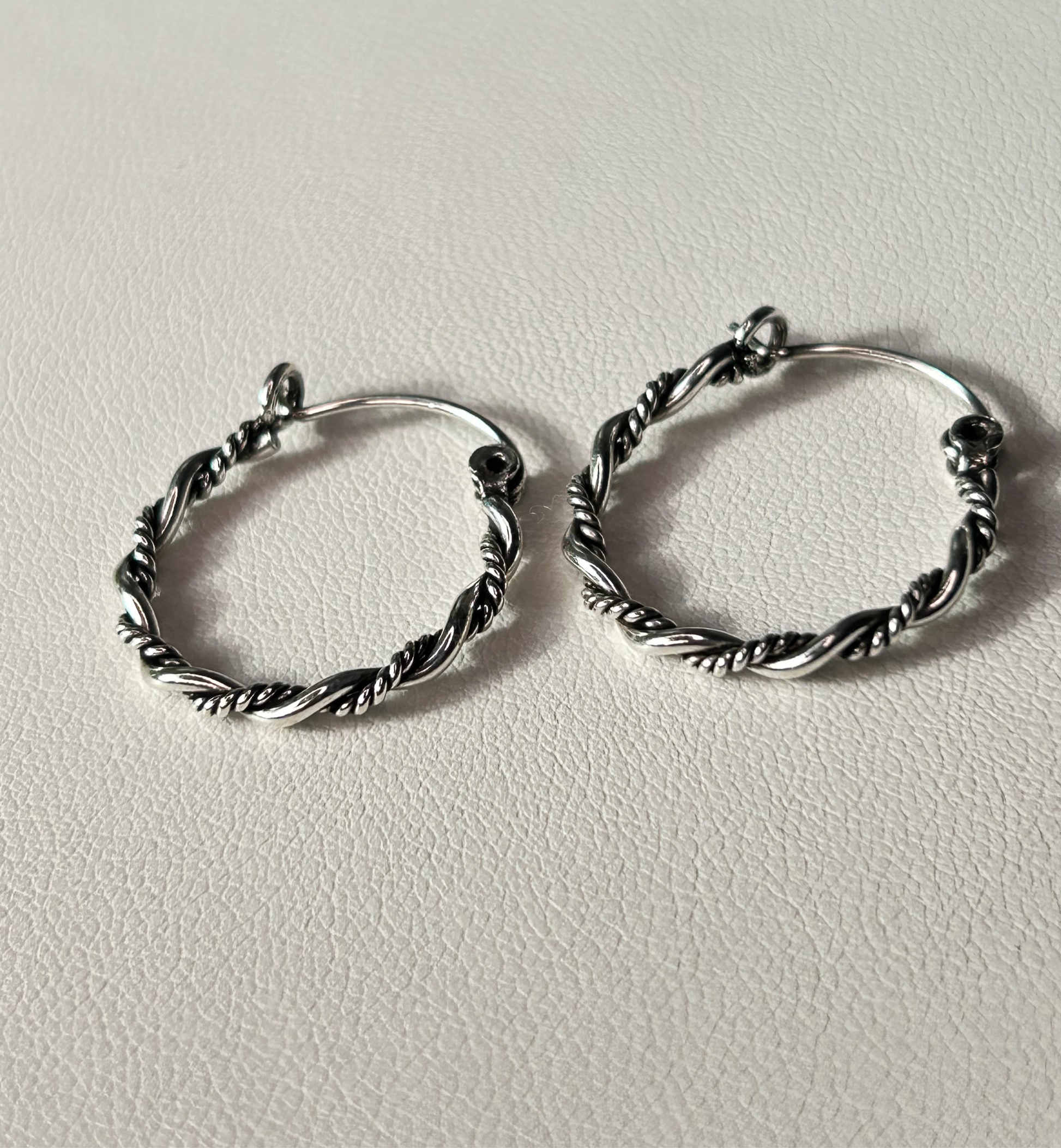 Aros circulares cierre ganchito. Trenzado estilo Bali. Medida de diámetro 20mm.