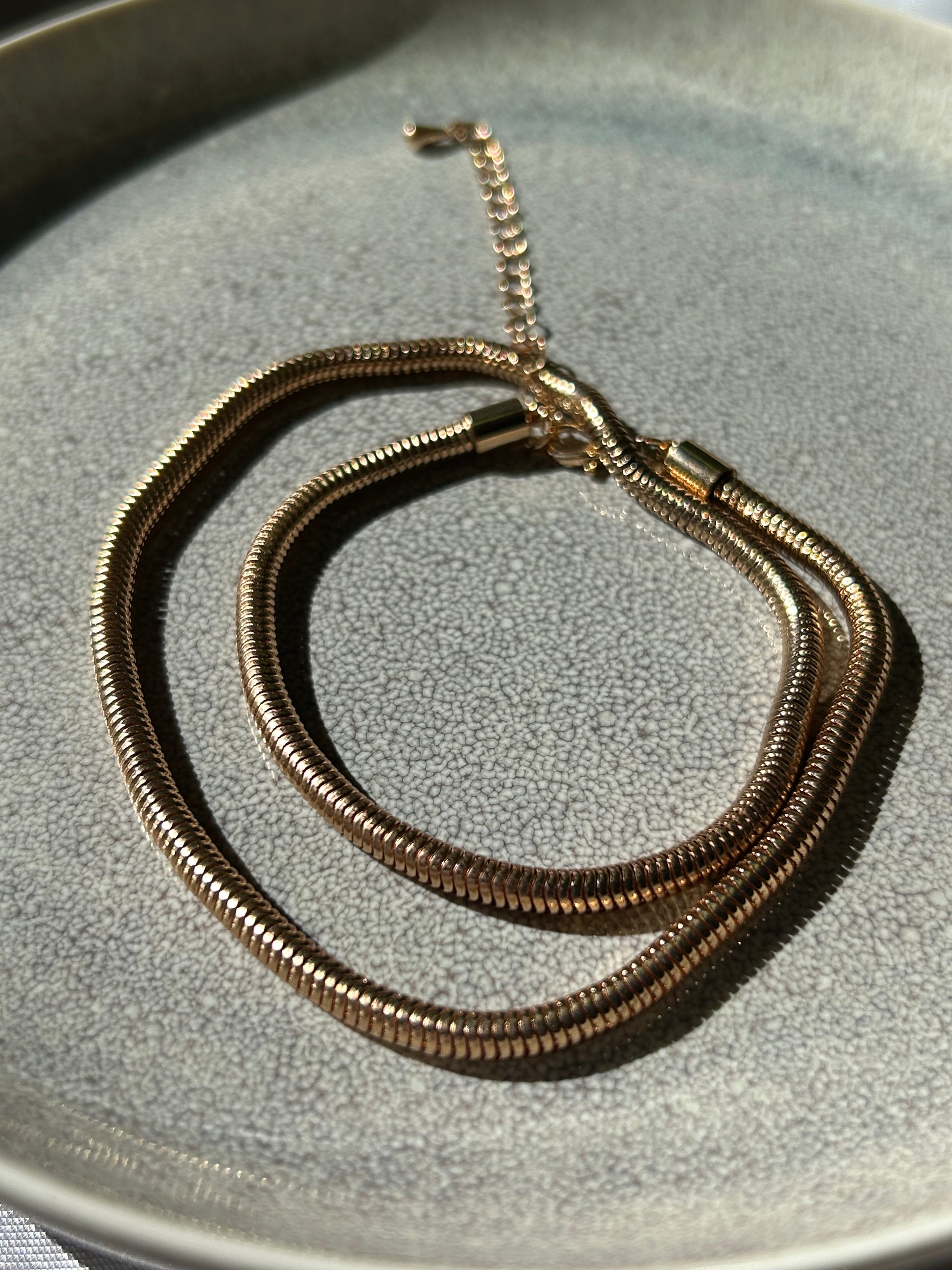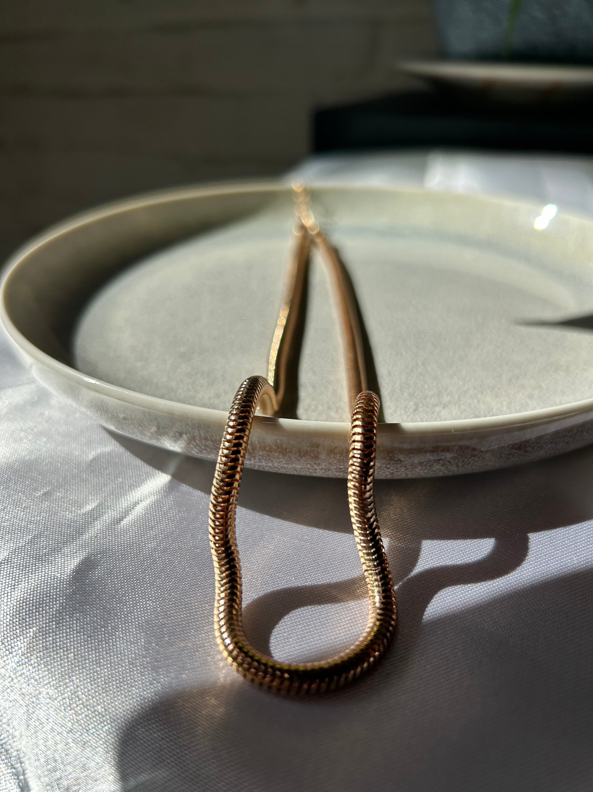 Cadena redonda gruesa 45cm. En acero inoxidable hipo alergénico dorado rosa