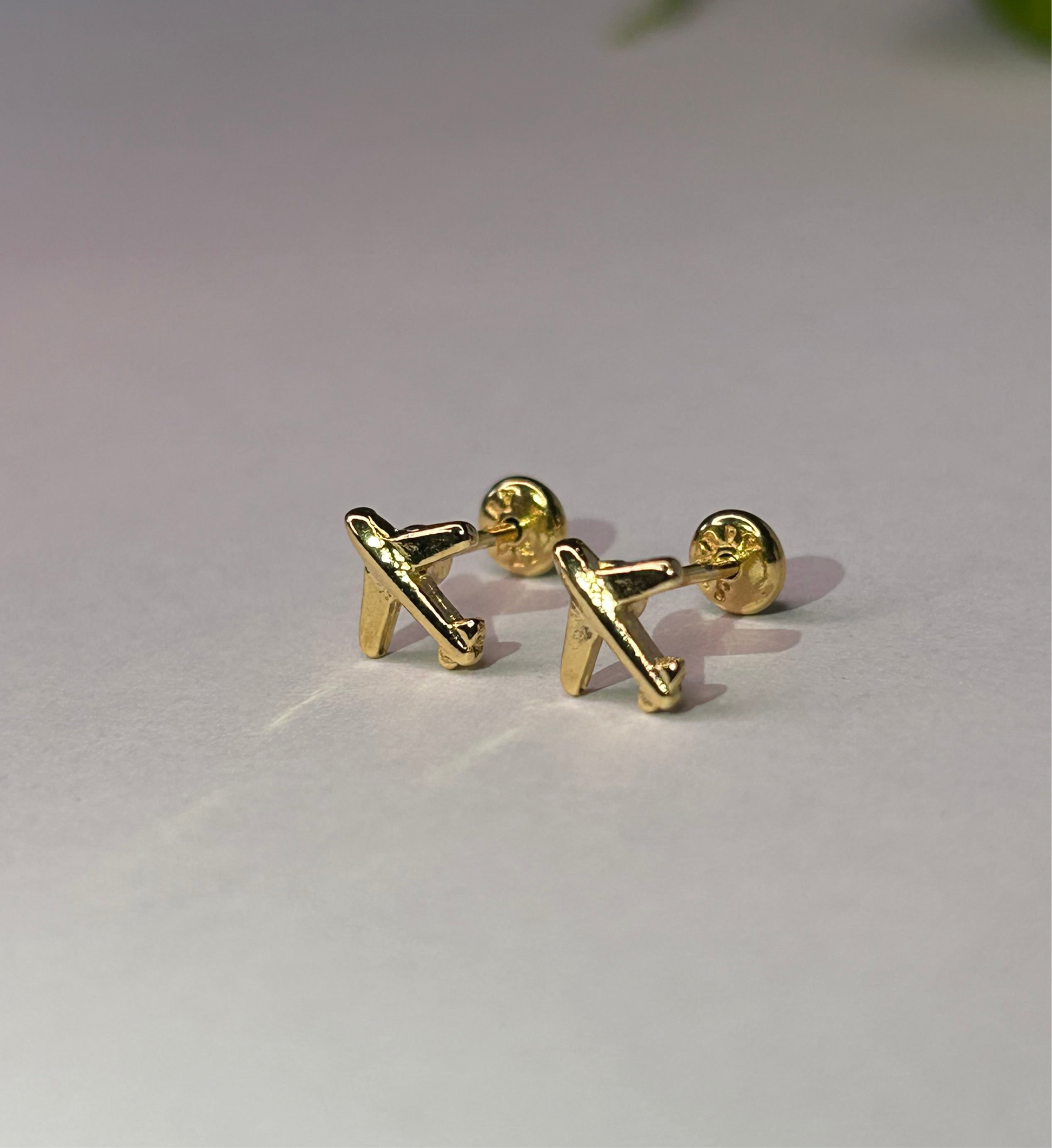 Caravanas mini aviones dorados con cierre tapón¡súper cómodas! Bañadas en oro 18k.