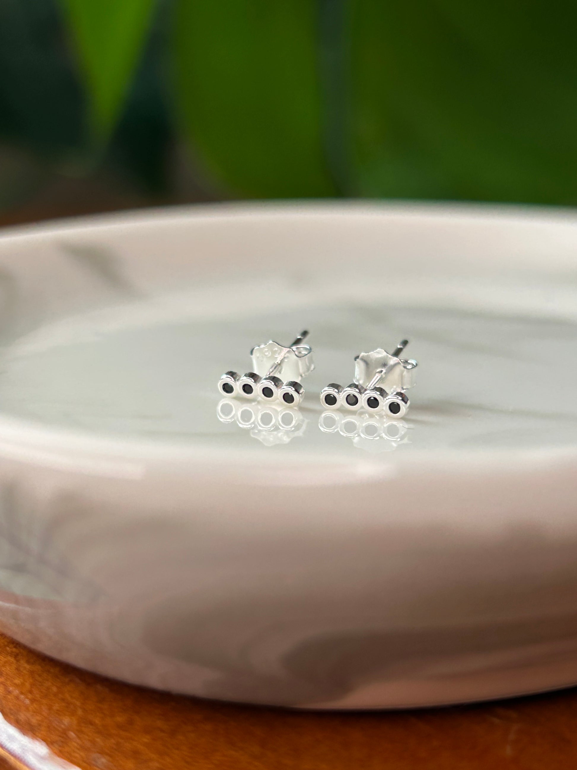 Caravanas mini con 4 circonias negras