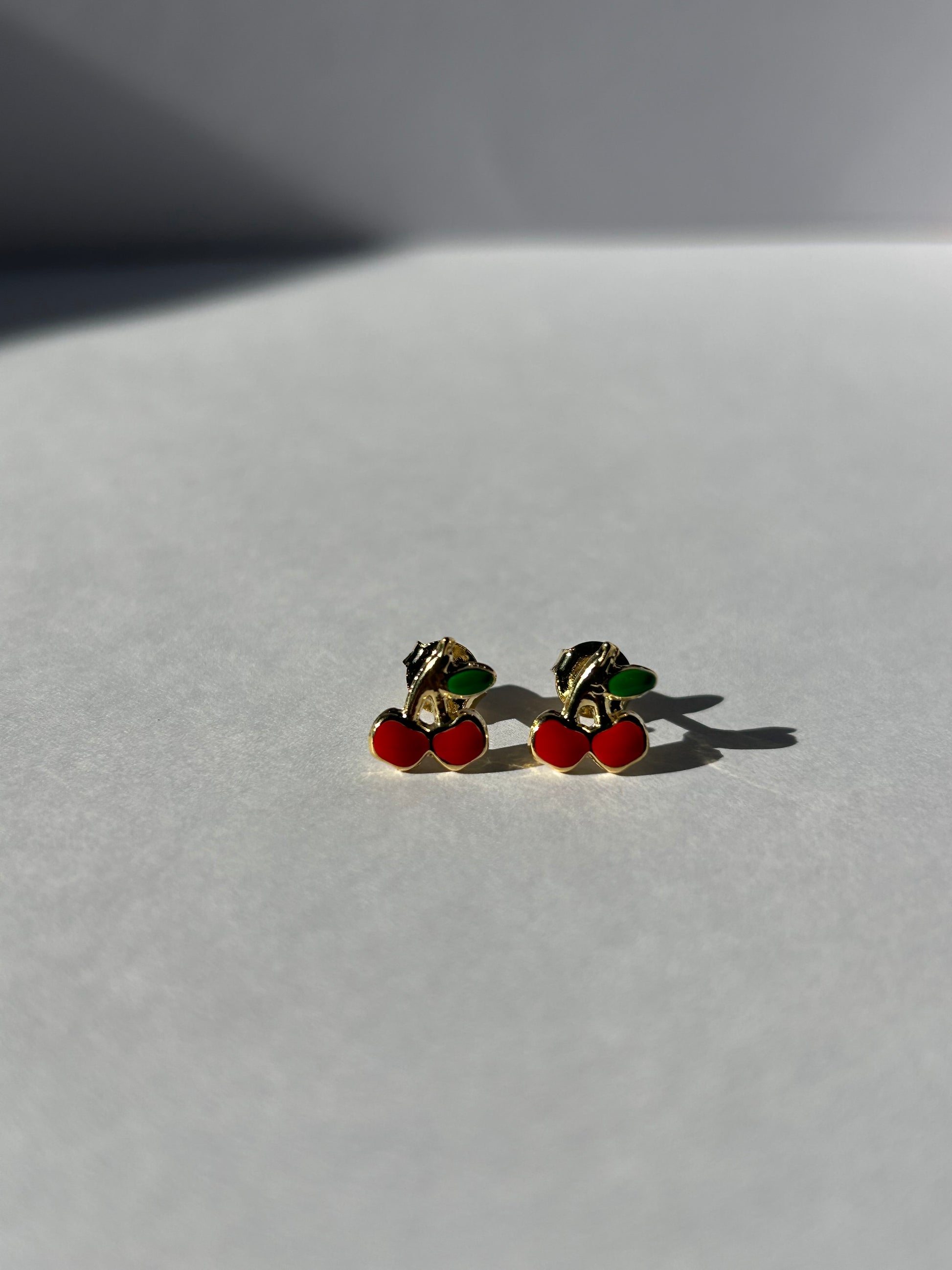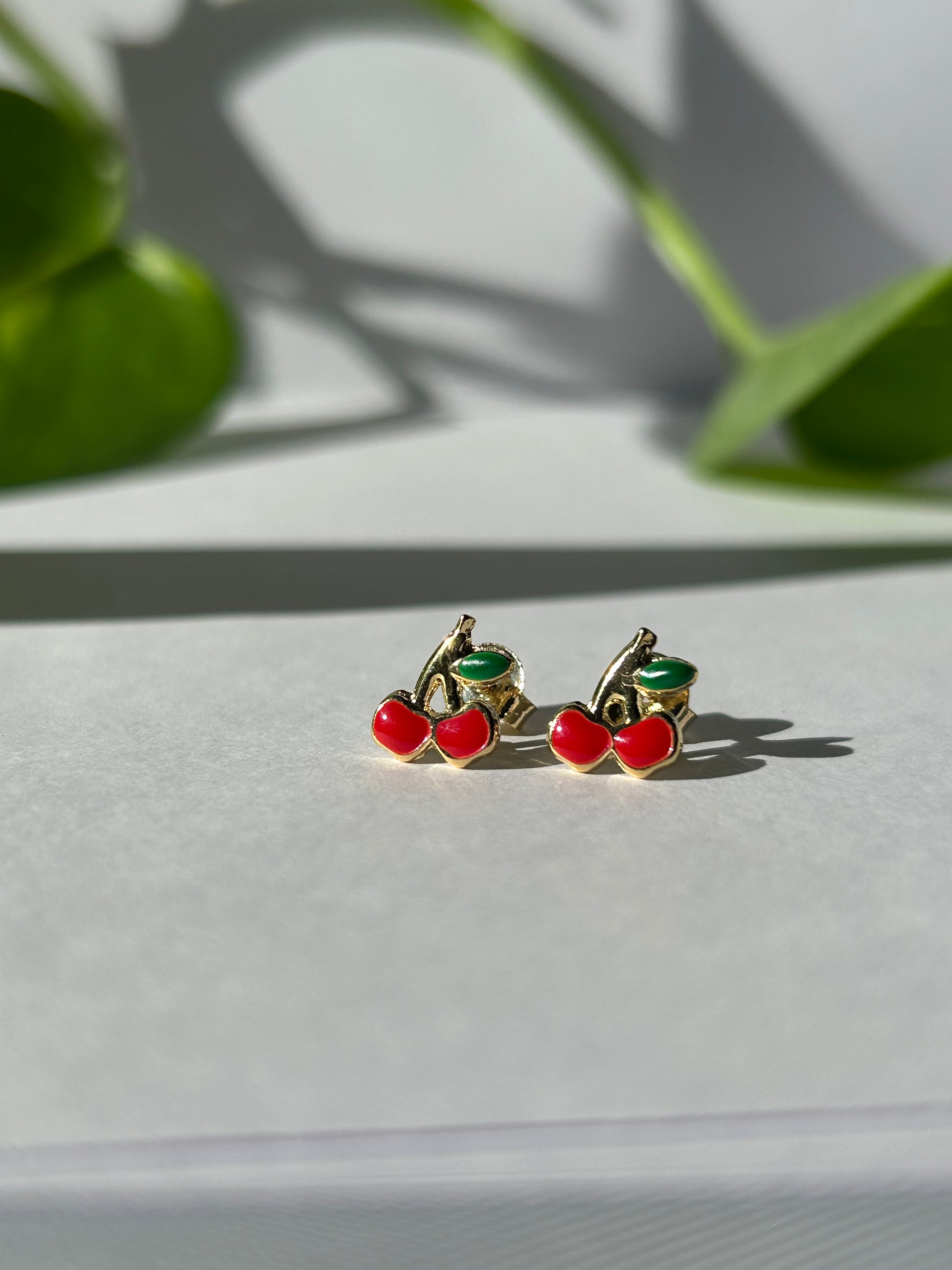 Caravanas bañadas en oro 18k. Detalles de frutita cherry en resina. Cierre mariposa