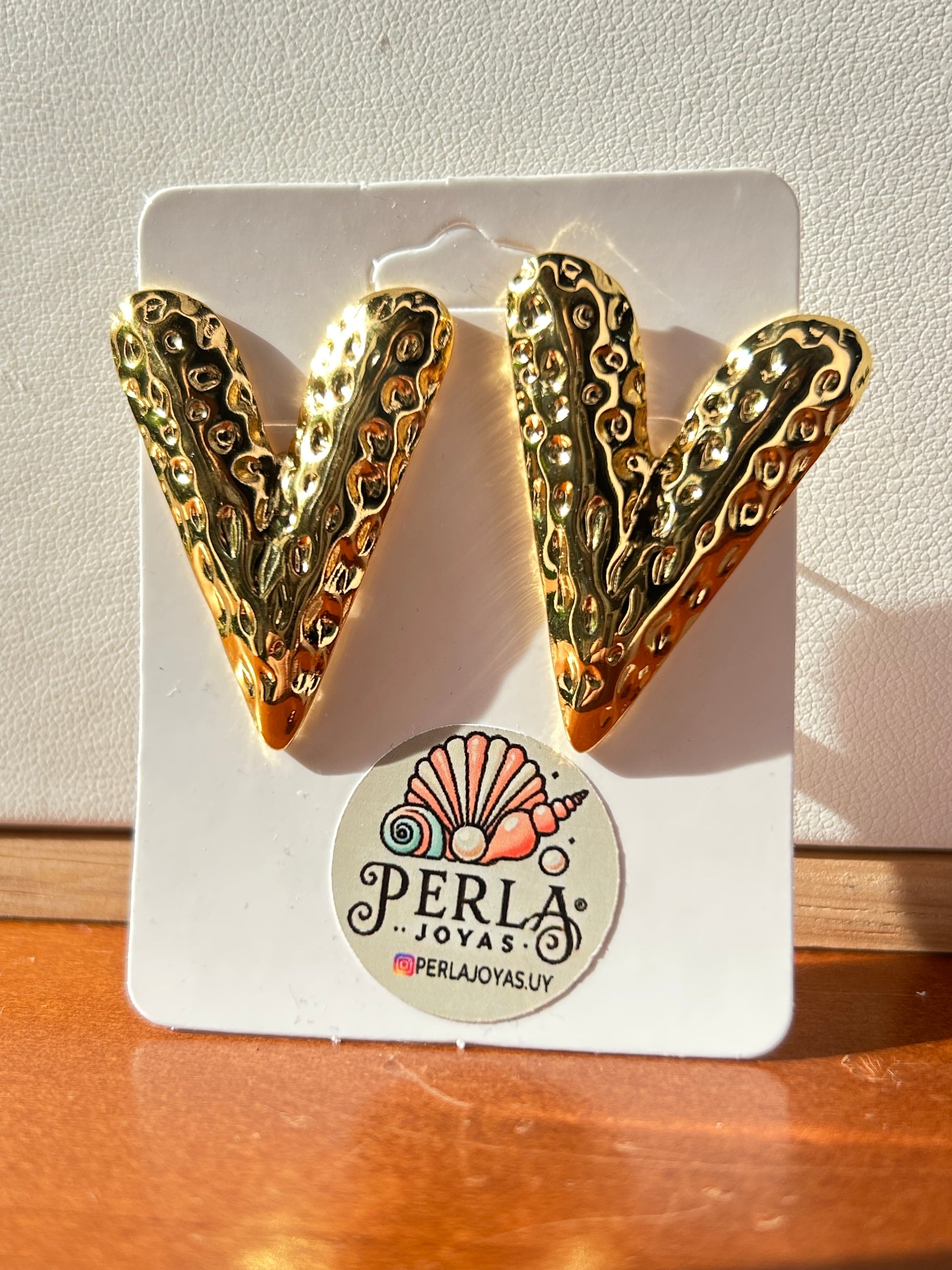 Caravanas con diseño de corazón y relieve. Modelo grande. Cierre mariposa