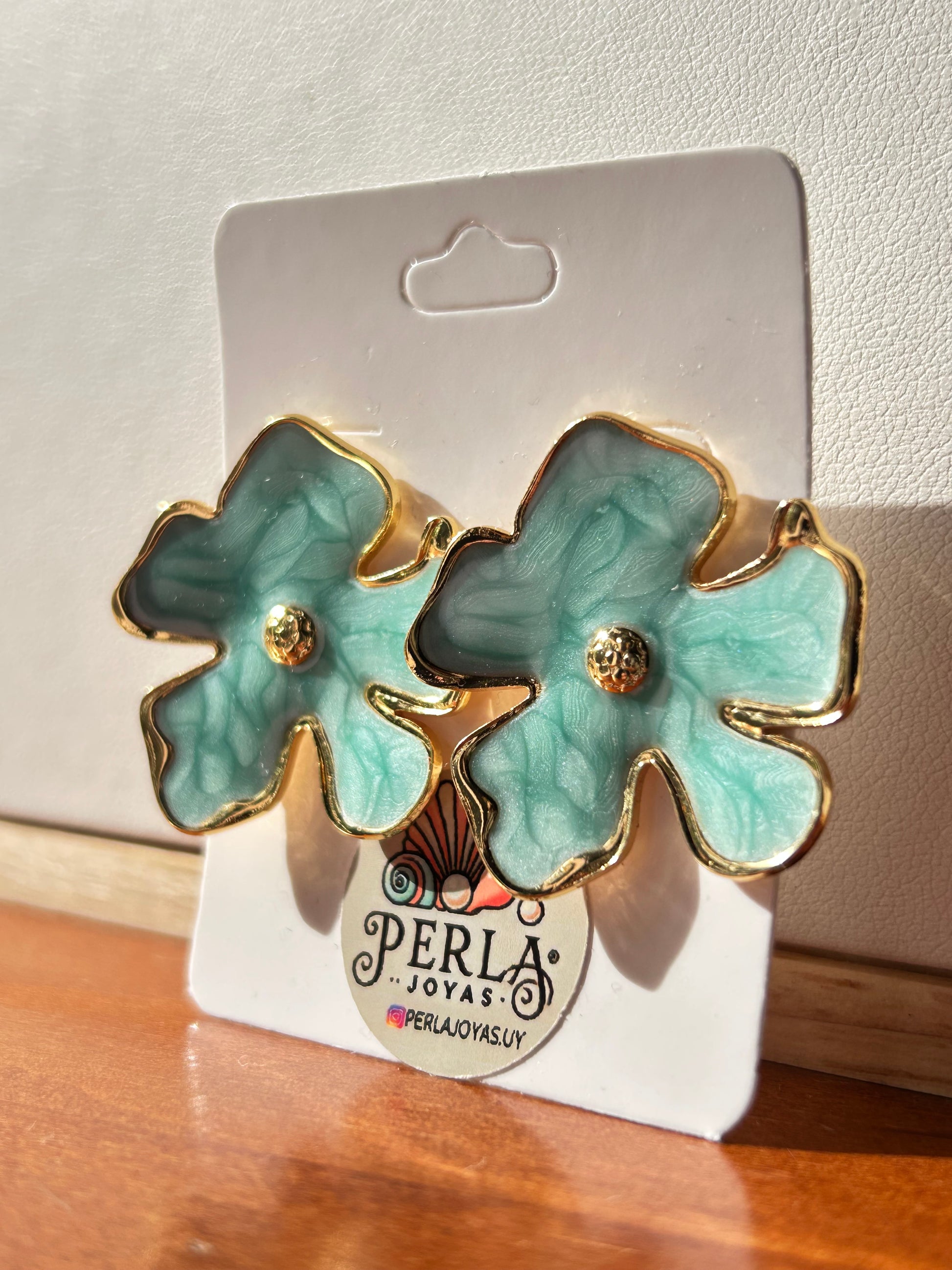 Caravanas diseño de Glor grande con color en resina celeste. Cierre mariposa