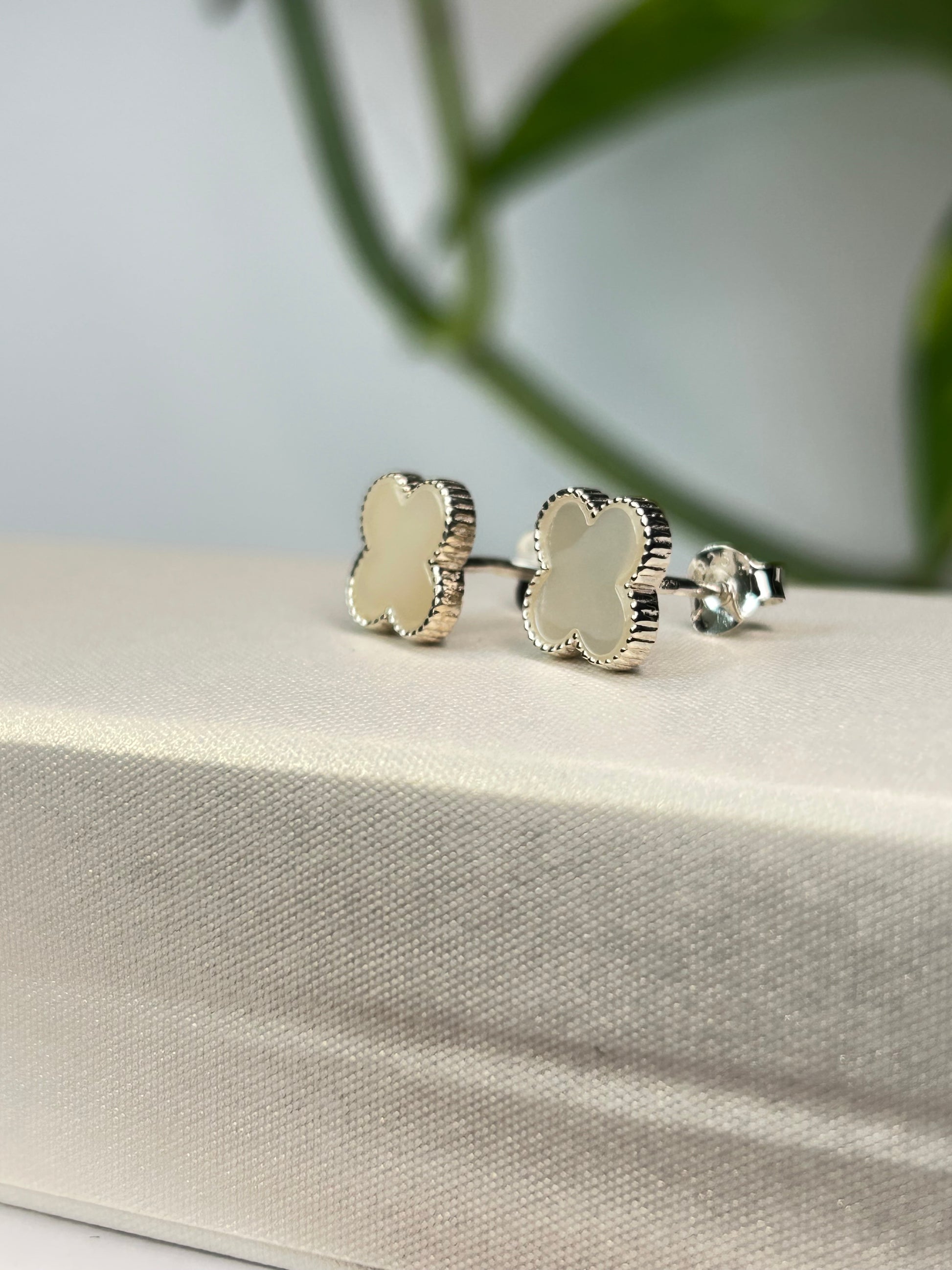 Caravanas flor estilo VC con nácar. Cierre mariposa