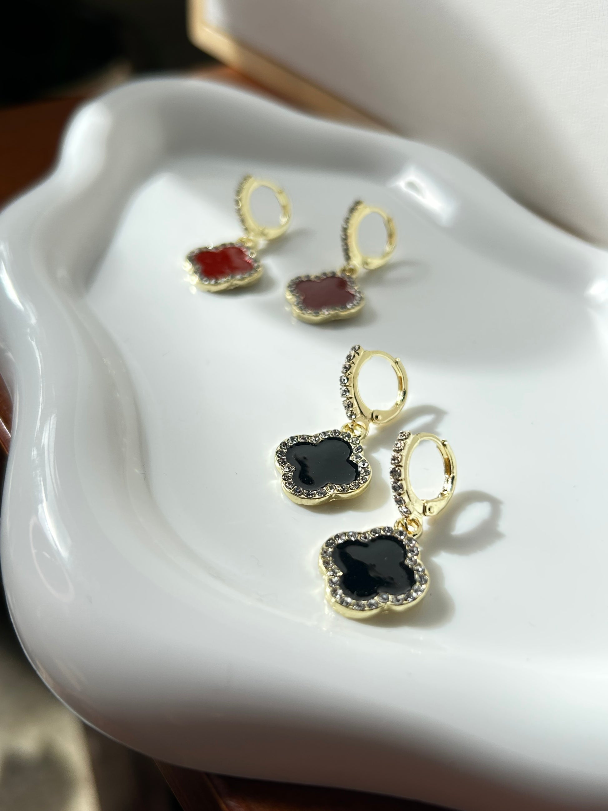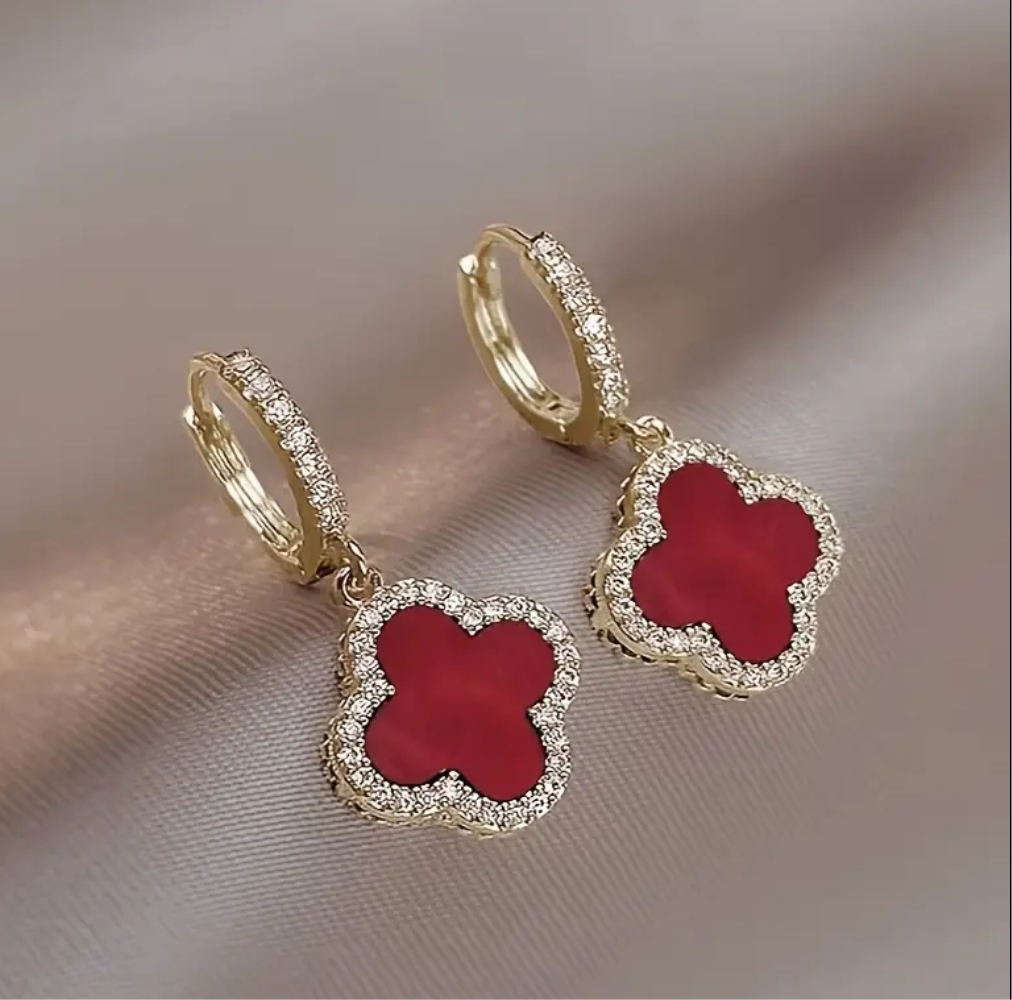 Arete de Trébol para Mujer - caravanas Doradas detalles de strass. , Joyería Elegante para el Día a Día y Fiestas, Accesorio enchapado en oro.
