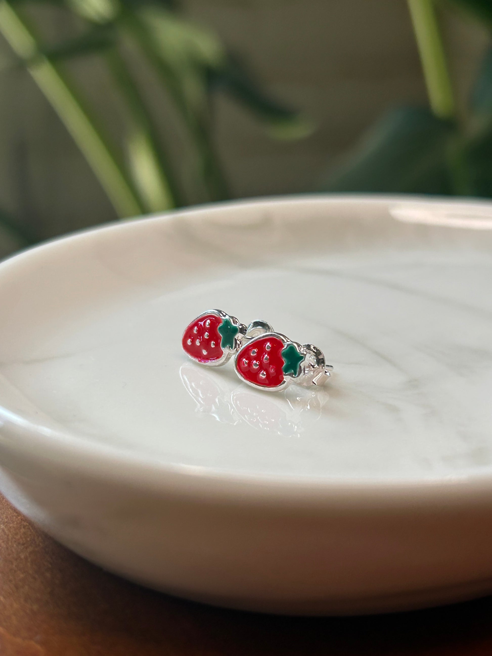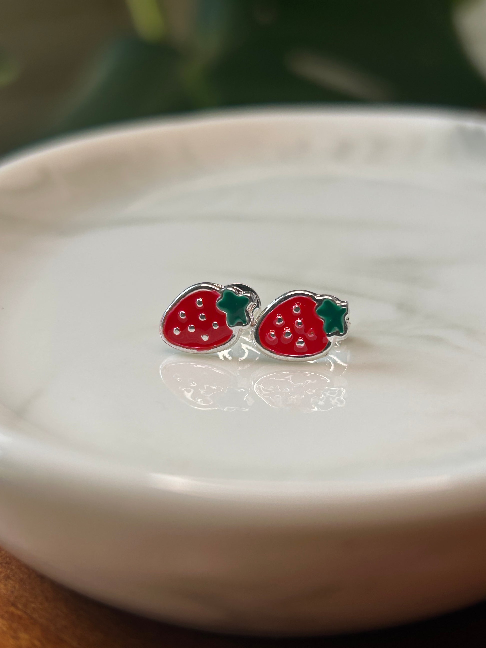 Caravanas frutillitas con resina rojo 1cm