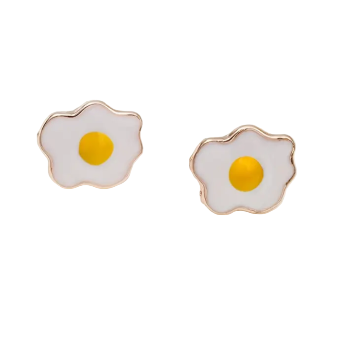 mini caravanas con diseño de huevo frito . Enchapadas en oro. Medidas aproximadas 1x1,2cm.