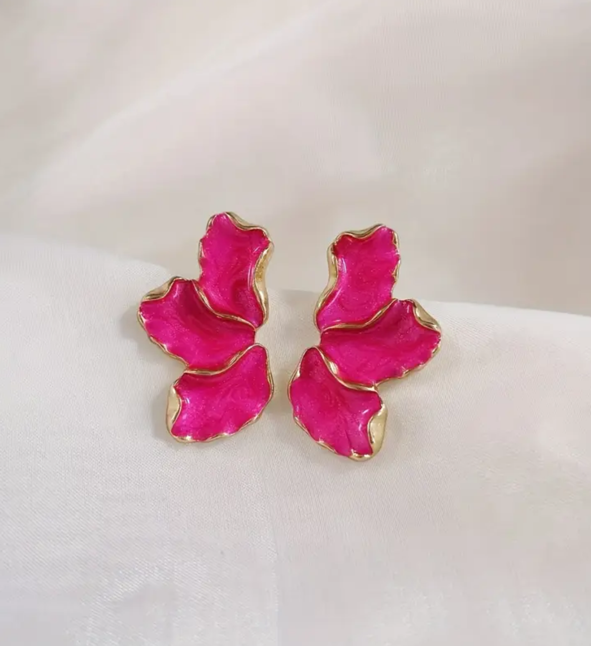 Hermosas caravanas con diseño de media flor. Medidas aproximadas 2,9x1,7cm.