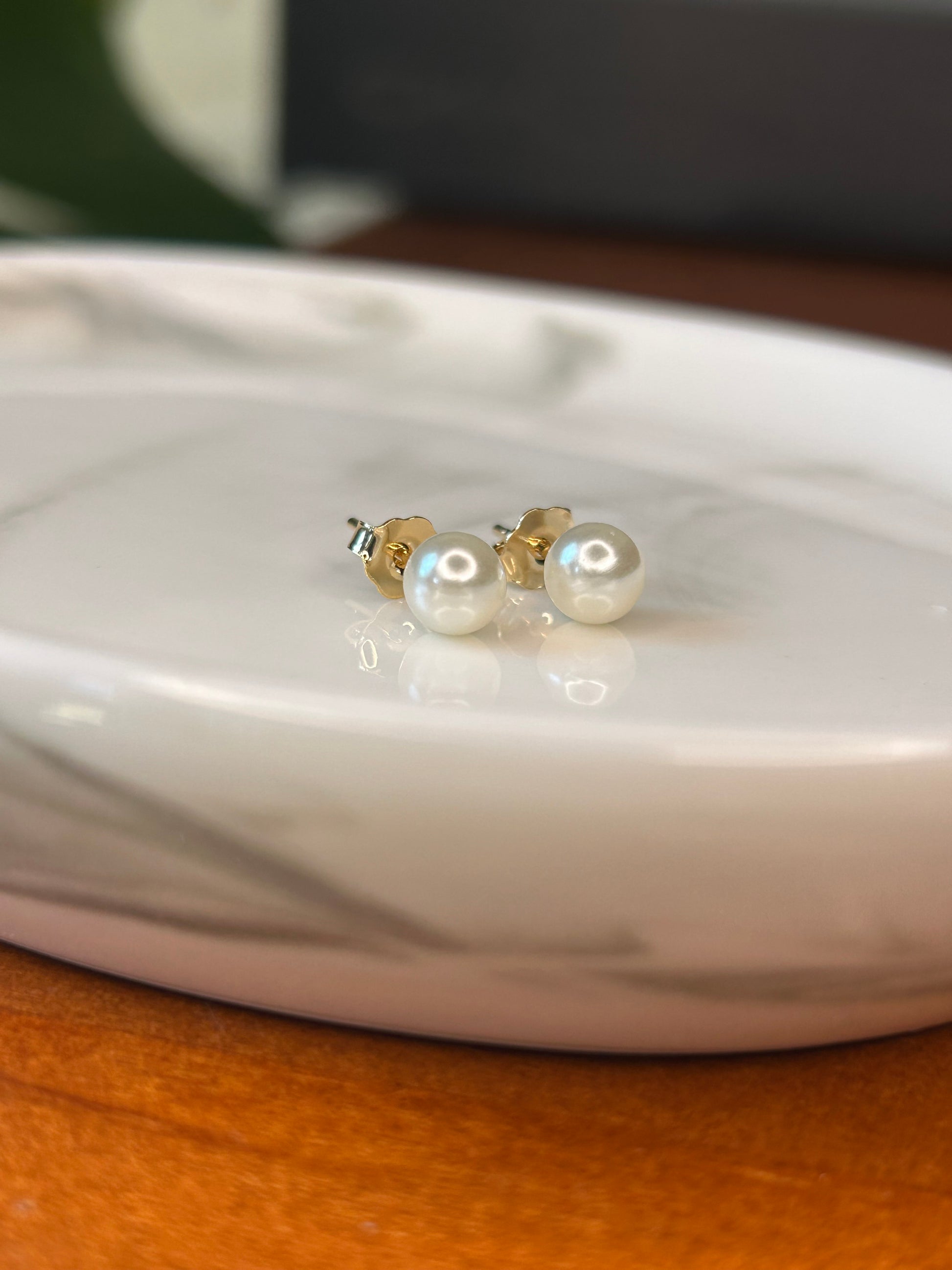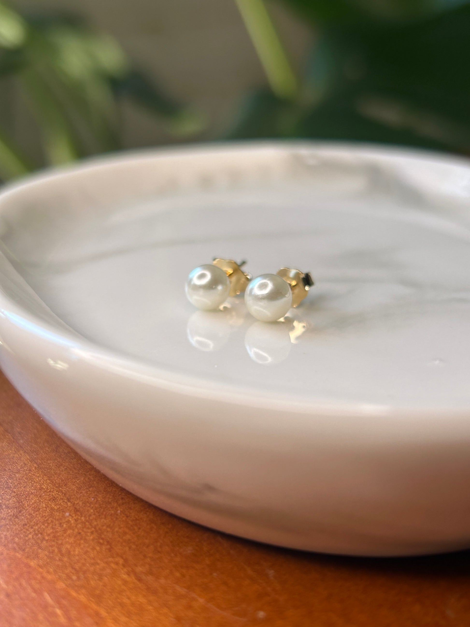 Caravanas perlas pequeñas con pasador enchapado en oro