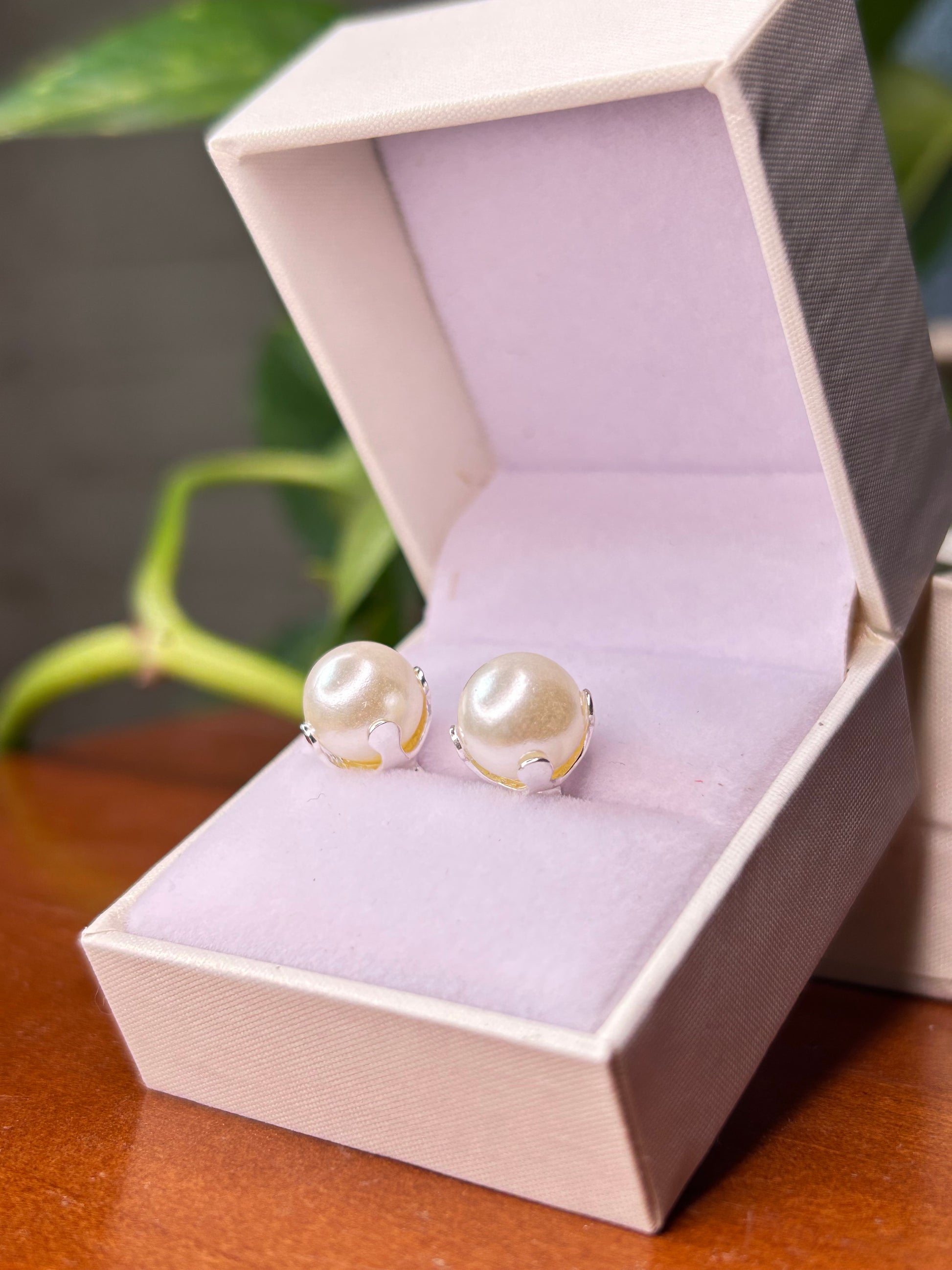Delicadas caravanas con diseño de perlas de fantasía engarzadas en acero blanco. Medidas de las perlas 8mm.