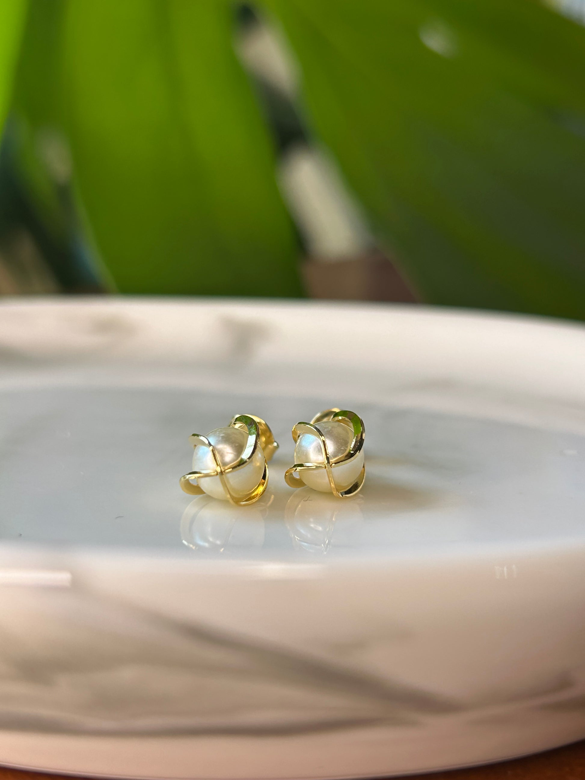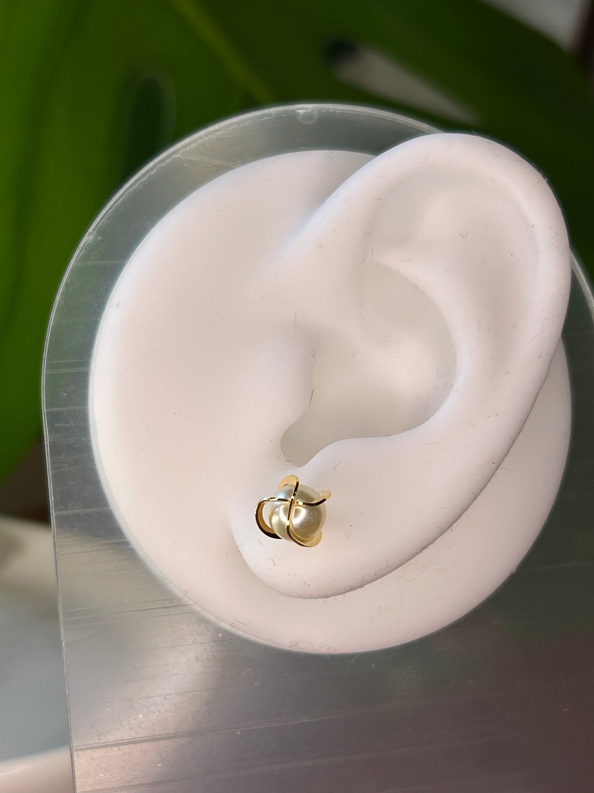 Caravanas perlas españolas 7.5 MM. Con alto baño de oro 18k de 5 mm para alta durabilidad