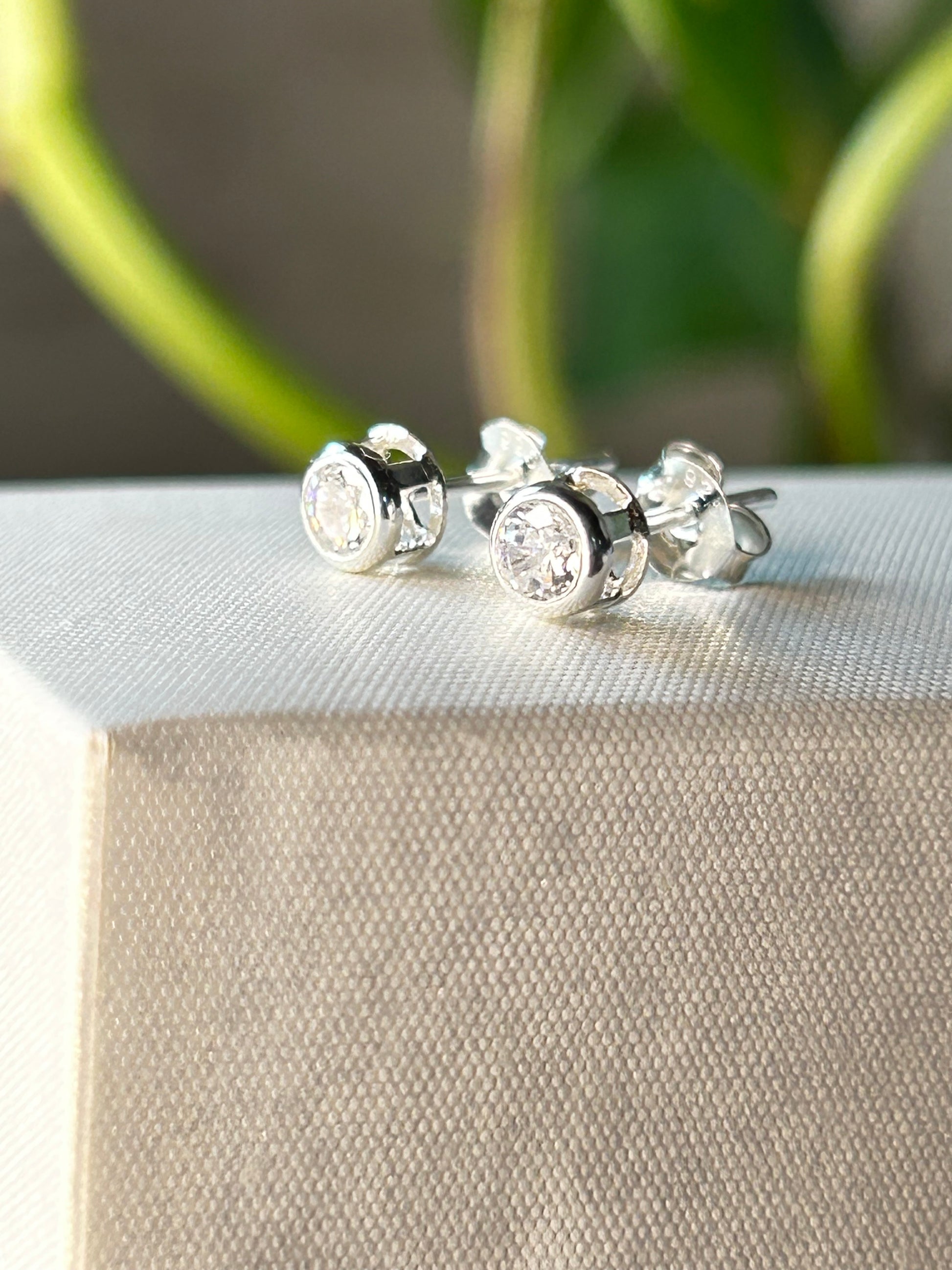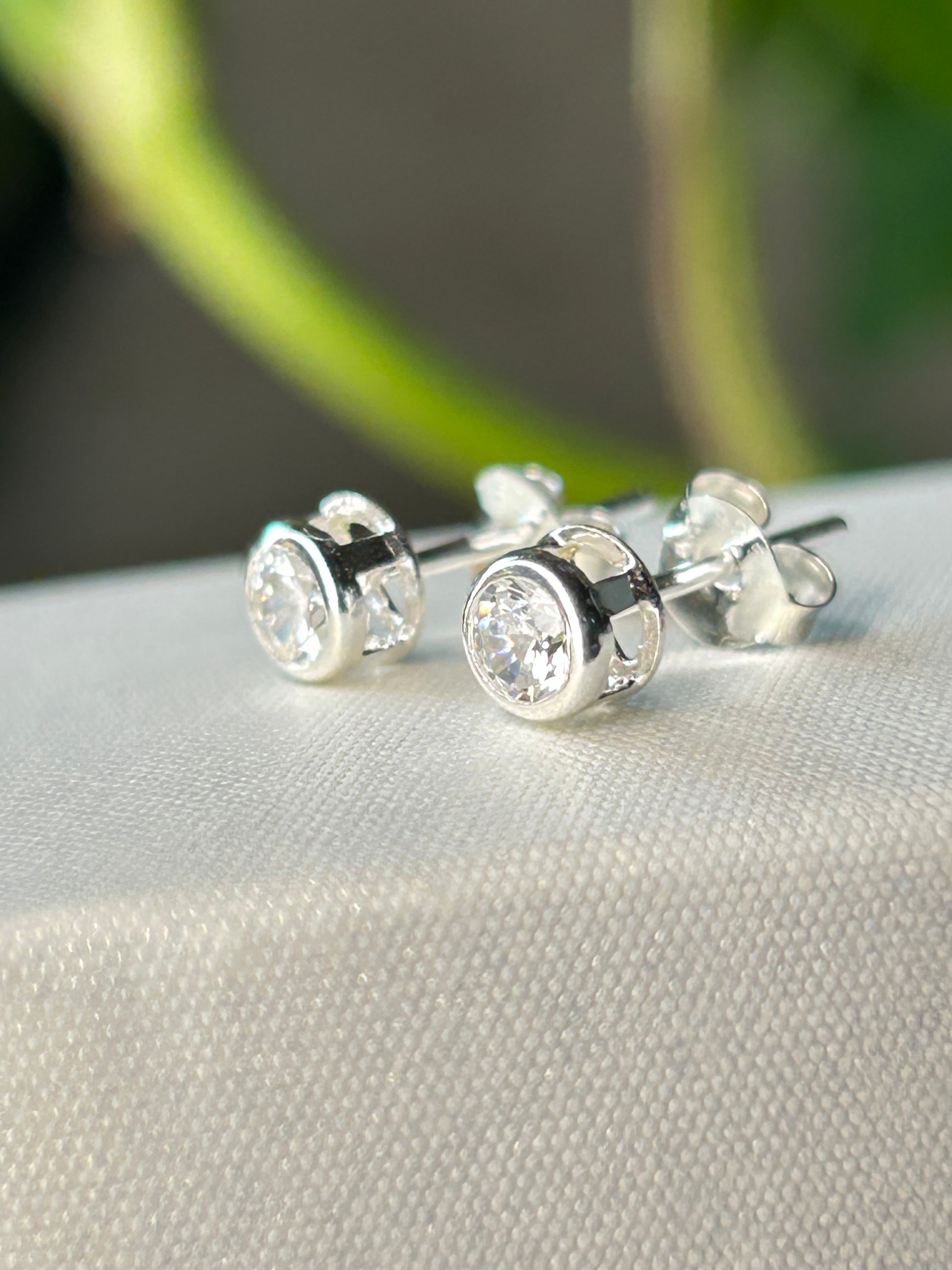 Caravanas diseño punto de luz cristal de 5mm. Cierre mariposa. Fabricadas en plata 925. ¡Clásicas!