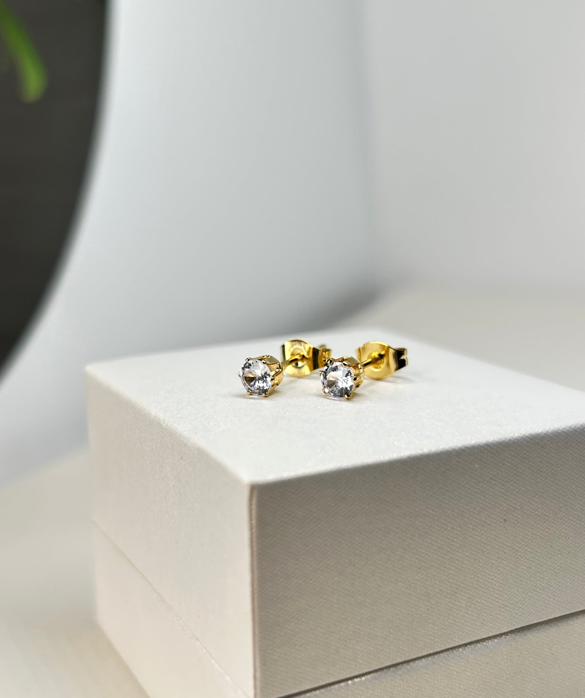 Mini caravanas punto de luz en acero dorado hipo alergénico. Cierre mariposa