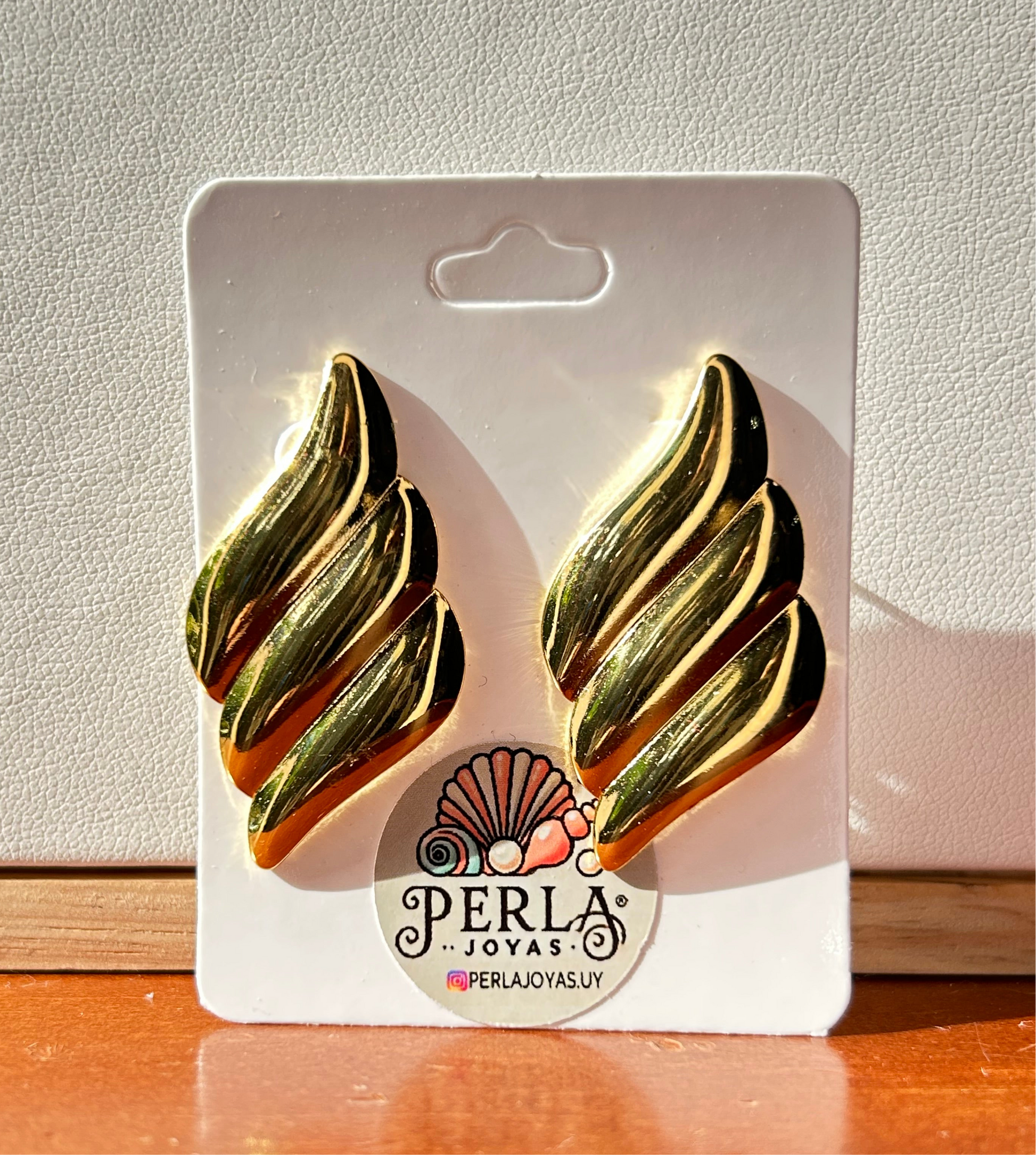 Caravanas con diseño de ondas irregulares . Fabricado en acero inoxidable dorado.