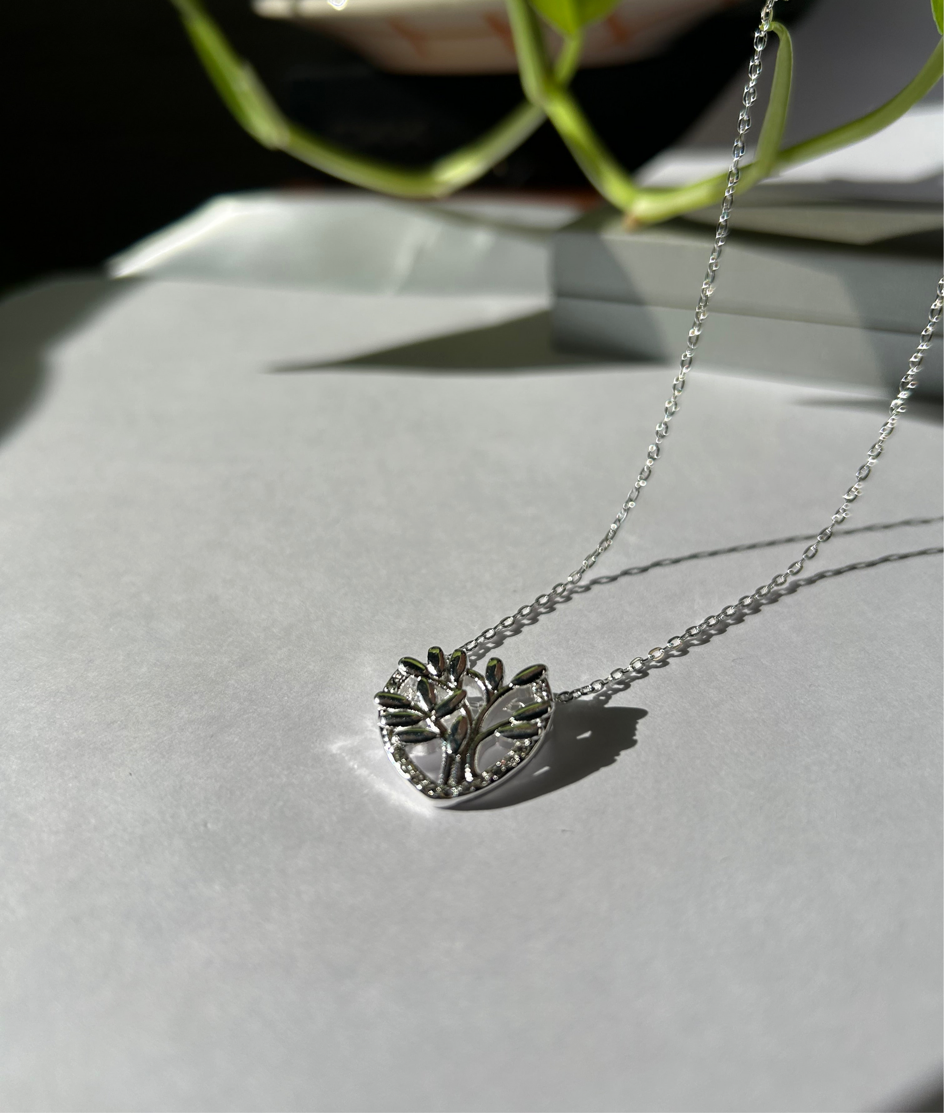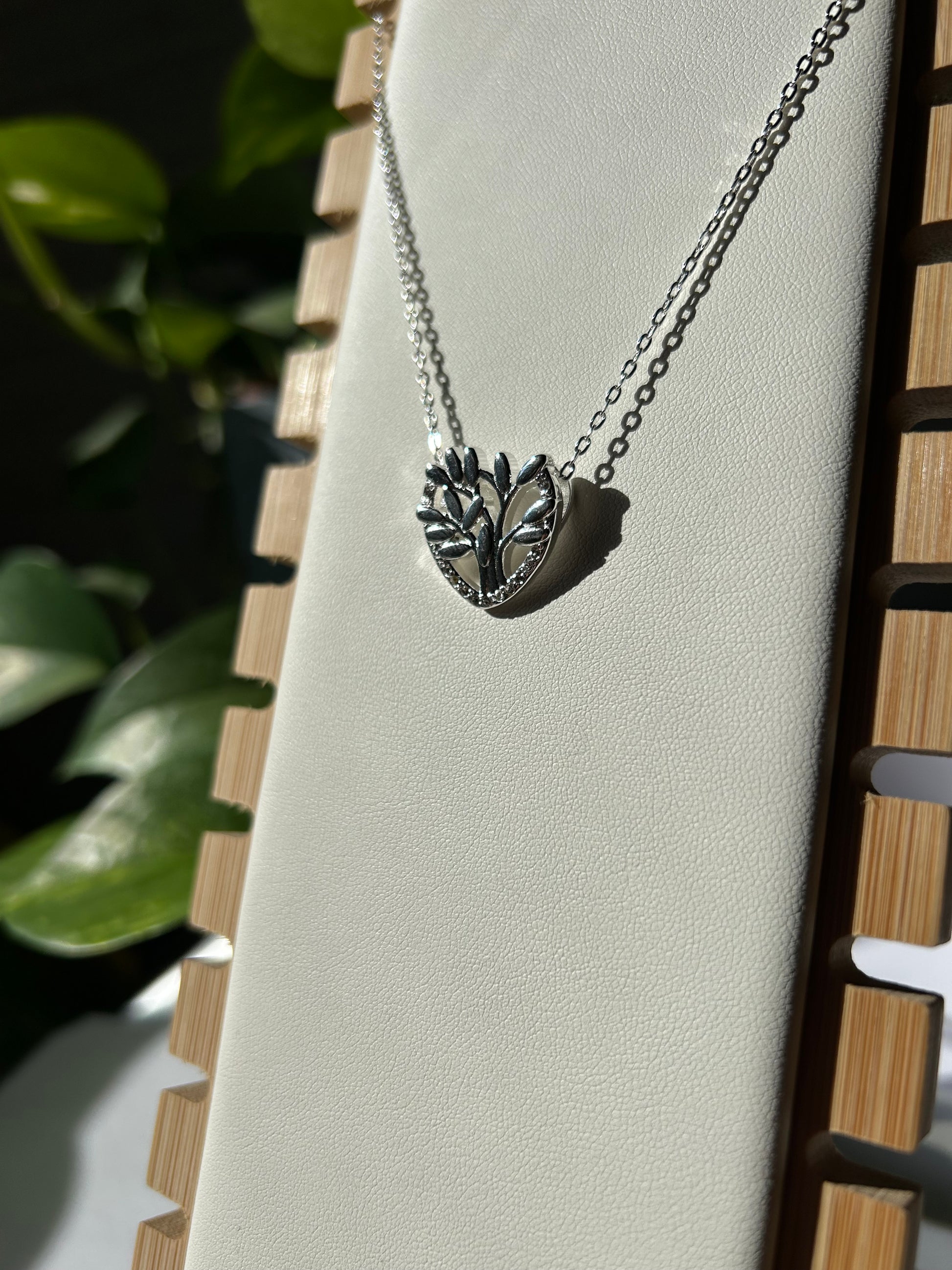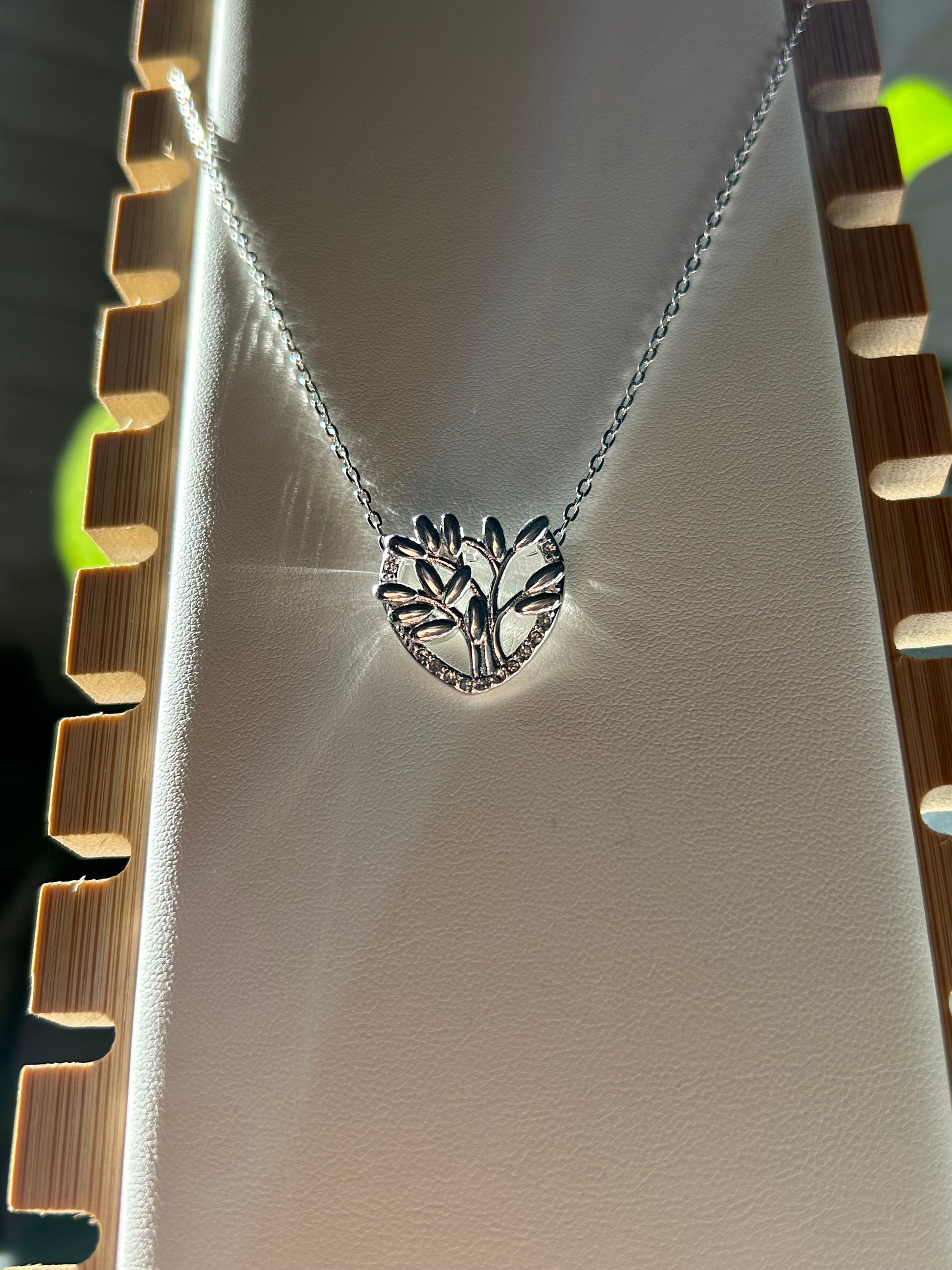 Conjunto corazón árbol de la vida 45 a 50 cm. Cadena Fabricada en Acero Quirúrgico 316L Con Baño Plateado
