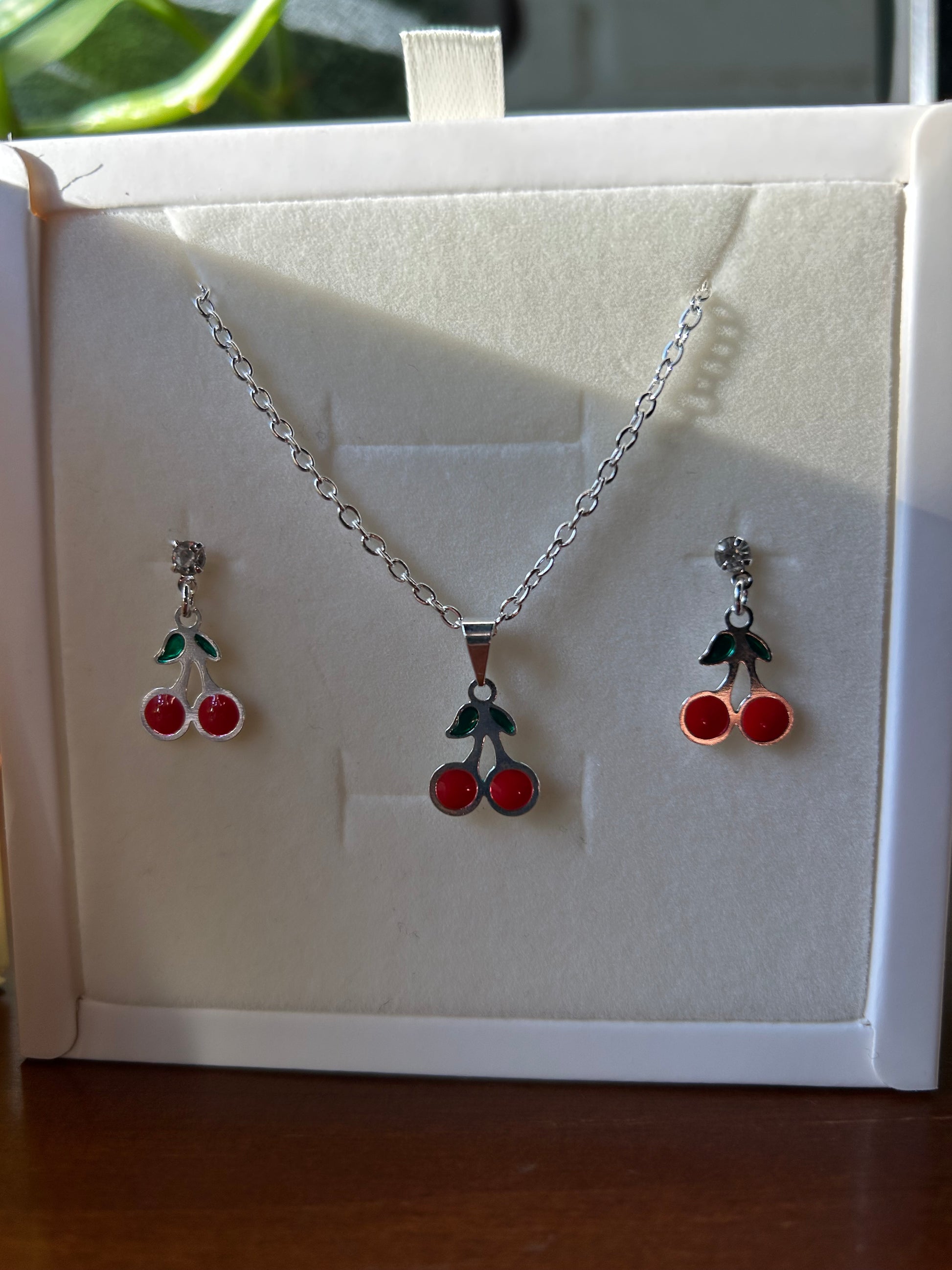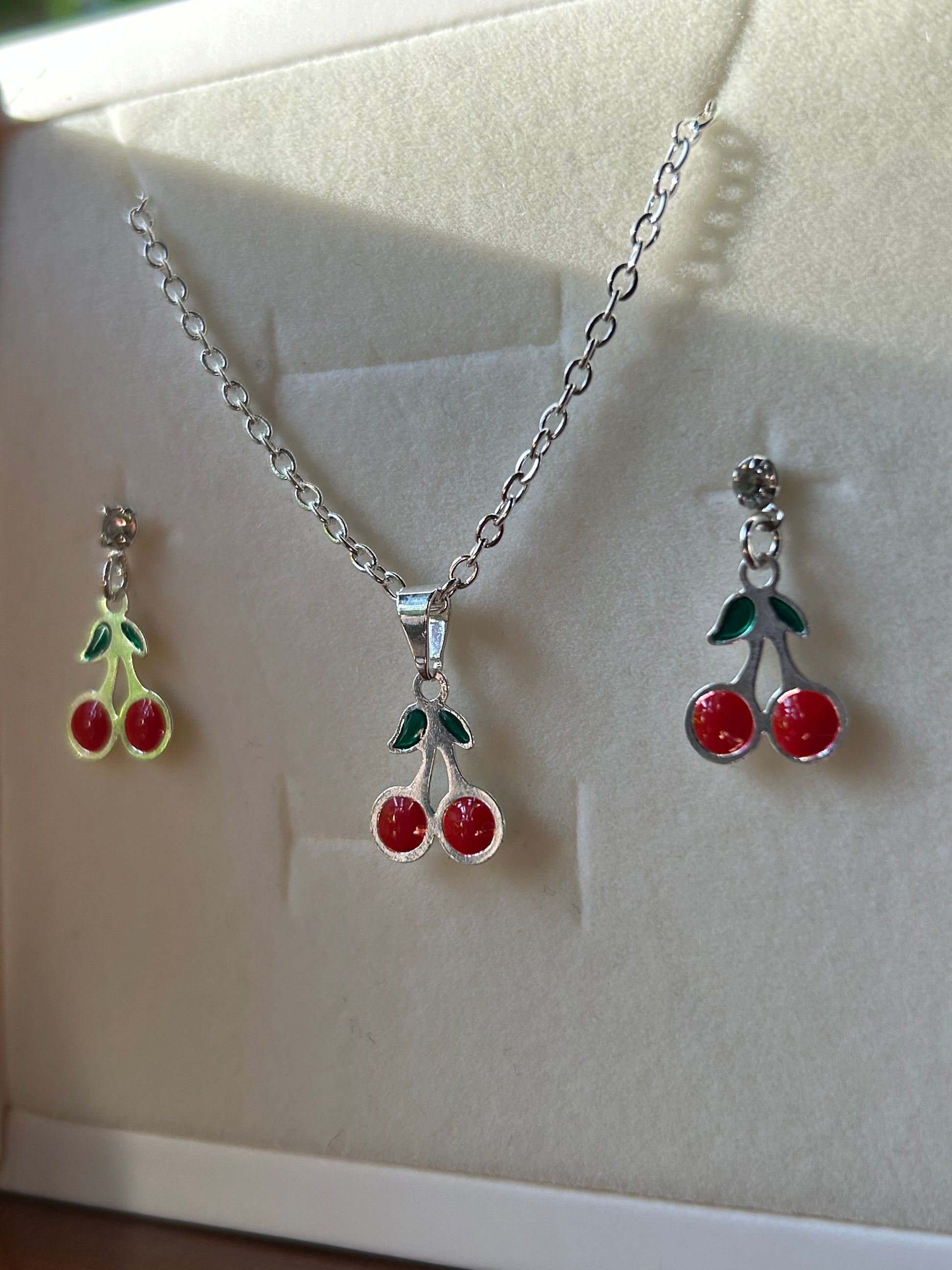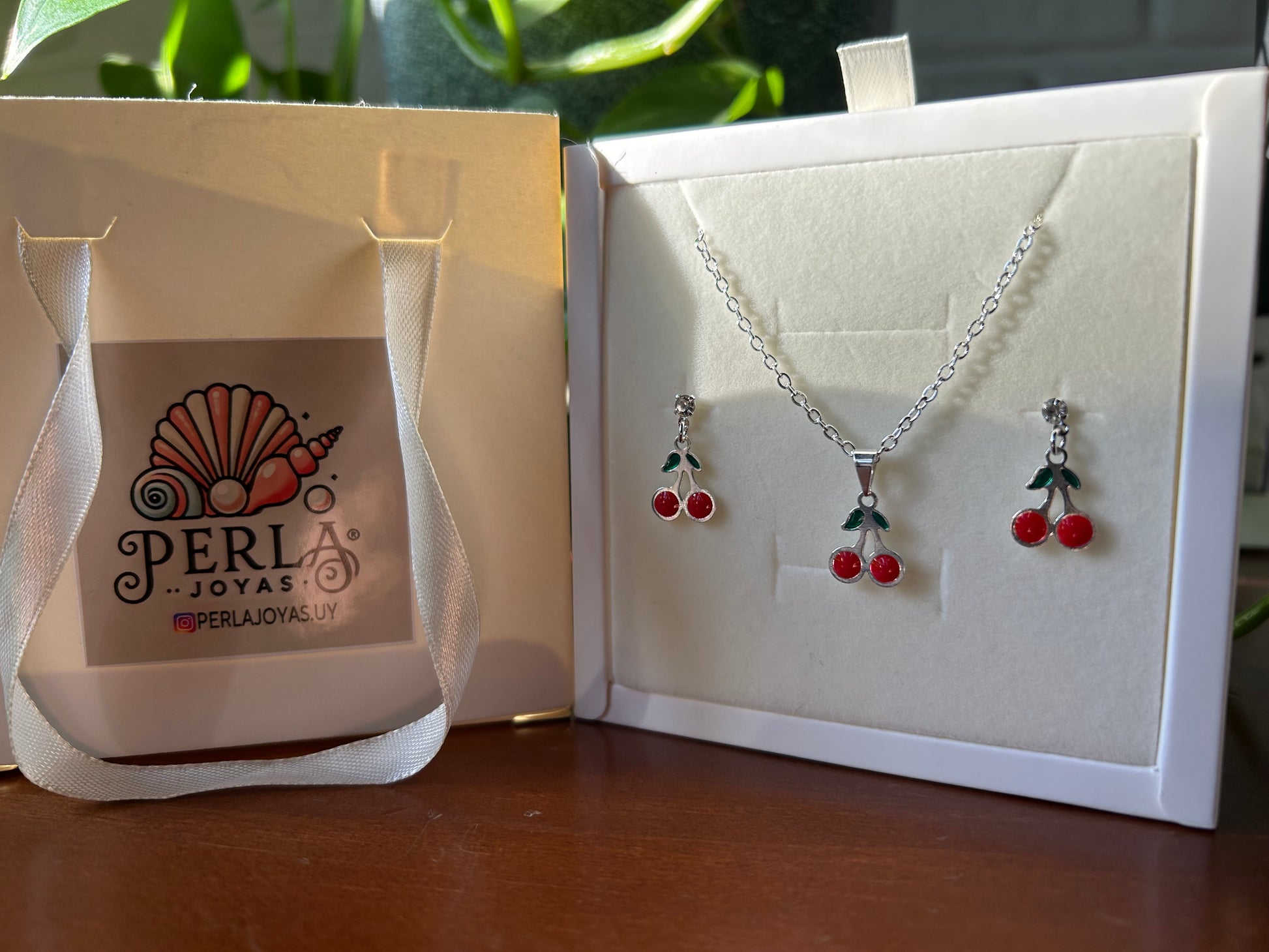 Conjunto dije más cadena y par de caravanas con cierre mariposa. Resina en colores y acero bañado en plata
