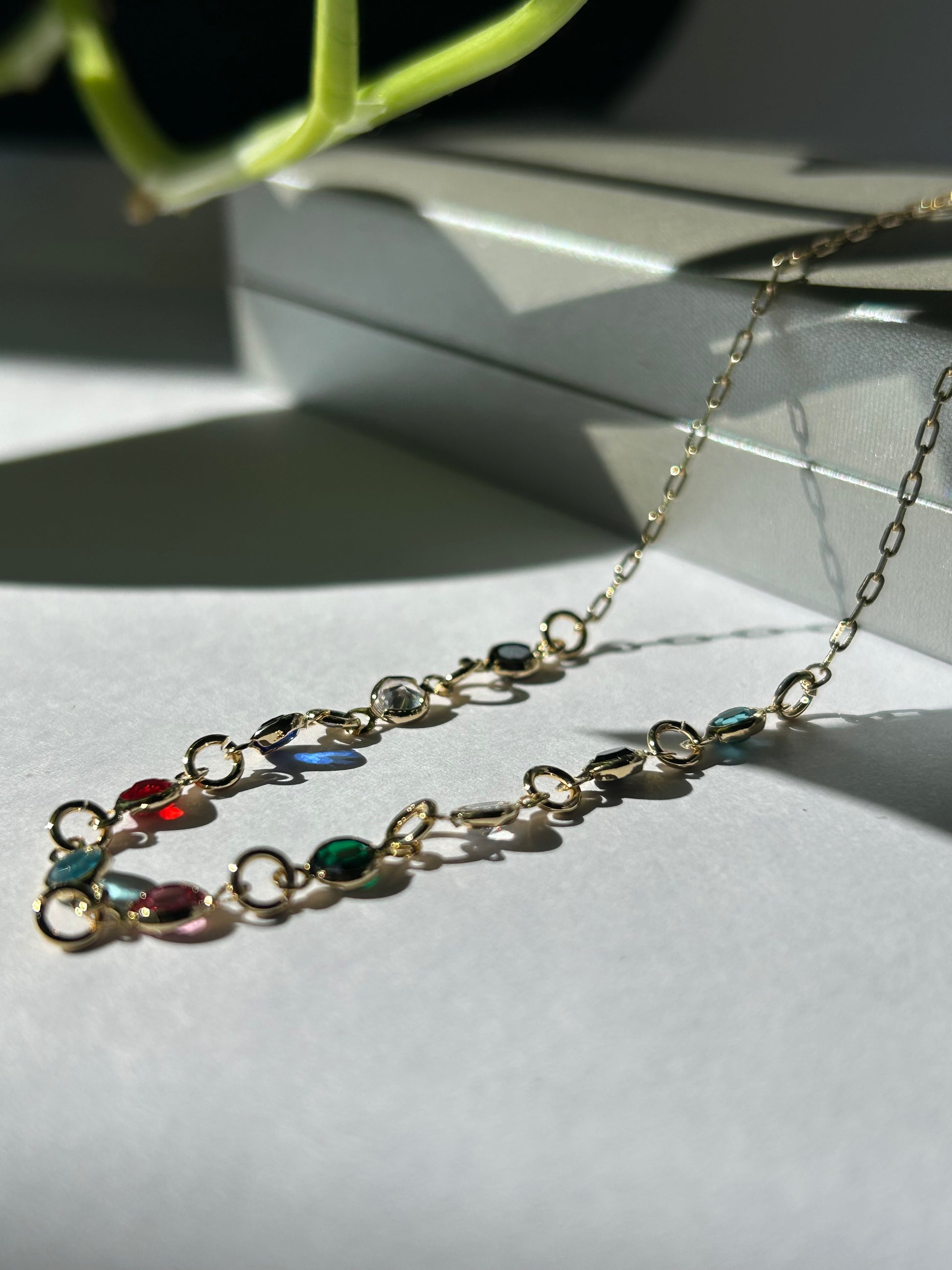 Conjunto cubic multicolor . Cadena bañada en oro 18k .