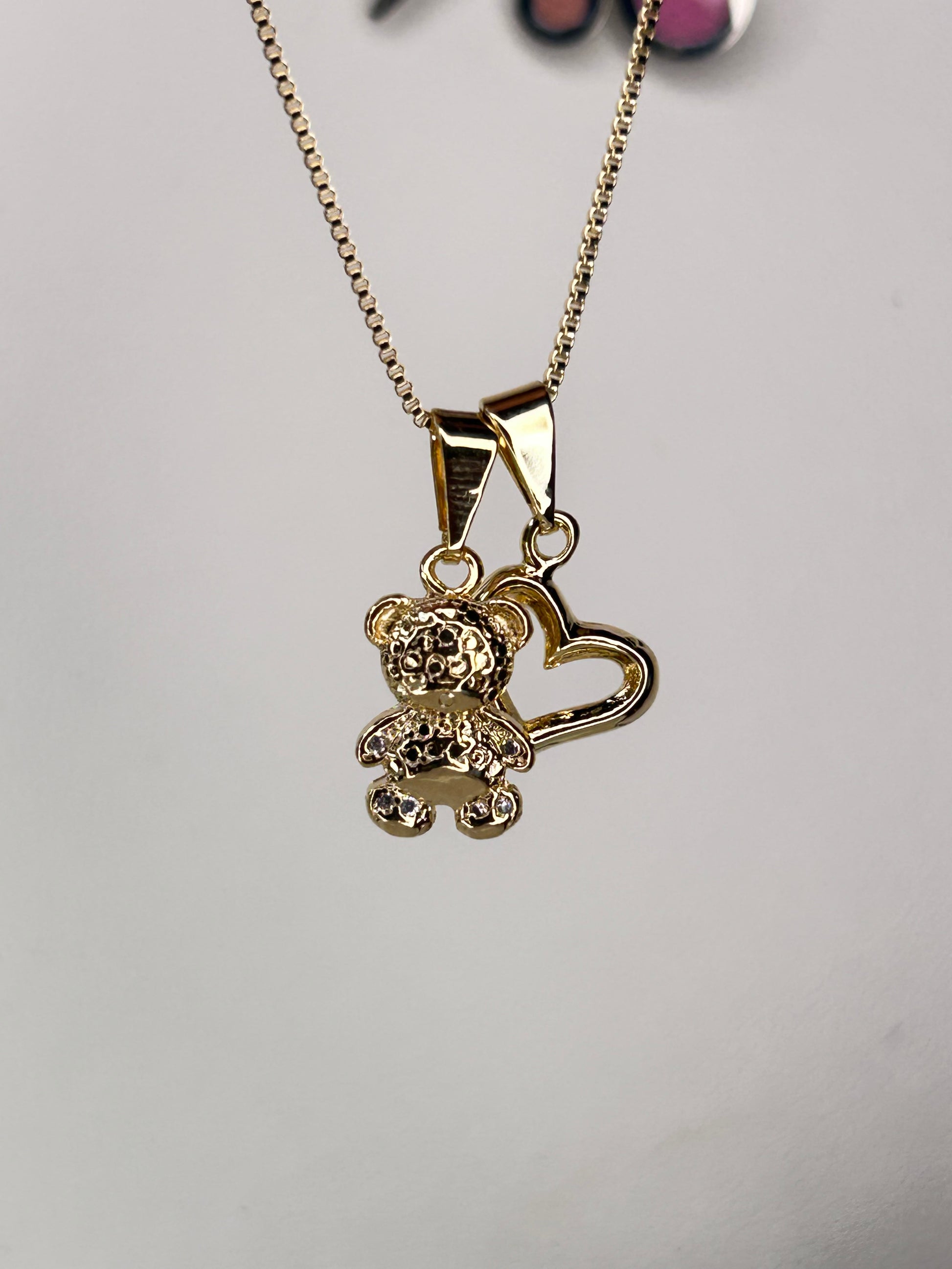 Conjunto dos dijes + cadena veneciana 40cm. Bañado en oro .