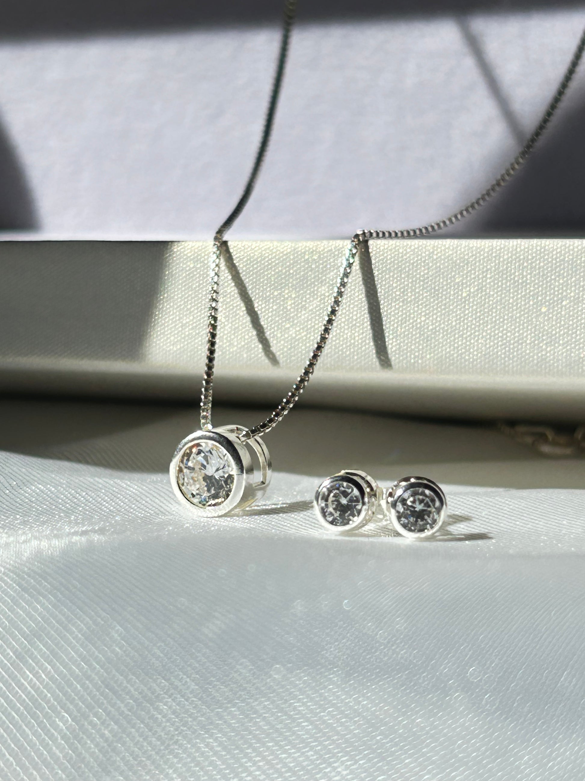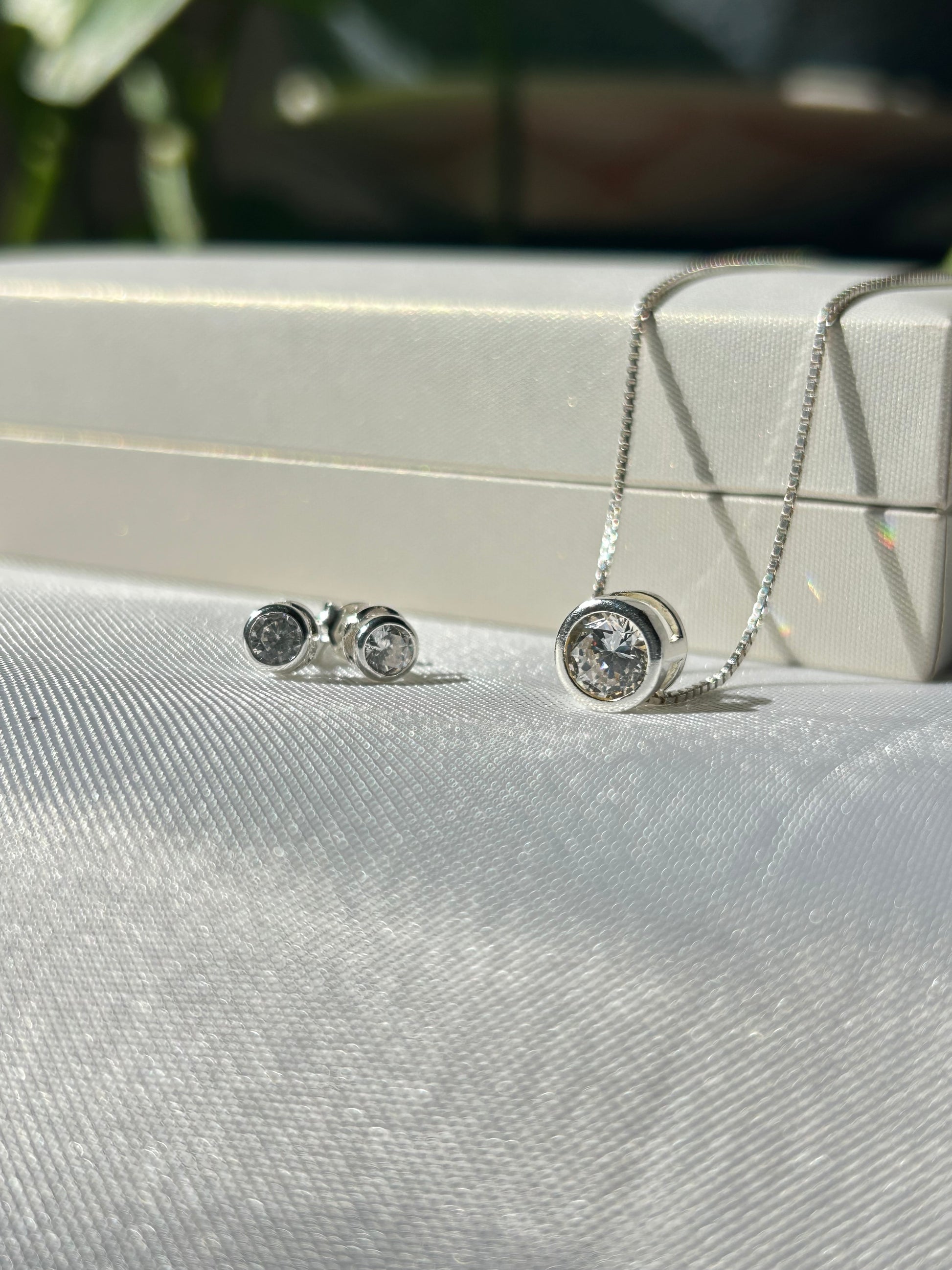 Hermoso y delicado conjunto de cadena y dije + caravanas 5mm. Clásicas y elegantes. Ideal para uso diario