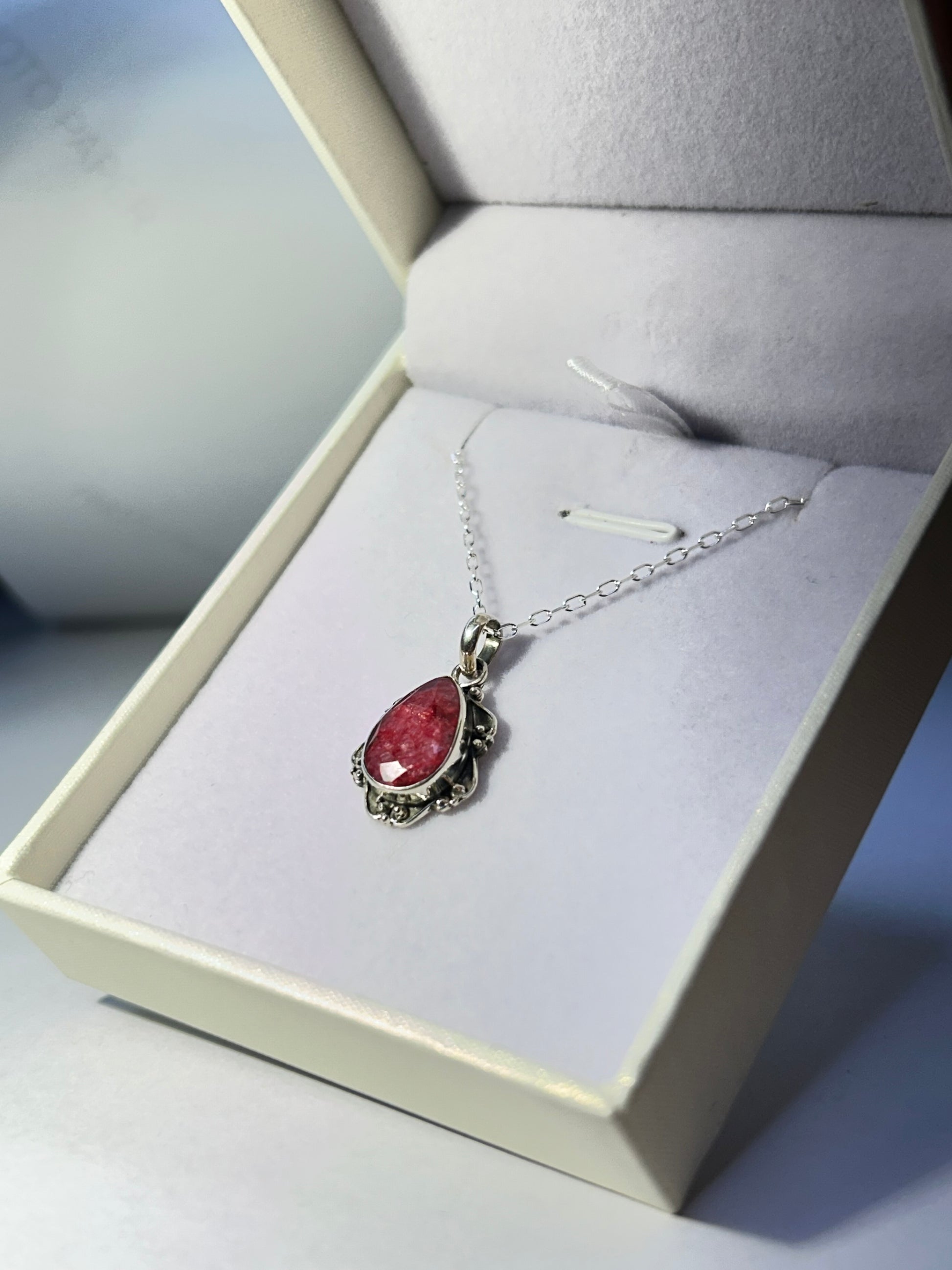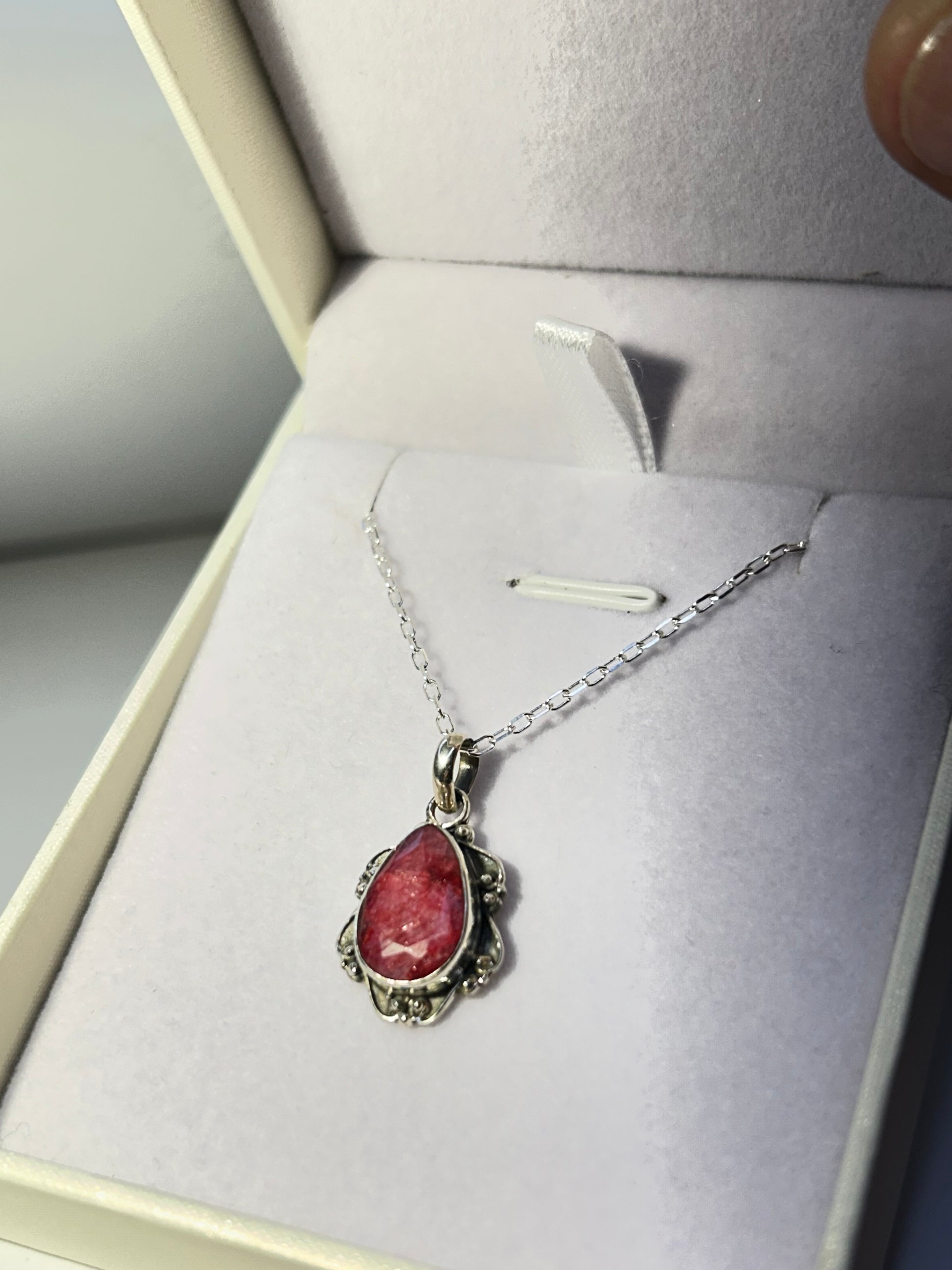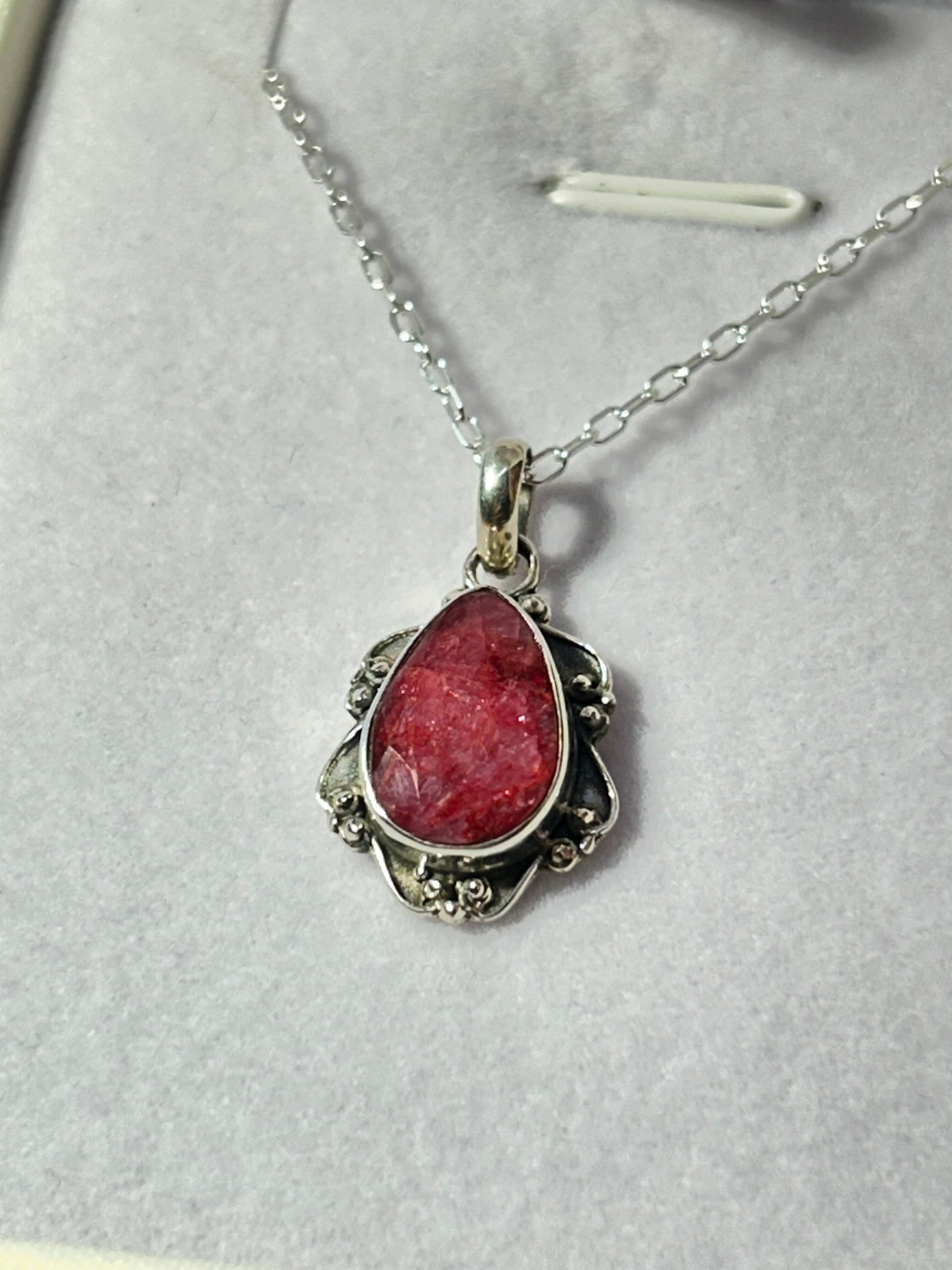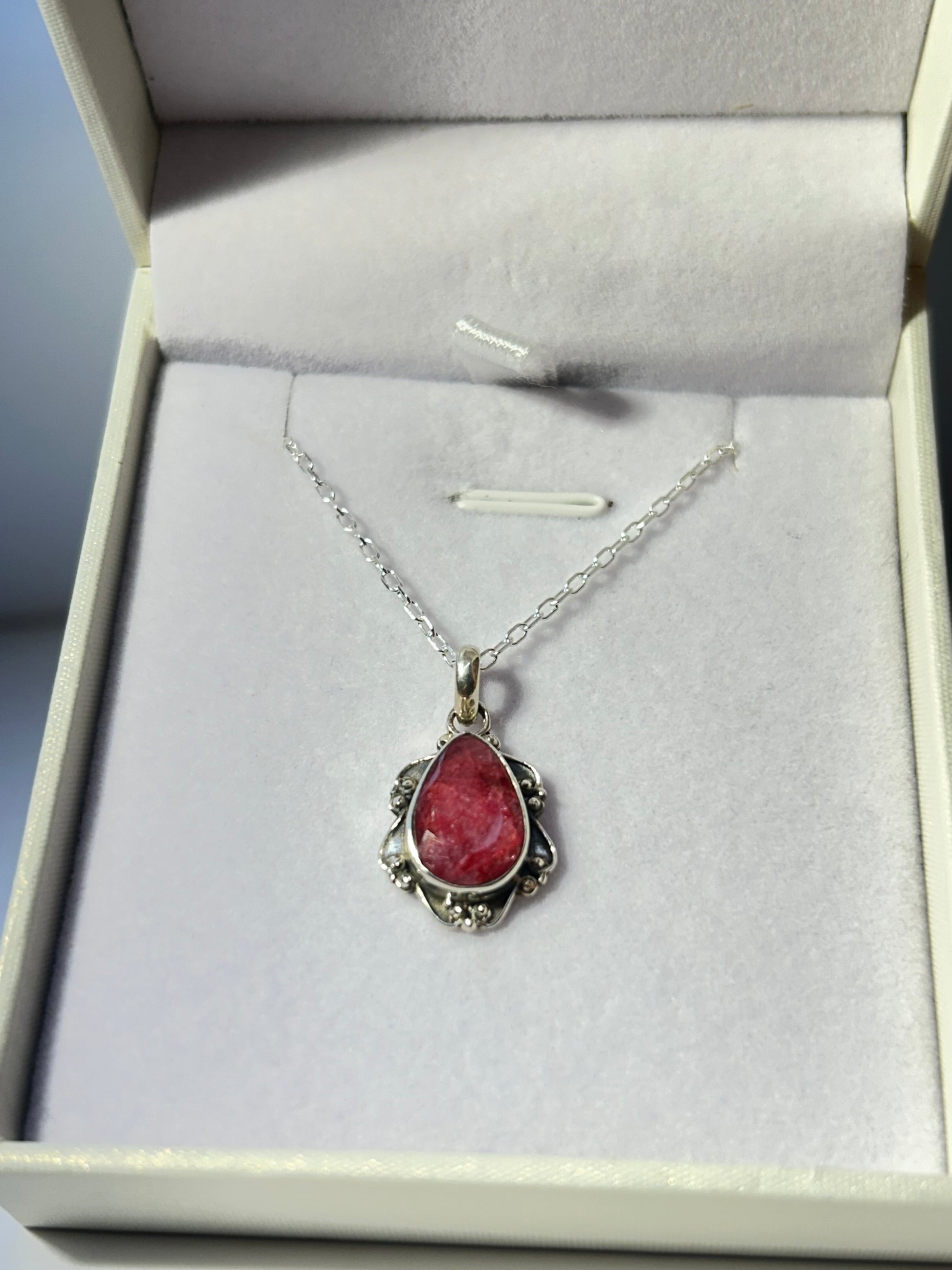 Conjunto con importante dije Bali con piedra raíz de rubí 17x14MM. Más cadena 45cm en plata 925