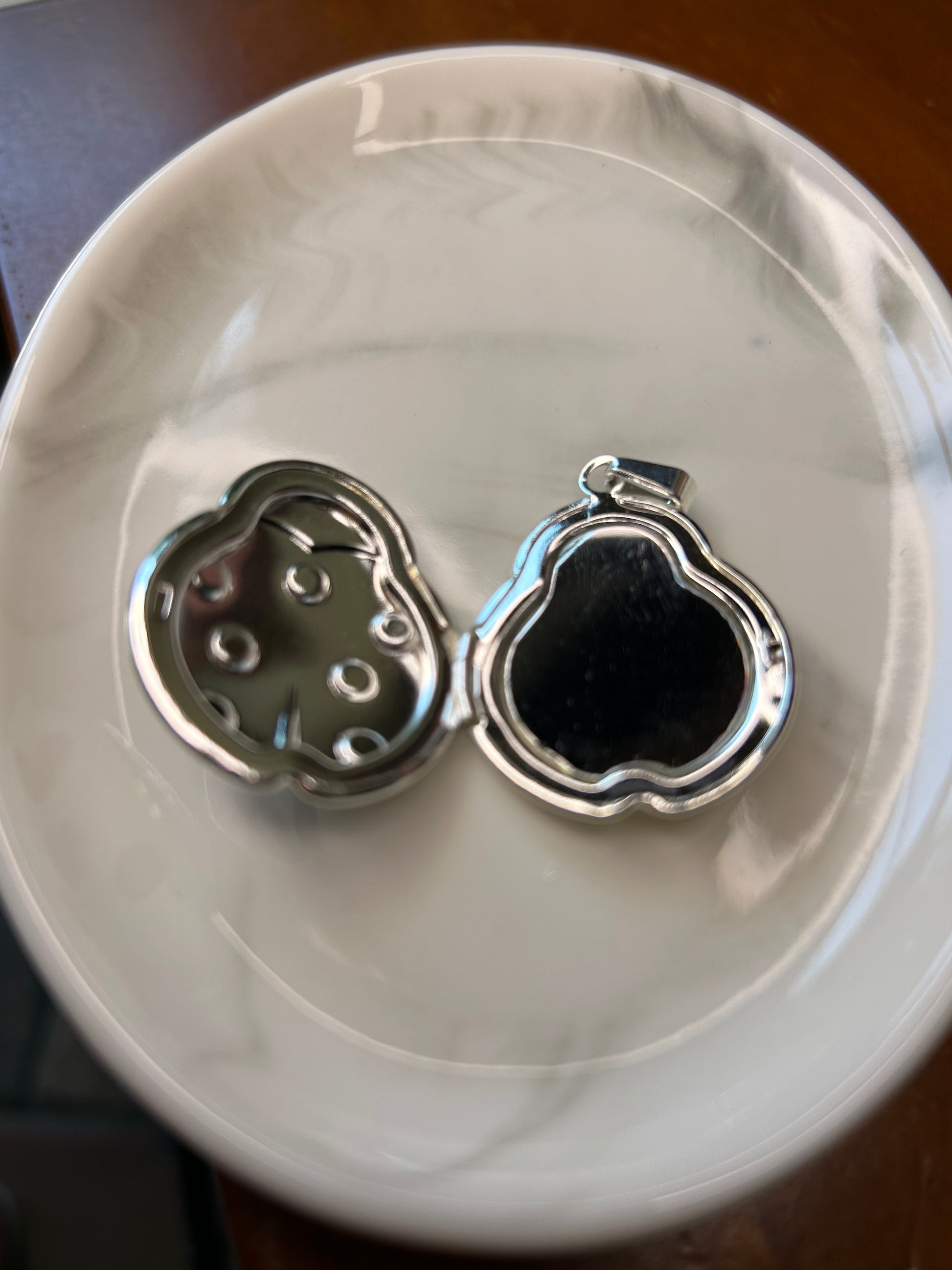 Dije relicario en acero blanco con detalles en resina