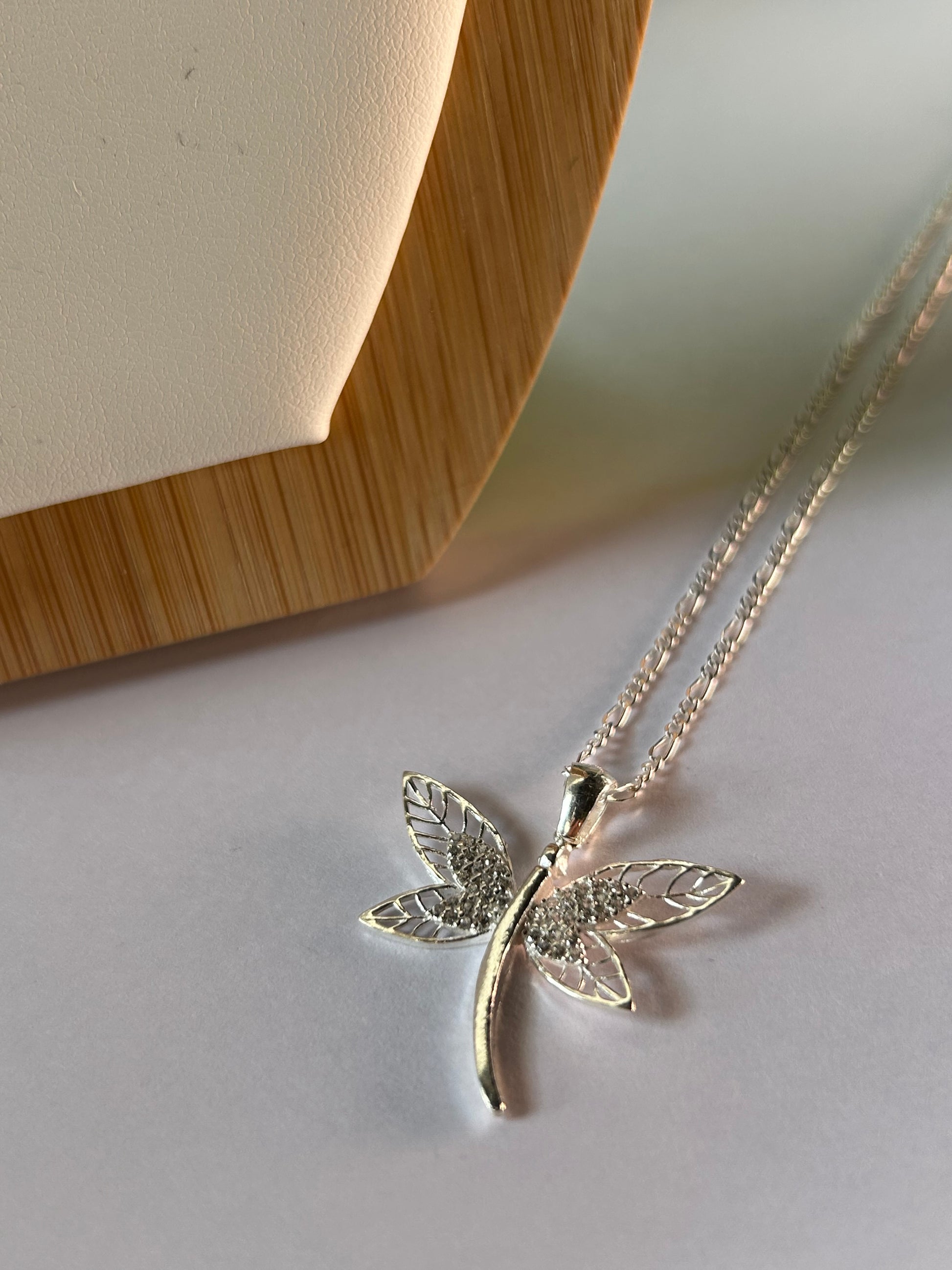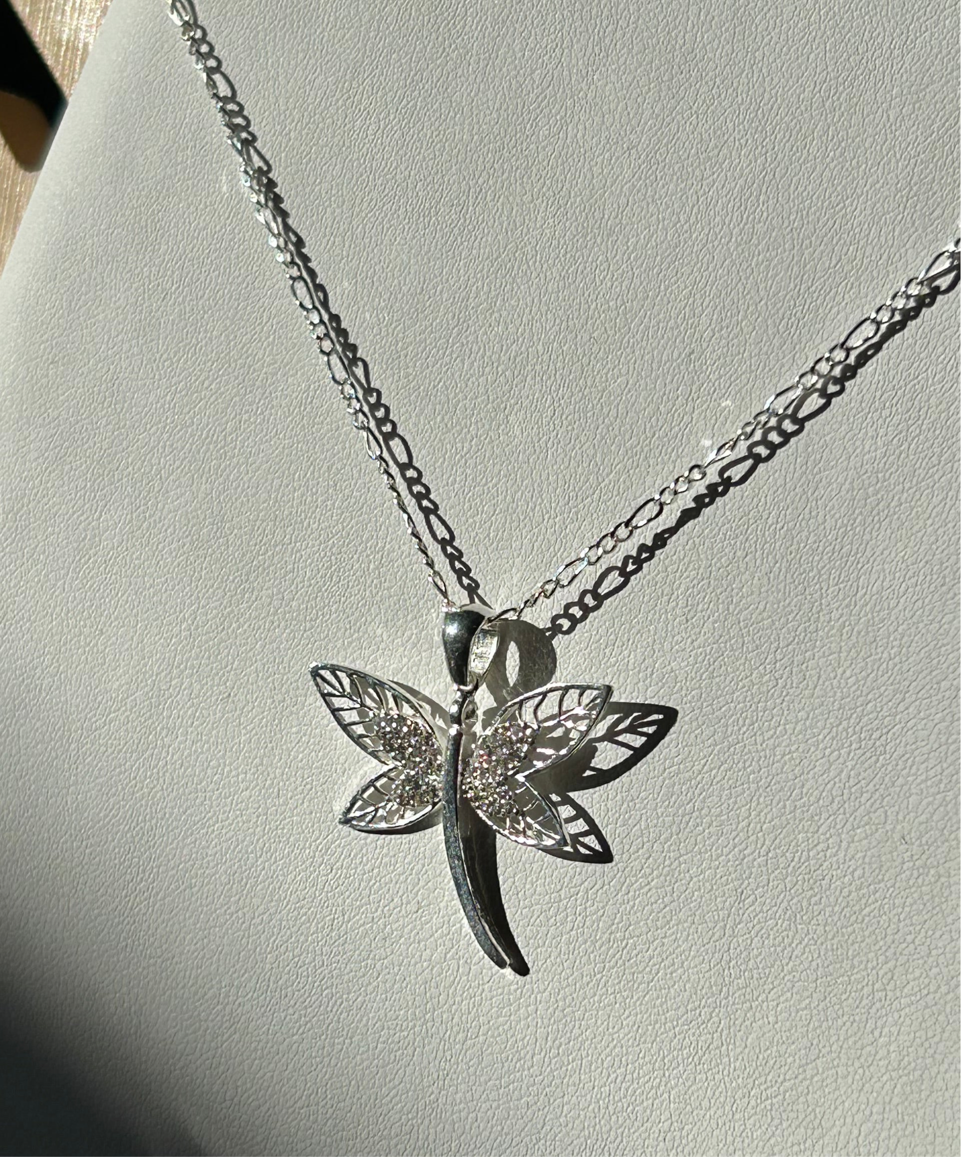 Dije libélula con detalles de circonias y calado en las alas. Medida del dije 24x27MM.