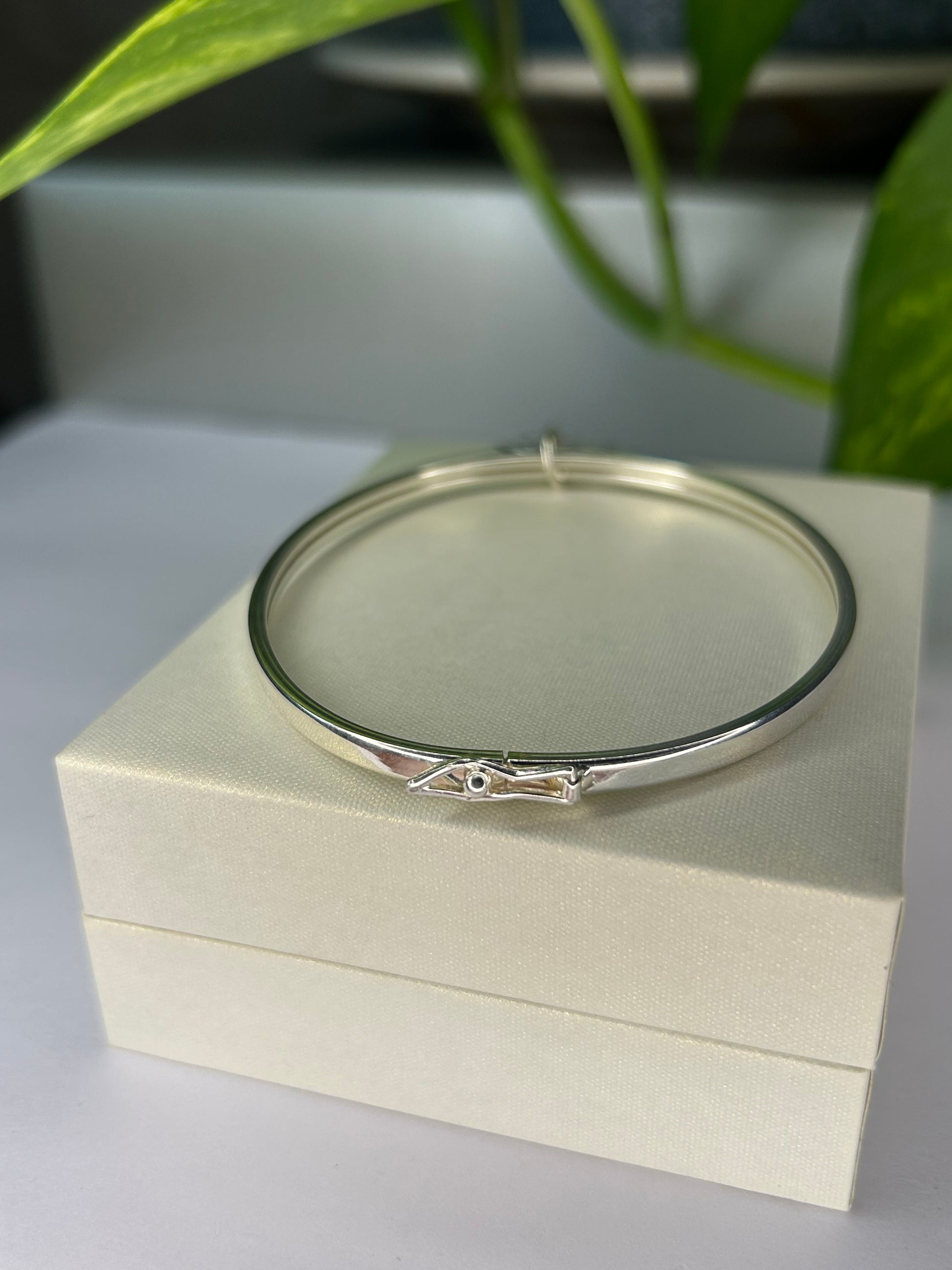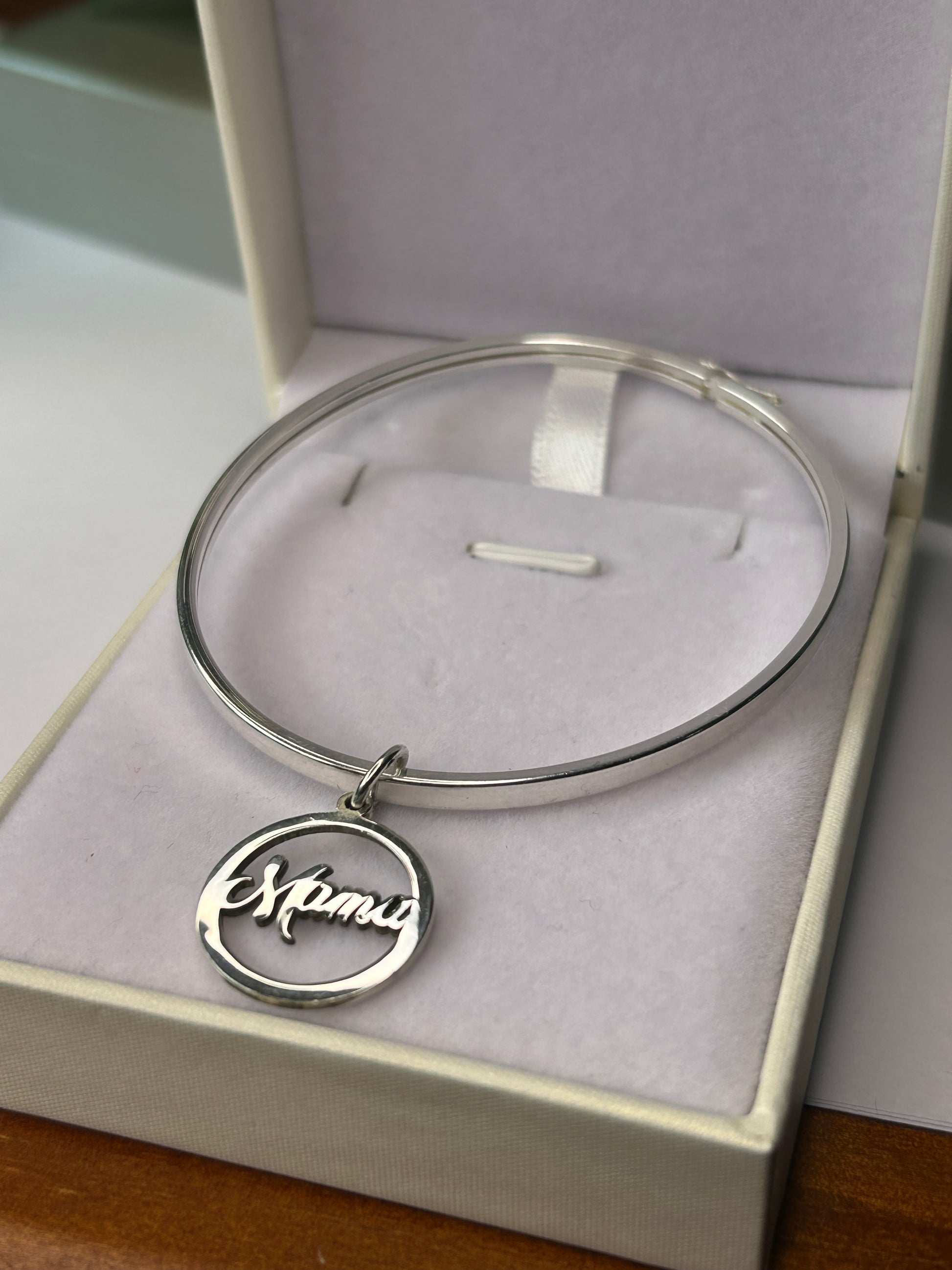 Esclava de plata 925 modelo oval plano, abierta con gancho, se adapta a la muñeca.
