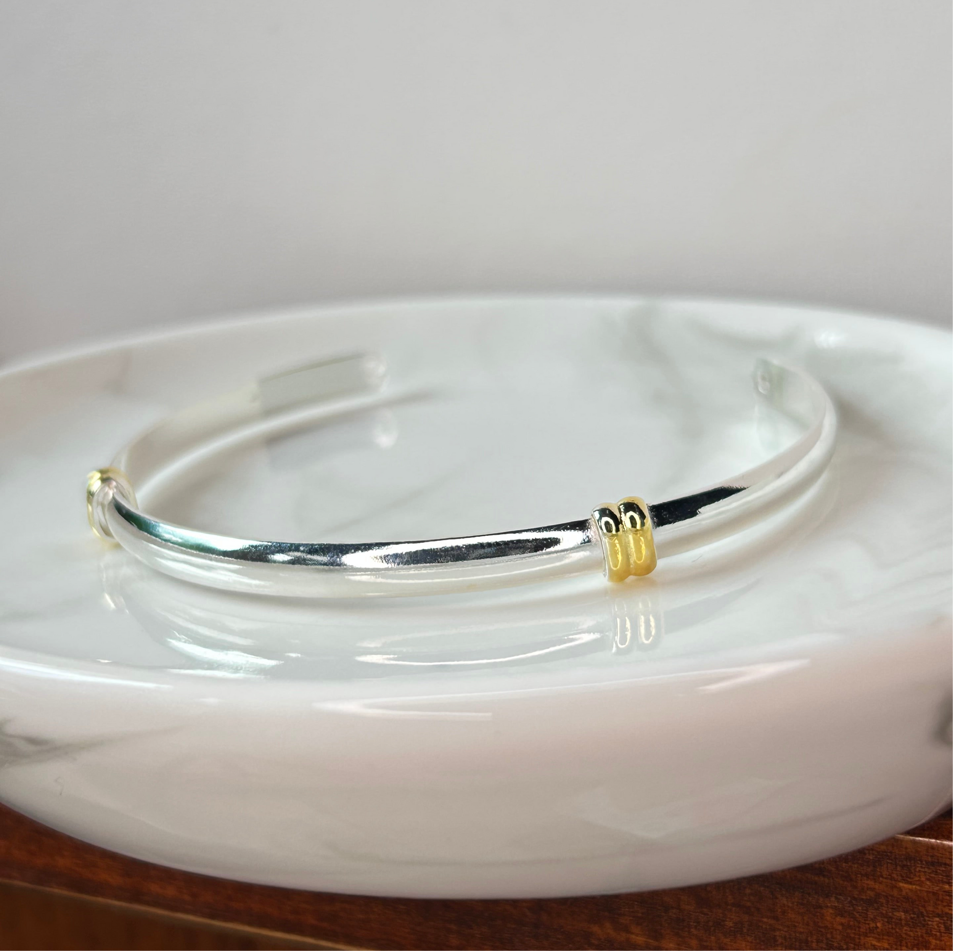 Esclava lisa con detalles dorados. Acero blanco y detalles en acero dorado.