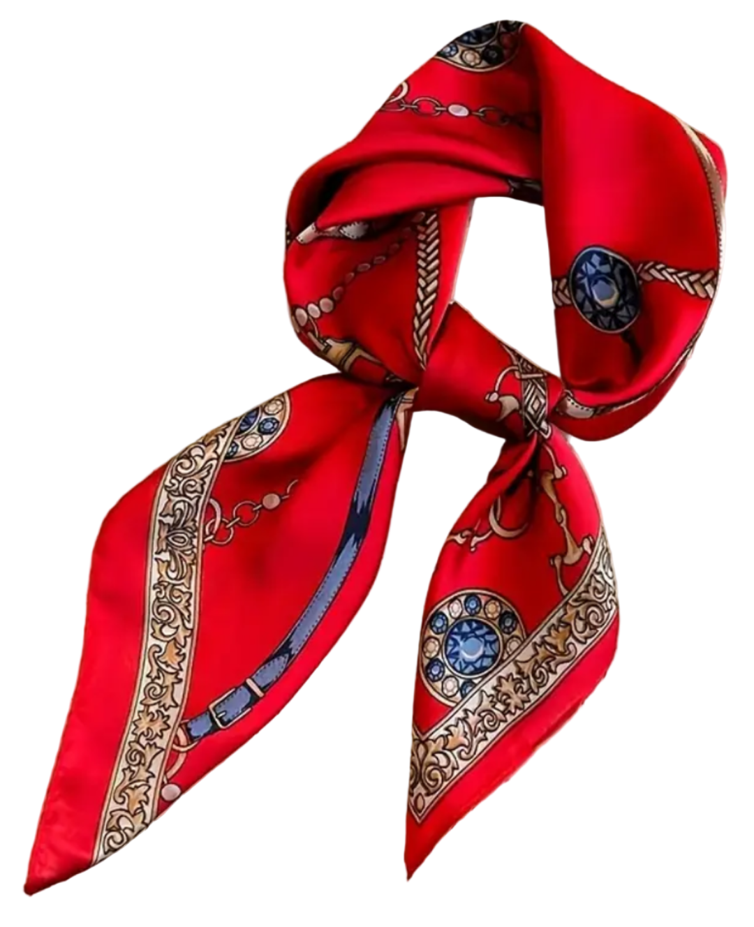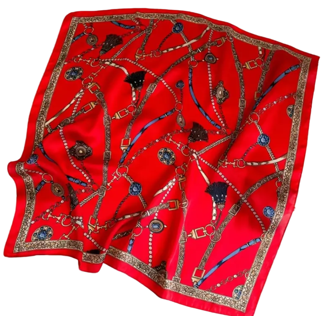 Hermoso pañuelo de tela satinada y estampado eslabones de cadenas. Cuadrado. Medida 70cm