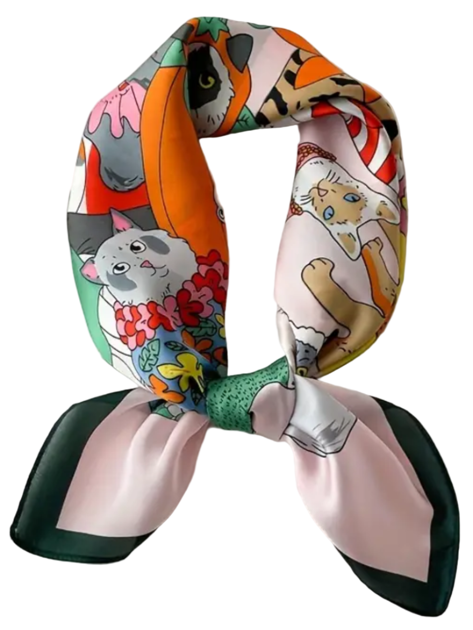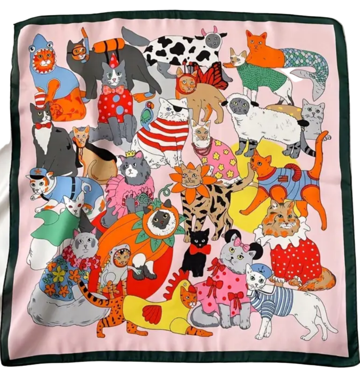Divertido pañuelo con estampado de gatos con disfraz. Cuadrado. Medidas aproximadas 70cm