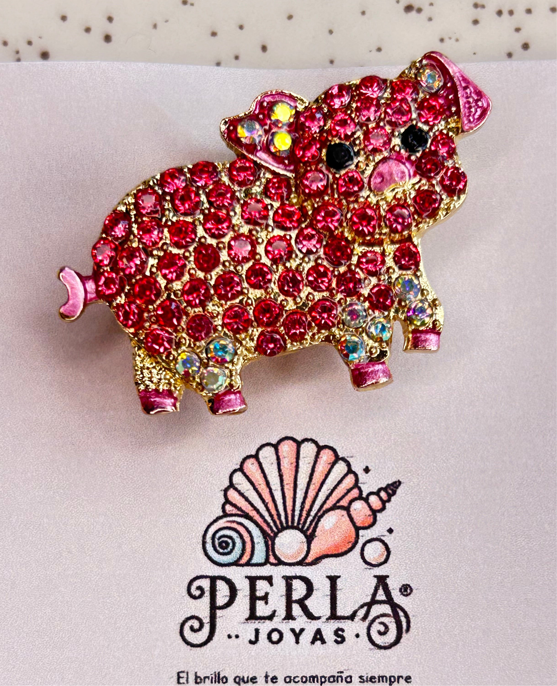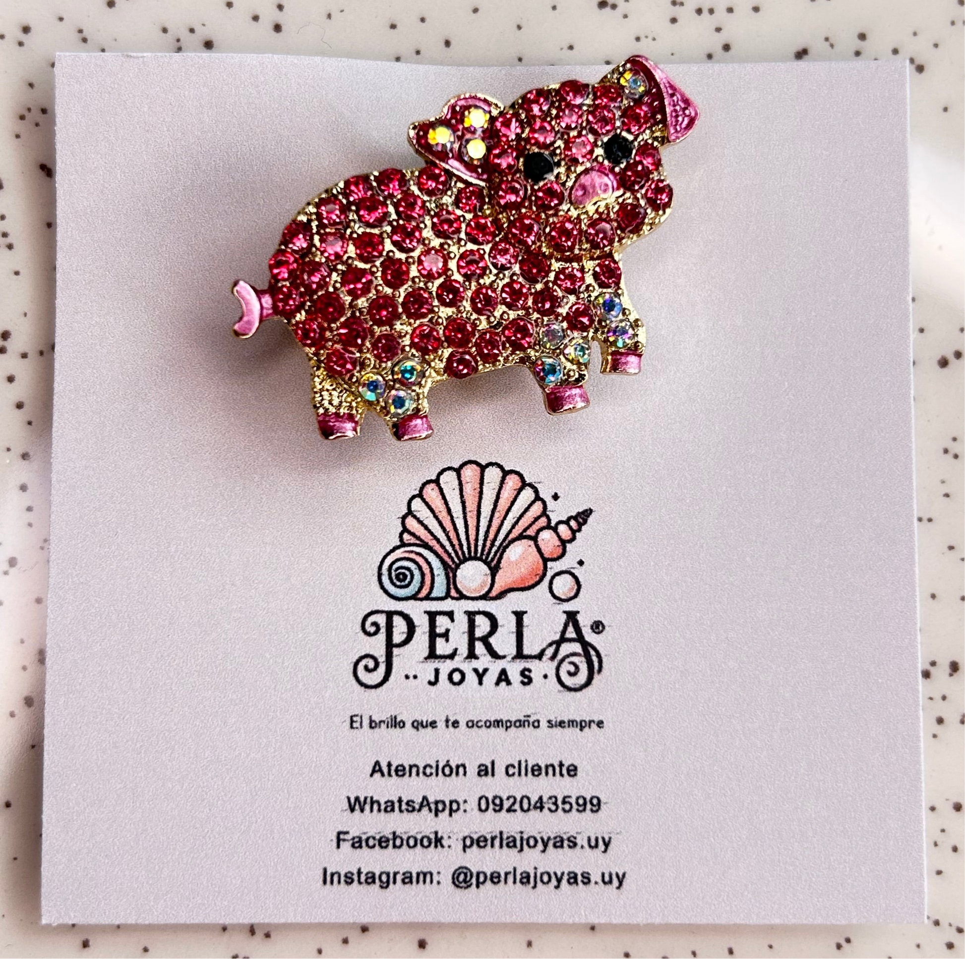 Prendedor diseño chanchito con strass rosas. Tamaño P. Medidas aproximadas 3x2cm.