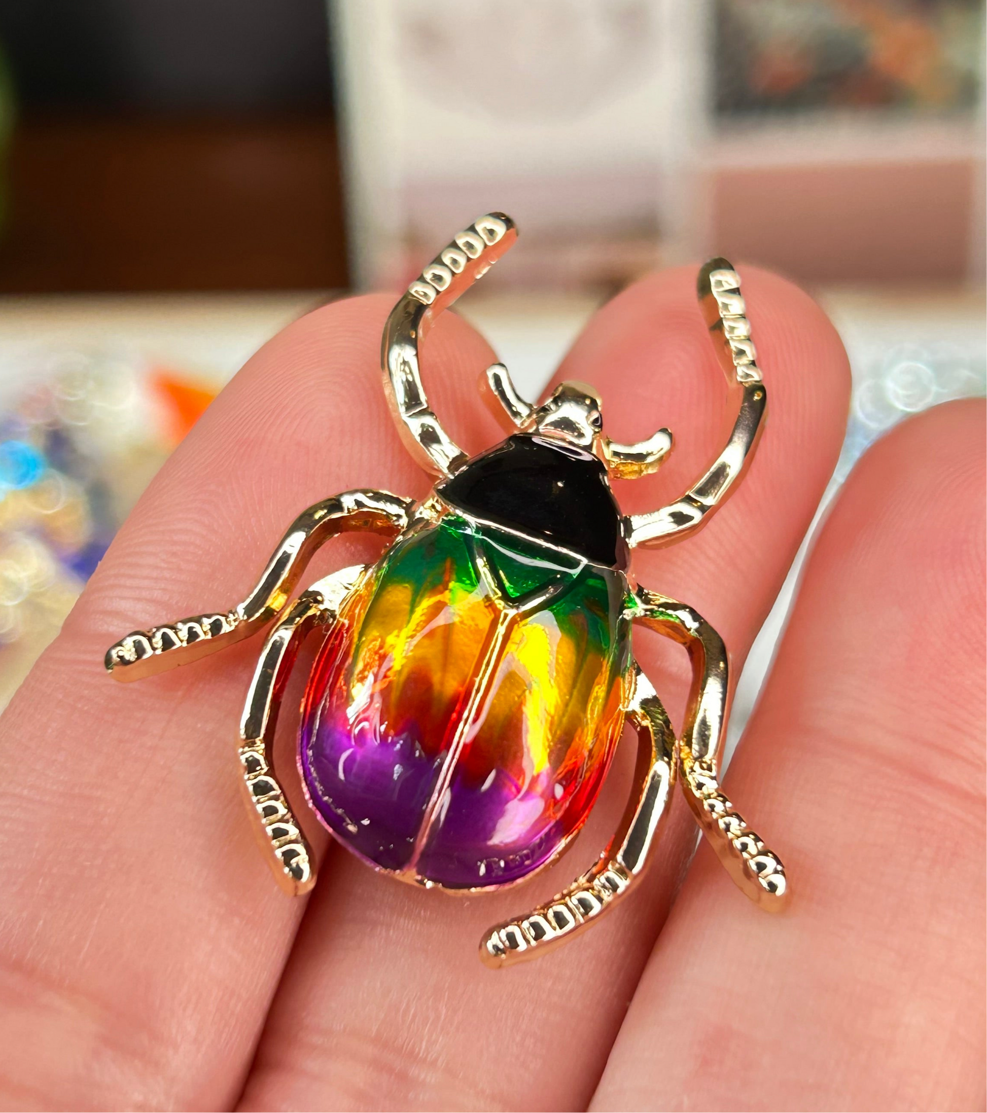 Prendedor con diseño de escarabajo brillante multicolor. Tamaño M. Medidas aproximadas 3,5x3,7cm.
