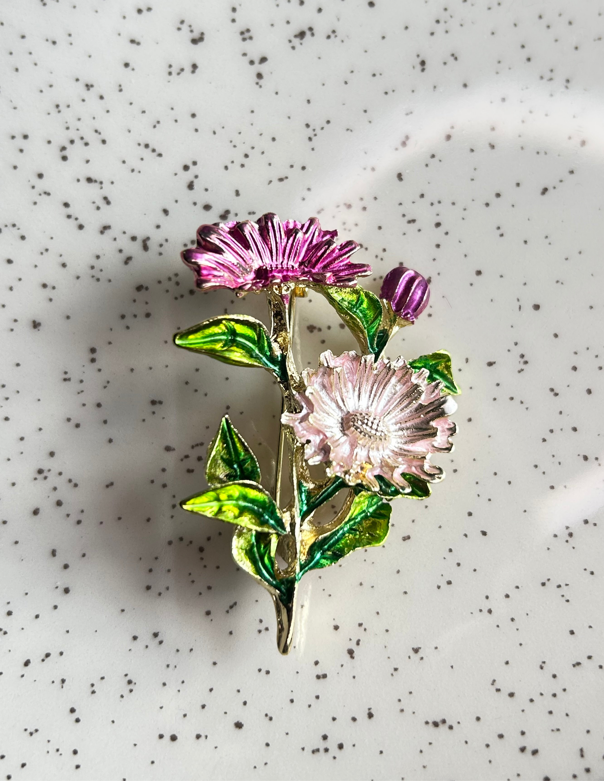 Prendedor con diseño de flores esmaltadas. Medidas aproximadas 5 x 3cm.