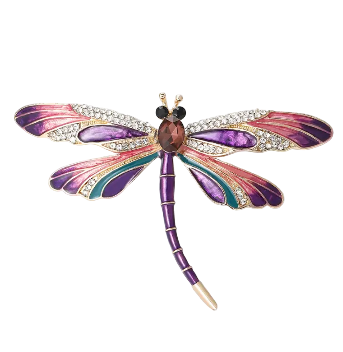 Hermoso prendedor con diseño de libélula en tonos lilas y violetas. Tamaño G. Tamaño aproximado 5x7,5cm.