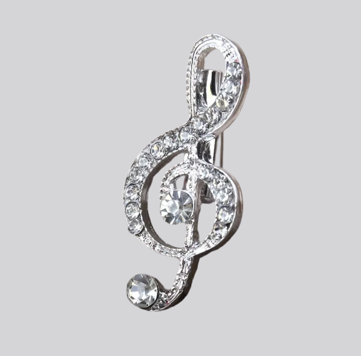 Hermoso y delicado broche con diseño clave de sol. Modelo unisex. Ideal para resaltar la pasión por la música. Medidas aproximadas 3,4x1,6cm.